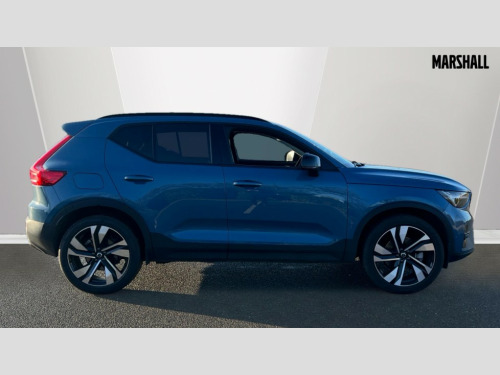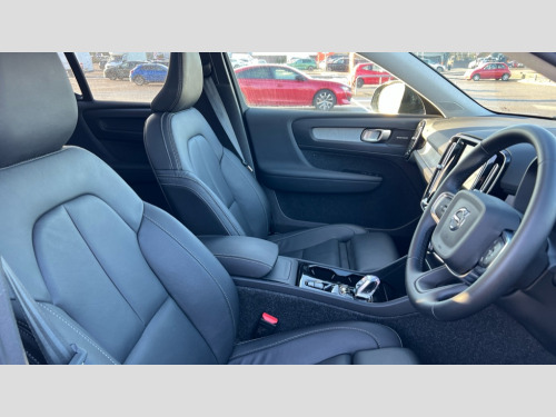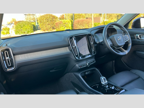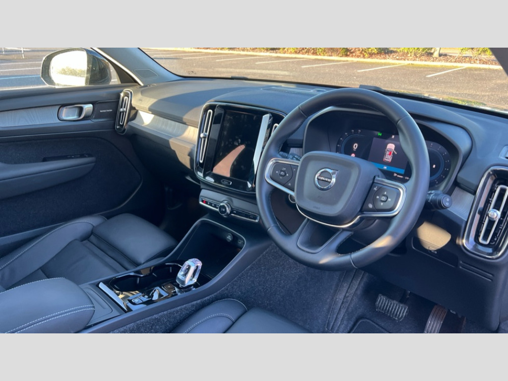 Volvo XC40 2.0 B3P Ultra Dark 5dr Auto 12.3" Progressive Driver Display, 360 degree surround view parking camera with side proximity sensors, 9" centre console portrait touch screen, Adjustable steering wheel force, Android auto (Wired), Apple carplay (wired), Bluetooth handsfree system, Driver alert control, Driver assistance (pilot assist and adaptive cruise control), Driver awareness - Blind spot information system with steer assist, cross traffic alert with autobrake and rear collision warning and mitigation, E-call, Front park assist, Google automotive services - Enabled entertainment apps, navigation with google maps, voice recognition with google assistant, Hands free power tailgate, Intelligent speed assistance, Lane keeping aid, Oncoming Lane Mitigation, Rear park assist, Speed sensitive steering, Volvo cars services with app - Driving journal, emergency and breakdown call, engine remote start, remote door locking/unlocking and vehicle dashboard, Wireless/Inductive Mobile Phone Charging, Automatic transmission with start/stop and manual change functions, Dynamic chassis, DAB Digital radio, Premium Sound by Harman Kardon, Dolby Pro Logic II Surround Sound, Dirac Unison,12 speakers/600W and subwoofer, Steering wheel mounted remote controls, Active bending pixel LED headlights with adaptive shadow technology, Active high beam incorporating daytime running lights, Adaptive brake lights with high level LED brake lights, Auto dimming feature for exterior door mirrors, Auto dimming interior mirror, Automatic headlamp levelling, Dark tinted windows - rear side windows and rear screen, Front aluminium tread plates, Front and rear electric windows, Headlight cleaning system, High gloss black front and rear skid plate, High gloss black front bumper deco, High gloss black mesh front grille with high gloss black surround, High gloss black window trim, Home safe and approach lighting, Integrated roof rails in high gloss black, LED front fog lights with cornering function, Power glass tilt and slide panoramic sunroof with sun curtain, Puddle lights, Rain sensor with automatic windscreen wiper activation, Rear side wing doors, Rear wiper, Roof antenna, Roof spoiler, Visible VIN plate, 12V socket in front tunnel console and luggage compartment, 2-Zone electronic climate control with CleanZone air quality system and pollen filter, 3 seat bench in 2nd row, 3 Spoke tailored steering wheel with chrome trim, 60/40 versatile split folding rear seat, Centre console cupholders and storage, Flexible load floor and grocery bag holder, Floor mats, Front cabin courtesy lights, Front door pocket, front cupholder, ambient front door, rear reading, rear courtesy, instrument panel and tailgate lighting, Front footwell illumination, Front headrests, Front reading lights, Front seat cushion extensions, Front side step illumination (under door), Glovebox bag hook, Heated front seats, Height/reach adjustable steering column, High gloss centre tunnel deco, Illuminated glovebox, Illuminated luggage compartment, Illuminated vanity mirrors + ticket holder, Integrated waste bin, Isofix attachments on outer rear seats, Load cover, Load protection net, Multi directional lumbar support for driver and passenger seat, Power driver seat with memory + exterior mirrors memory, Power folding rear headrests, Power passenger seat, Rear armrest with cupholders, Single front passenger seat, Underfloor cargo storage, Climate pack without heated front seats - XC40, 3x3 point rear seatbelts, City safety with steering support with Pedestrian + cyclist + front collision warning with full auto brake and rear auto brake, Driver and passenger airbags, Drivers knee airbag, Electronic parking brake with auto hold, First aid kit, Front and outer rear seatbelt reminder and pretensioners, Front seats SIPS airbags, Hill descent control, Hill start assist, Inflatable curtain, Passenger airbag cut-off device, Power child locks on rear doors, Road sign information display, Run off Road Protection, SIPS (Side Impact Protection System), Slippery road and hazard light alert, Stability and Traction Control with Spin control, Engine Drag Control and Corner Traction Control, Tyre pressure monitoring system, Vehicle deceleration control with Anti-lock Brake System, Electronic Brake Distribution and Emergency Brake Assist, Warning triangle, WHIPS whiplash protection system - front, 2 x Key integrated remote control central locking including with deadlocking system and auto open/close windows and sunroof, Anti-theft alarm including immobiliser/volume sensor + level sensor, Keyless drive includes keyless entry and keyless start, Locking wheel nuts