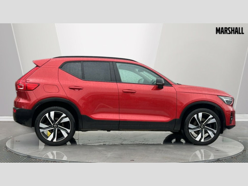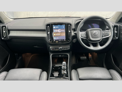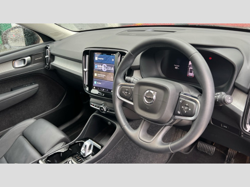 Volvo XC40 2.0 B3P Ultra Dark 5dr Auto 12.3" Progressive Driver Display, 360 degree surround view parking camera with side proximity sensors, 9" centre console portrait touch screen, Adjustable steering wheel force, Apple carplay (wired), Bluetooth handsfree system, Driver alert control, Driver assistance (pilot assist and adaptive cruise control), Driver awareness - Blind spot information system with steer assist, cross traffic alert with autobrake and rear collision warning and mitigation, E-call, Google automotive services - Enabled entertainment apps, navigation with google maps, voice recognition with google assistant, Hands free power tailgate, Intelligent speed assistance, Lane keeping aid, Oncoming Lane Mitigation, Speed sensitive steering, Volvo cars services with app - Driving journal, emergency and breakdown call, engine remote start, remote door locking/unlocking and vehicle dashboard, Wireless/Inductive Mobile Phone Charging, Automatic transmission with start/stop and manual change functions, Dynamic chassis, DAB Digital radio, Premium Sound by Harman Kardon, Dolby Pro Logic II Surround Sound, Dirac Unison,12 speakers/600W and subwoofer, Steering wheel mounted remote controls, Active bending pixel LED headlights with adaptive shadow technology, Active high beam incorporating daytime running lights, Adaptive brake lights with high level LED brake lights, Auto dimming feature for exterior door mirrors, Auto dimming interior mirror, Automatic headlamp levelling, Dark tinted windows - rear side windows and rear screen, Front aluminium tread plates, Front and rear electric windows, Headlight cleaning system, High gloss black front and rear skid plate, High gloss black front bumper deco, High gloss black mesh front grille with high gloss black surround, High gloss black window trim, Home safe and approach lighting, Integrated roof rails in high gloss black, LED front fog lights with cornering function, Power glass tilt and slide panoramic sunroof with sun curtain, Puddle lights, Rain sensor with automatic windscreen wiper activation, Rear side wing doors, Rear wiper, Roof antenna, Roof spoiler, Visible VIN plate, 12V socket in front tunnel console and luggage compartment, 2-Zone electronic climate control with CleanZone air quality system and pollen filter, 3 seat bench in 2nd row, 3 Spoke tailored steering wheel with chrome trim, 60/40 versatile split folding rear seat, A-pillar parking ticket holder, Centre console cupholders and storage, Flexible load floor and grocery bag holder, Floor mats, Front cabin courtesy lights, Front door pocket, front cupholder, ambient front door, rear reading, rear courtesy, instrument panel and tailgate lighting, Front footwell illumination, Front headrests, Front reading lights, Front seat cushion extensions, Front side step illumination (under door), Glovebox bag hook, Heated front seats, Height/reach adjustable steering column, High gloss centre tunnel deco, Illuminated glovebox, Illuminated luggage compartment, Illuminated vanity mirrors + ticket holder, Integrated waste bin, Isofix attachments on outer rear seats, Load cover, Load protection net, Multi directional lumbar support for driver and passenger seat, Power driver seat with memory + exterior mirrors memory, Power folding rear headrests, Power passenger seat, Rear armrest with cupholders, Single front passenger seat, Underfloor cargo storage, Climate pack without heated front seats - XC40, 3x3 point rear seatbelts, City safety with steering support with Pedestrian + cyclist + front collision warning with full auto brake and rear auto brake, Driver and passenger airbags, Drivers knee airbag, Electronic parking brake with auto hold, First aid kit, Front and outer rear seatbelt reminder and pretensioners, Front seats SIPS airbags, Hill descent control, Hill start assist, Inflatable curtain, Passenger airbag cut-off device, Power child locks on rear doors, Road sign information display, Run off Road Protection, SIPS (Side Impact Protection System), Slippery road and hazard light alert, Stability and Traction Control with Spin control, Engine Drag Control and Corner Traction Control, Tyre pressure monitoring system, Vehicle deceleration control with Anti-lock Brake System, Electronic Brake Distribution and Emergency Brake Assist, Warning triangle, WHIPS whiplash protection system - front, 2 x Key integrated remote control central locking including with deadlocking system and auto open/close windows and sunroof, Anti-theft alarm including immobiliser/volume sensor + level sensor, Keyless drive includes keyless entry and keyless start, Locking wheel nuts