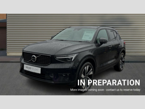 Volvo XC40 2.0 B3P Ultra Dark 5dr Auto 12.3" Progressive Driver Display, 360 degree surround view parking camera with side proximity sensors, 9" centre console portrait touch screen, Adjustable steering wheel force, Android auto (Wired), Apple carplay (wired), Bluetooth handsfree system, Driver alert control, Driver assistance (pilot assist and adaptive cruise control), Driver awareness - Blind spot information system with steer assist, cross traffic alert with autobrake and rear collision warning and mitigation, E-call, Front park assist, Google automotive services - Enabled entertainment apps, navigation with google maps, voice recognition with google assistant, Hands free power tailgate, Intelligent speed assistance, Lane keeping aid, Oncoming Lane Mitigation, Rear park assist, Speed sensitive steering, Volvo cars services with app - Driving journal, emergency and breakdown call, engine remote start, remote door locking/unlocking and vehicle dashboard, Wireless/Inductive Mobile Phone Charging, Automatic transmission with start/stop and manual change functions, Dynamic chassis, DAB Digital radio, Premium Sound by Harman Kardon, Dolby Pro Logic II Surround Sound, Dirac Unison,12 speakers/600W and subwoofer, Steering wheel mounted remote controls, Active bending pixel LED headlights with adaptive shadow technology, Active high beam incorporating daytime running lights, Adaptive brake lights with high level LED brake lights, Auto dimming feature for exterior door mirrors, Auto dimming interior mirror, Automatic headlamp levelling, Dark tinted windows - rear side windows and rear screen, Front aluminium tread plates, Front and rear electric windows, Headlight cleaning system, High gloss black front and rear skid plate, High gloss black front bumper deco, High gloss black mesh front grille with high gloss black surround, High gloss black window trim, Home safe and approach lighting, Integrated roof rails in high gloss black, LED front fog lights with cornering function, Power glass tilt and slide panoramic sunroof with sun curtain, Puddle lights, Rain sensor with automatic windscreen wiper activation, Rear side wing doors, Rear wiper, Roof antenna, Roof spoiler, Visible VIN plate, 12V socket in front tunnel console and luggage compartment, 2-Zone electronic climate control with CleanZone air quality system and pollen filter, 3 seat bench in 2nd row, 3 Spoke tailored steering wheel with chrome trim, 60/40 versatile split folding rear seat, Centre console cupholders and storage, Flexible load floor and grocery bag holder, Floor mats, Front cabin courtesy lights, Front door pocket, front cupholder, ambient front door, rear reading, rear courtesy, instrument panel and tailgate lighting, Front footwell illumination, Front headrests, Front reading lights, Front seat cushion extensions, Front side step illumination (under door), Glovebox bag hook, Heated front seats, Height/reach adjustable steering column, High gloss centre tunnel deco, Illuminated glovebox, Illuminated luggage compartment, Illuminated vanity mirrors + ticket holder, Integrated waste bin, Isofix attachments on outer rear seats, Load cover, Load protection net, Multi directional lumbar support for driver and passenger seat, Power driver seat with memory + exterior mirrors memory, Power folding rear headrests, Power passenger seat, Rear armrest with cupholders, Single front passenger seat, Underfloor cargo storage, Climate pack without heated front seats - XC40, 3x3 point rear seatbelts, City safety with steering support with Pedestrian + cyclist + front collision warning with full auto brake and rear auto brake, Driver and passenger airbags, Drivers knee airbag, Electronic parking brake with auto hold, First aid kit, Front and outer rear seatbelt reminder and pretensioners, Front seats SIPS airbags, Hill descent control, Hill start assist, Inflatable curtain, Passenger airbag cut-off device, Power child locks on rear doors, Road sign information display, Run off Road Protection, SIPS (Side Impact Protection System), Slippery road and hazard light alert, Stability and Traction Control with Spin control, Engine Drag Control and Corner Traction Control, Tyre pressure monitoring system, Vehicle deceleration control with Anti-lock Brake System, Electronic Brake Distribution and Emergency Brake Assist, Warning triangle, WHIPS whiplash protection system - front, 2 x Key integrated remote control central locking including with deadlocking system and auto open/close windows and sunroof, Anti-theft alarm including immobiliser/volume sensor + level sensor, Keyless drive includes keyless entry and keyless start, Locking wheel nuts