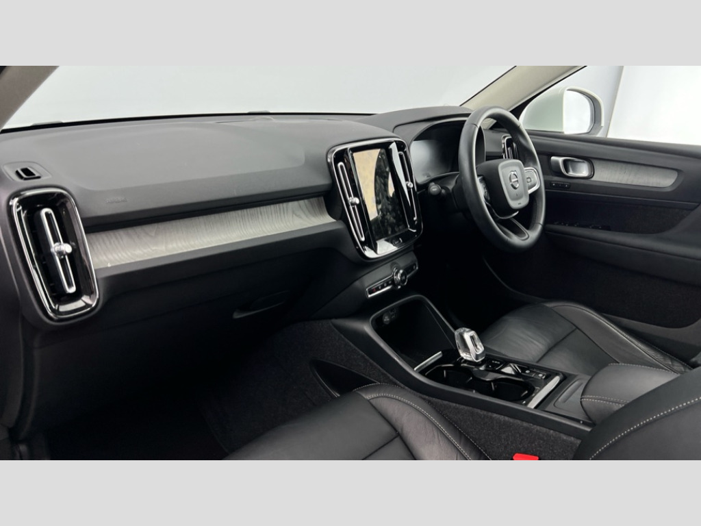 Volvo XC40 2.0 B4P Inscription 5dr Auto 12.3" Active TFT crystal driver's instrument display, 9" centre console portrait touch screen, Adjustable steering wheel force, Bluetooth hands free telephone kit, Drive mode selector, E-call, Lane keep assist with driver alert control, Oncoming Lane Mitigation, Power operated tailgate, Sensus navigation with European mapping and traffic information, Speed limiter, Speed sensitive steering, Voice activated control for key functions, Volvo on call, Dynamic chassis, DAB Digital radio, Steering wheel mounted remote controls, Adaptive brake lights with high level LED brake lights, Auto dimming interior mirror, Automatic headlamp levelling, Chrome window surround, Colour coordinated auto folding and heated power door mirrors, Front aluminium tread plates, Front and rear electric windows, High gloss black front grille with chrome inserts, High gloss black sensus surround deco, High Gloss silver front and rear skid plate, Home safe and approach lighting, Integrated roof rails in silver, LED Headlights + Active high beam incorporating daytime running lights, Rain sensor with automatic windscreen wiper activation, Rear side wing doors, Rear wiper, Roof antenna, Roof spoiler, Visible VIN plate, 12V socket in front tunnel console and luggage compartment, 2 zone electronic climate control and rear air vent, 3 seat bench in 2nd row, 3 Spoke tailored steering wheel with chrome trim, 60/40 versatile split folding rear seat, A-pillar parking ticket holder, Bright metal luggage threshold, Centre console cupholders and storage, Floor mats, Front footwell illumination, Front headrests, Front reading light and theatre lighting, Front tunnel net pocket and integrated waste bin, Glovebox bag hook, Height/reach adjustable steering column, Height/tilt adjustable driver's seat, High gloss centre tunnel deco, Illuminated glovebox, Illuminated luggage compartment, Illuminated vanity mirrors, Isofix attachments on outer rear seats, Leather faced upholstery, Load protection net, Multi directional lumbar support, Orrefors Crystal gear lever knob, Power driver seat with memory + exterior mirrors memory, Rear armrest / integral cup holders / storage tray, Rear coat hook, Single front passenger seat, Underfloor cargo storage, Vanity mirror with ticket holder, Park assist pack - XC40, 3x3 point rear seatbelts, City safety includes pedestrian, cyclist and large animal detection and front collision warning with full auto brake, Drivers knee airbag, Dual stage driver/passenger airbags, Electronic parking brake with auto hold, First aid kit, Front and outer rear seatbelt reminder and pretensioners, Front seats SIPS airbags, Hill descent control, Hill start assist, Inflatable curtain, Passenger airbag cut-off device, Road sign information display, Run off Road Mitigation, Run off Road Protection, SIPS (Side Impact Protection System), Slippery road and hazard light alert, Stability and Traction Control with Spin control, Engine Drag Control and Corner Traction Control, Tyre pressure monitoring system, Vehicle deceleration control with Anti-lock Brake System, Electronic Brake Distribution and Emergency Brake Assist, Warning triangle, WHIPS whiplash protection system - front, Anti-theft alarm including immobiliser/volume sensor + level sensor, Care key with user defined top speed, Key integrated remote control central locking + fuel flap with deadlocking system and auto open/close power windows, Locking wheel nuts, Private locking for tailgate, Driftwood inlays