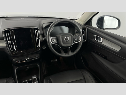 Volvo XC40 2.0 B4P Inscription 5dr Auto 12.3" Active TFT crystal driver's instrument display, 9" centre console portrait touch screen, Adjustable steering wheel force, Bluetooth hands free telephone kit, Drive mode selector, E-call, Lane keep assist with driver alert control, Oncoming Lane Mitigation, Power operated tailgate, Sensus navigation with European mapping and traffic information, Speed limiter, Speed sensitive steering, Voice activated control for key functions, Volvo on call, Dynamic chassis, DAB Digital radio, Steering wheel mounted remote controls, Adaptive brake lights with high level LED brake lights, Auto dimming interior mirror, Automatic headlamp levelling, Chrome window surround, Colour coordinated auto folding and heated power door mirrors, Front aluminium tread plates, Front and rear electric windows, High gloss black front grille with chrome inserts, High gloss black sensus surround deco, High Gloss silver front and rear skid plate, Home safe and approach lighting, Integrated roof rails in silver, LED Headlights + Active high beam incorporating daytime running lights, Rain sensor with automatic windscreen wiper activation, Rear side wing doors, Rear wiper, Roof antenna, Roof spoiler, Visible VIN plate, 12V socket in front tunnel console and luggage compartment, 2 zone electronic climate control and rear air vent, 3 seat bench in 2nd row, 3 Spoke tailored steering wheel with chrome trim, 60/40 versatile split folding rear seat, A-pillar parking ticket holder, Bright metal luggage threshold, Centre console cupholders and storage, Floor mats, Front footwell illumination, Front headrests, Front reading light and theatre lighting, Front tunnel net pocket and integrated waste bin, Glovebox bag hook, Height/reach adjustable steering column, Height/tilt adjustable driver's seat, High gloss centre tunnel deco, Illuminated glovebox, Illuminated luggage compartment, Illuminated vanity mirrors, Isofix attachments on outer rear seats, Leather faced upholstery, Load protection net, Multi directional lumbar support, Orrefors Crystal gear lever knob, Power driver seat with memory + exterior mirrors memory, Rear armrest / integral cup holders / storage tray, Rear coat hook, Single front passenger seat, Underfloor cargo storage, Vanity mirror with ticket holder, Park assist pack - XC40, 3x3 point rear seatbelts, City safety includes pedestrian, cyclist and large animal detection and front collision warning with full auto brake, Drivers knee airbag, Dual stage driver/passenger airbags, Electronic parking brake with auto hold, First aid kit, Front and outer rear seatbelt reminder and pretensioners, Front seats SIPS airbags, Hill descent control, Hill start assist, Inflatable curtain, Passenger airbag cut-off device, Road sign information display, Run off Road Mitigation, Run off Road Protection, SIPS (Side Impact Protection System), Slippery road and hazard light alert, Stability and Traction Control with Spin control, Engine Drag Control and Corner Traction Control, Tyre pressure monitoring system, Vehicle deceleration control with Anti-lock Brake System, Electronic Brake Distribution and Emergency Brake Assist, Warning triangle, WHIPS whiplash protection system - front, Anti-theft alarm including immobiliser/volume sensor + level sensor, Care key with user defined top speed, Key integrated remote control central locking + fuel flap with deadlocking system and auto open/close power windows, Locking wheel nuts, Private locking for tailgate, Driftwood inlays