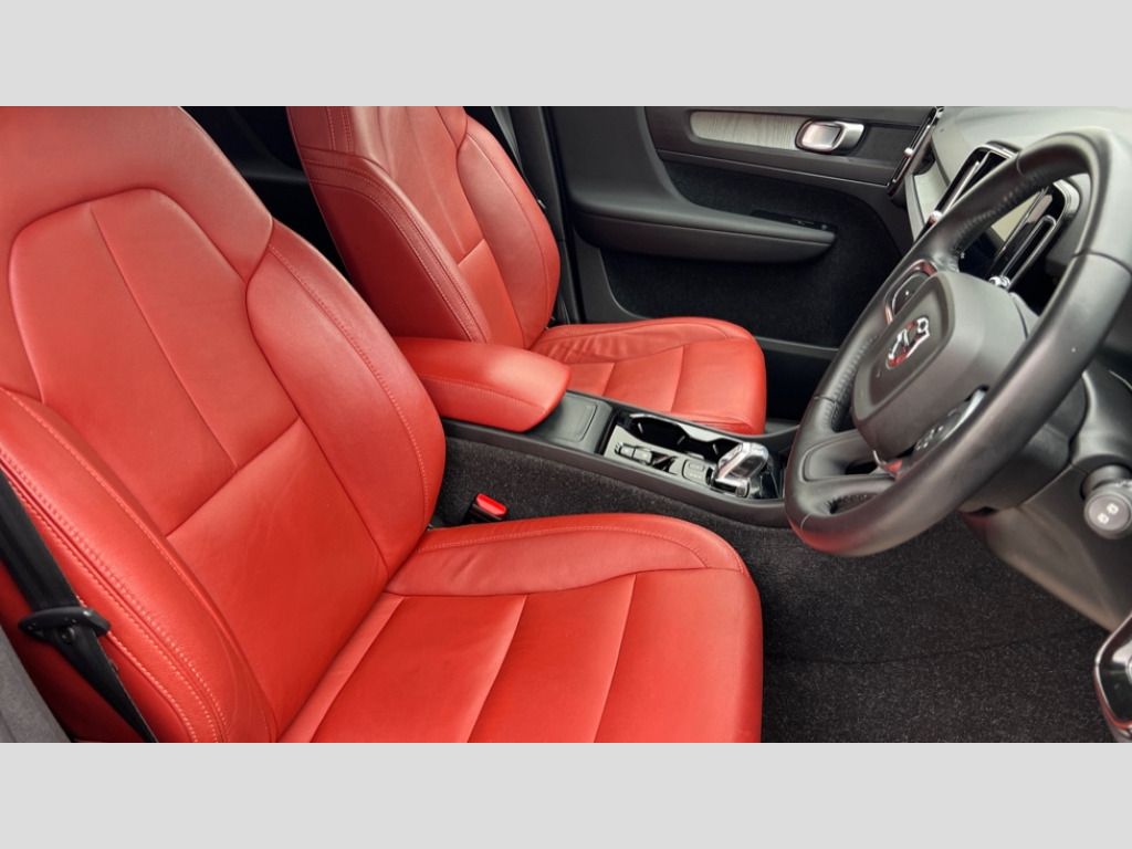 Volvo XC40 2.0 B4P Inscription 5dr AWD Auto 12.3" Active TFT crystal driver's instrument display, 9" centre console portrait touch screen, Adjustable steering wheel force, Bluetooth hands free telephone kit, Drive mode selector, Lane keep assist with driver alert control, Oncoming Lane Mitigation, Sensus navigation with European mapping and traffic information, Speed limiter, Speed sensitive steering, Voice activated control for key functions, Volvo on call, Dynamic chassis, DAB Digital radio, Steering wheel mounted remote controls, Adaptive brake lights with high level LED brake lights, Auto dimming interior mirror, Automatic headlamp levelling, Chrome window surround, Colour coordinated auto folding and heated power door mirrors, Dual exhaust pipes, Front aluminium tread plates, Front and rear electric windows, High gloss black front grille with chrome inserts, High gloss black sensus surround deco, High Gloss silver front and rear skid plate, Home safe and approach lighting, LED front fog lights, LED Headlights + Active high beam incorporating daytime running lights, Rain sensor with automatic windscreen wiper activation, Rear side wing doors, Rear wiper, Roof antenna, Roof spoiler, Silver roof rails, Visible VIN plate, 12V socket in front tunnel console and luggage compartment, 2 zone electronic climate control and rear air vent, 3 seat bench in 2nd row, 3 spoke leather steering wheel with chrome trim, 60/40 split folding rear seat, Ambient front door and instrumental panel lighting, Bright metal luggage threshold, Centre console cupholders and storage, Driver's side lower dashboard credit card storage compartment, Front door pocket and front cupholder illumination, Front footwell illumination, Front headrests, Front reading light and theatre lighting, Front tunnel net pocket and integrated waste bin, Glovebox bag hook, Height/reach adjustable steering column, High gloss centre tunnel deco, Illuminated glovebox, Illuminated luggage compartment, Illuminated tailgate, Illuminated vanity mirrors, Isofix attachments on outer rear seats, Key integrated remote, Leather faced upholstery, Load protection net, Luxury floor mats, Multi directional lumbar support, Multicolour theatre lights, Orrefors Crystal gear lever knob, Rear armrest / integral cup holders / storage tray, Rear coat hook, Rear reading and courtesy lights, Single front passenger seat, Underfloor cargo storage, 3x3 point rear seatbelts, City safety includes pedestrian, cyclist and large animal detection and front collision warning with full auto brake, Drivers knee airbag, Dual stage driver/passenger airbags, Electronic parking brake with auto hold, First aid kit, Front and outer rear seatbelt reminder and pretensioners, Front seats SIPS airbags, Hill descent control, Hill start assist, Inflatable curtain, Passenger airbag cut-off device, Road sign information display, Run off Road Mitigation, Run off Road Protection, SIPS (Side Impact Protection System), Slippery road and hazard light alert, Stability and Traction Control with Spin control, Engine Drag Control and Corner Traction Control, Tyre pressure monitoring system, Vehicle deceleration control with Anti-lock Brake System, Electronic Brake Distribution and Emergency Brake Assist, Warning triangle, WHIPS whiplash protection system - front, Anti-theft alarm including immobiliser/volume sensor + level sensor, Care key with user defined top speed, Key integrated remote control central locking + fuel flap with deadlocking system and auto open/close power windows, Locking wheel nuts, Private locking for tailgate, Driftwood inlays