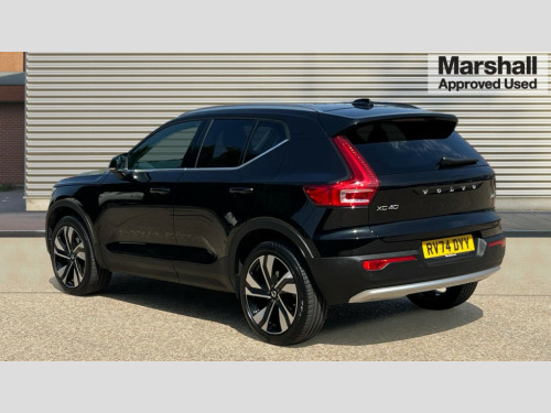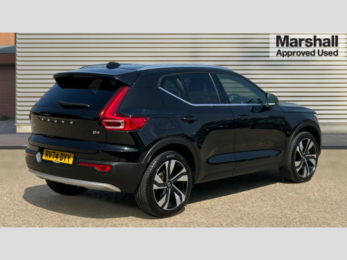 Volvo XC40 2.0 B4P Inscription Pro 5dr Auto 12.3" Active TFT crystal driver's instrument display, 9" centre console portrait touch screen, Adjustable steering wheel force, Bluetooth hands free telephone kit, Drive mode selector, E-call, Lane keep assist with driver alert control, Oncoming Lane Mitigation, Power operated tailgate, Sensus navigation with European mapping and traffic information, Speed limiter, Speed sensitive steering, Voice activated control for key functions, Volvo on call, Dynamic chassis, DAB Digital radio, Steering wheel mounted remote controls, Adaptive brake lights with high level LED brake lights, Auto dimming interior mirror, Automatic headlamp levelling, Chrome window surround, Colour coordinated auto folding and heated power door mirrors, Front aluminium tread plates, Front and rear electric windows, Heated front windscreen, High gloss black front grille with chrome inserts, High gloss black sensus surround deco, High Gloss silver front and rear skid plate, Home safe and approach lighting, Integrated roof rails in silver, LED Headlights + Active high beam incorporating daytime running lights, Rain sensor with automatic windscreen wiper activation, Rear side wing doors, Rear wiper, Roof antenna, Roof spoiler, Visible VIN plate, 12V socket in front tunnel console and luggage compartment, 2 zone electronic climate control and rear air vent, 3 seat bench in 2nd row, 3 Spoke tailored steering wheel with chrome trim, 60/40 versatile split folding rear seat, A-pillar parking ticket holder, Bright metal luggage threshold, Centre console cupholders and storage, Floor mats, Front footwell illumination, Front headrests, Front reading light and theatre lighting, Front seat cushion extensions, Front tunnel net pocket and integrated waste bin, Glovebox bag hook, Heated front seats, Height/reach adjustable steering column, Height/tilt adjustable driver's seat, High gloss centre tunnel deco, Illuminated glovebox, Illuminated luggage compartment, Illuminated vanity mirrors, Isofix attachments on outer rear seats, Leather faced upholstery, Load protection net, Orrefors Crystal gear lever knob, Power driver seat with memory + exterior mirrors memory, Power passenger seat, Rear armrest / integral cup holders / storage tray, Rear coat hook, Single front passenger seat, Underfloor cargo storage, Vanity mirror with ticket holder, Lighting pack - XC40, Park assist pack - XC40, 3x3 point rear seatbelts, City safety includes pedestrian, cyclist and large animal detection and front collision warning with full auto brake, Drivers knee airbag, Dual stage driver/passenger airbags, Electronic parking brake with auto hold, First aid kit, Front and outer rear seatbelt reminder and pretensioners, Front seats SIPS airbags, Hill descent control, Hill start assist, Inflatable curtain, Passenger airbag cut-off device, Road sign information display, Run off Road Mitigation, Run off Road Protection, SIPS (Side Impact Protection System), Slippery road and hazard light alert, Stability and Traction Control with Spin control, Engine Drag Control and Corner Traction Control, Tyre pressure monitoring system, Vehicle deceleration control with Anti-lock Brake System, Electronic Brake Distribution and Emergency Brake Assist, Warning triangle, WHIPS whiplash protection system - front, Anti-theft alarm including immobiliser/volume sensor + level sensor, Care key with user defined top speed, Key integrated remote control central locking + fuel flap with deadlocking system and auto open/close power windows, Locking wheel nuts, Private locking for tailgate, Driftwood inlays