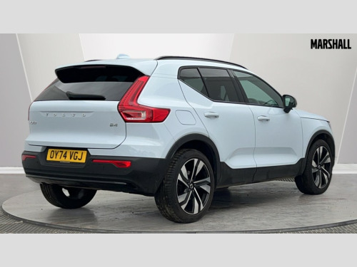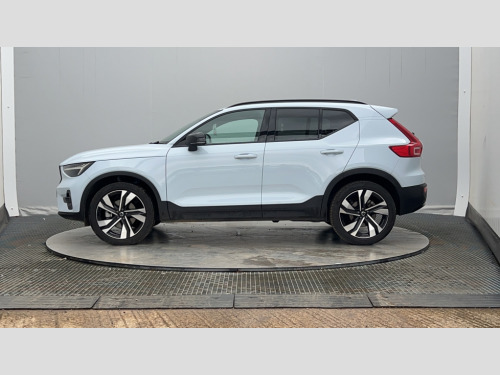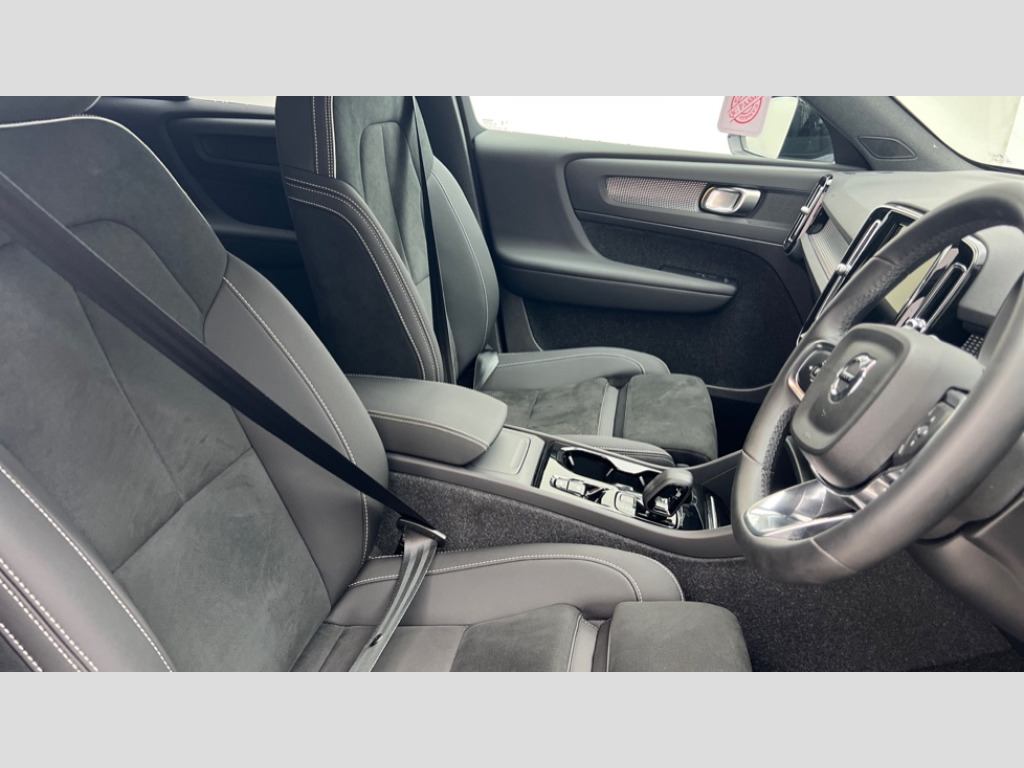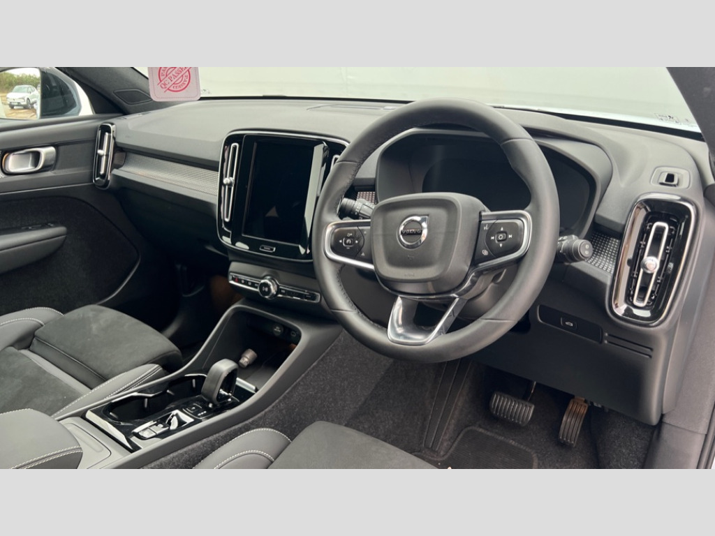 Volvo XC40 2.0 B4P Plus Dark 5dr Auto 12.3" Progressive Driver Display, 9" centre console portrait touch screen, Adjustable steering wheel force, Apple carplay (wired), Bluetooth handsfree system, Cruise control, Driver alert control, Driver awareness - Blind spot information system with steer assist, cross traffic alert with autobrake and rear collision warning and mitigation, E-call, Front park assist, Google automotive services - Enabled entertainment apps, navigation with google maps, voice recognition with google assistant, Hands free power tailgate, Intelligent speed assistance, Lane keeping aid, Oncoming Lane Mitigation, Rear park assist, Rear park assist camera, Speed sensitive steering, Volvo cars services with app - Driving journal, emergency and breakdown call, engine remote start, remote door locking/unlocking and vehicle dashboard, Wireless/Inductive Mobile Phone Charging, Automatic transmission with start/stop and manual change functions, Dynamic chassis, DAB Digital radio, High performance sound, 8 speakers/250W, 2 front type C and 2 rear type C USB, Steering wheel mounted remote controls, Adaptive brake lights with high level LED brake lights, Auto dimming feature for exterior door mirrors, Auto dimming interior mirror, Automatic headlamp levelling, Automatic LED Headlights + Active high beam incorporating daytime running lights, Front aluminium tread plates, Front and rear electric windows, High gloss black front and rear skid plate, High gloss black front bumper deco, High gloss black mesh front grille with high gloss black surround, High gloss black window trim, Home safe and approach lighting, Integrated roof rails in high gloss black, LED front fog lights, Puddle lights, Rain sensor with automatic windscreen wiper activation, Rear side wing doors, Rear wiper, Roof antenna, Roof spoiler, Visible VIN plate, 12V socket in front tunnel console and luggage compartment, 2-Zone electronic climate control with CleanZone air quality system and pollen filter, 3 seat bench in 2nd row, 3 Spoke tailored steering wheel with chrome trim, 60/40 versatile split folding rear seat, A-pillar parking ticket holder, Centre console cupholders and storage, Charcoal headlining, Connect textile/microtech upholstery, Flexible load floor and grocery bag holder, Floor mats, Front cabin courtesy lights, Front door pocket, front cupholder, ambient front door, rear reading, rear courtesy, instrument panel and tailgate lighting, Front footwell illumination, Front headrests, Front reading lights, Front seat cushion extensions, Front side step illumination (under door), Glovebox bag hook, Heated front seats, Height adjustable passenger seat, Height/reach adjustable steering column, High gloss centre tunnel deco, Illuminated glovebox, Illuminated luggage compartment, Illuminated vanity mirrors + ticket holder, Integrated waste bin, Isofix attachments on outer rear seats, Load cover, Load protection net, Multi directional lumbar support for driver and passenger seat, Power driver seat with memory + exterior mirrors memory, Rear armrest with cupholders, Rear headrests, Single front passenger seat, Underfloor cargo storage, Climate pack without heated front seats - XC40, 3x3 point rear seatbelts, City safety with steering support with Pedestrian + cyclist + front collision warning with full auto brake and rear auto brake, Driver and passenger airbags, Drivers knee airbag, Electronic parking brake with auto hold, First aid kit, Front and outer rear seatbelt reminder and pretensioners, Front seats SIPS airbags, Hill descent control, Hill start assist, Inflatable curtain, Passenger airbag cut-off device, Power child locks on rear doors, Road sign information display, Run off Road Protection, SIPS (Side Impact Protection System), Slippery road and hazard light alert, Stability and Traction Control with Spin control, Engine Drag Control and Corner Traction Control, Tyre pressure monitoring system, Vehicle deceleration control with Anti-lock Brake System, Electronic Brake Distribution and Emergency Brake Assist, Warning triangle, WHIPS whiplash protection system - front, 2 x Key integrated remote control central locking including with deadlocking system and auto open/close windows, Anti-theft alarm including immobiliser/volume sensor + level sensor, Keyless drive includes keyless entry and keyless start, Locking wheel nuts