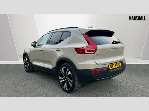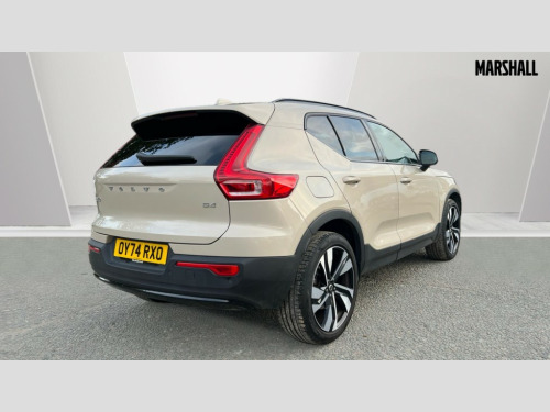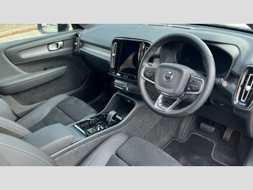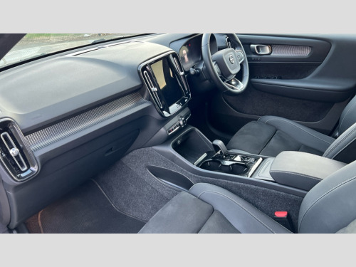 Volvo XC40 2.0 B4P Plus Dark 5dr Auto 12.3" Progressive Driver Display, 9" centre console portrait touch screen, Adjustable steering wheel force, Apple carplay (wired), Bluetooth handsfree system, Cruise control, Driver alert control, Driver awareness - Blind spot information system with steer assist, cross traffic alert with autobrake and rear collision warning and mitigation, E-call, Front park assist, Google automotive services - Enabled entertainment apps, navigation with google maps, voice recognition with google assistant, Hands free power tailgate, Intelligent speed assistance, Lane keeping aid, Oncoming Lane Mitigation, Rear park assist, Rear park assist camera, Speed sensitive steering, Volvo cars services with app - Driving journal, emergency and breakdown call, engine remote start, remote door locking/unlocking and vehicle dashboard, Wireless/Inductive Mobile Phone Charging, Automatic transmission with start/stop and manual change functions, Dynamic chassis, DAB Digital radio, High performance sound, 8 speakers/250W, 2 front type C and 2 rear type C USB, Steering wheel mounted remote controls, Adaptive brake lights with high level LED brake lights, Auto dimming feature for exterior door mirrors, Auto dimming interior mirror, Automatic headlamp levelling, Automatic LED Headlights + Active high beam incorporating daytime running lights, Front aluminium tread plates, Front and rear electric windows, High gloss black front and rear skid plate, High gloss black front bumper deco, High gloss black mesh front grille with high gloss black surround, High gloss black window trim, Home safe and approach lighting, Integrated roof rails in high gloss black, LED front fog lights, Puddle lights, Rain sensor with automatic windscreen wiper activation, Rear side wing doors, Rear wiper, Roof antenna, Roof spoiler, Visible VIN plate, 12V socket in front tunnel console and luggage compartment, 2-Zone electronic climate control with CleanZone air quality system and pollen filter, 3 seat bench in 2nd row, 3 Spoke tailored steering wheel with chrome trim, 60/40 versatile split folding rear seat, A-pillar parking ticket holder, Centre console cupholders and storage, Charcoal headlining, Connect textile/microtech upholstery, Flexible load floor and grocery bag holder, Floor mats, Front cabin courtesy lights, Front door pocket, front cupholder, ambient front door, rear reading, rear courtesy, instrument panel and tailgate lighting, Front footwell illumination, Front headrests, Front reading lights, Front seat cushion extensions, Front side step illumination (under door), Glovebox bag hook, Heated front seats, Height adjustable passenger seat, Height/reach adjustable steering column, High gloss centre tunnel deco, Illuminated glovebox, Illuminated luggage compartment, Illuminated vanity mirrors + ticket holder, Integrated waste bin, Isofix attachments on outer rear seats, Load cover, Load protection net, Multi directional lumbar support for driver and passenger seat, Power driver seat with memory + exterior mirrors memory, Rear armrest with cupholders, Rear headrests, Single front passenger seat, Underfloor cargo storage, Climate pack without heated front seats - XC40, 3x3 point rear seatbelts, City safety with steering support with Pedestrian + cyclist + front collision warning with full auto brake and rear auto brake, Driver and passenger airbags, Drivers knee airbag, Electronic parking brake with auto hold, First aid kit, Front and outer rear seatbelt reminder and pretensioners, Front seats SIPS airbags, Hill descent control, Hill start assist, Inflatable curtain, Passenger airbag cut-off device, Power child locks on rear doors, Road sign information display, Run off Road Protection, SIPS (Side Impact Protection System), Slippery road and hazard light alert, Stability and Traction Control with Spin control, Engine Drag Control and Corner Traction Control, Tyre pressure monitoring system, Vehicle deceleration control with Anti-lock Brake System, Electronic Brake Distribution and Emergency Brake Assist, Warning triangle, WHIPS whiplash protection system - front, 2 x Key integrated remote control central locking including with deadlocking system and auto open/close windows, Anti-theft alarm including immobiliser/volume sensor + level sensor, Keyless drive includes keyless entry and keyless start, Locking wheel nuts