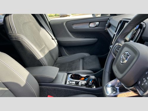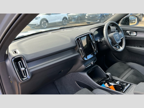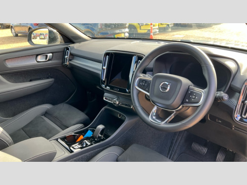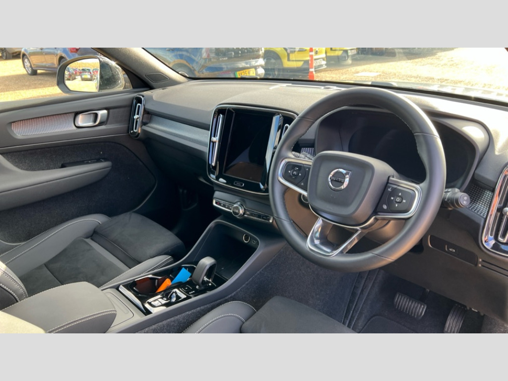 Volvo XC40 2.0 B4P Plus Dark 5dr Auto 12.3" Progressive Driver Display, 9" centre console portrait touch screen, Adjustable steering wheel force, Android auto (Wired), Apple carplay (wired), Bluetooth handsfree system, Driver alert control, Driver assistance (pilot assist and adaptive cruise control), Driver awareness - Blind spot information system with steer assist, cross traffic alert with autobrake and rear collision warning and mitigation, E-call, Front park assist, Google automotive services - Enabled entertainment apps, navigation with google maps, voice recognition with google assistant, Hands free power tailgate, Intelligent speed assistance, Lane keeping aid, Oncoming Lane Mitigation, Rear park assist, Speed sensitive steering, Volvo cars services with app - Driving journal, emergency and breakdown call, engine remote start, remote door locking/unlocking and vehicle dashboard, Wireless/Inductive Mobile Phone Charging, Automatic transmission with start/stop and manual change functions, Dynamic chassis, DAB Digital radio, Steering wheel mounted remote controls, Adaptive brake lights with high level LED brake lights, Auto dimming feature for exterior door mirrors, Auto dimming interior mirror, Automatic headlamp levelling, Automatic LED Headlights + Active high beam incorporating daytime running lights, Front aluminium tread plates, Front and rear electric windows, High gloss black front and rear skid plate, High gloss black front bumper deco, High gloss black mesh front grille with high gloss black surround, High gloss black window trim, Home safe and approach lighting, Integrated roof rails in high gloss black, LED front fog lights, Puddle lights, Rain sensor with automatic windscreen wiper activation, Rear side wing doors, Rear wiper, Roof antenna, Roof spoiler, Visible VIN plate, 12V socket in front tunnel console and luggage compartment, 2-Zone electronic climate control with CleanZone air quality system and pollen filter, 3 seat bench in 2nd row, 3 Spoke tailored steering wheel with chrome trim, 60/40 versatile split folding rear seat, Centre console cupholders and storage, Charcoal headlining, Connect textile/microtech upholstery, Flexible load floor and grocery bag holder, Floor mats, Front cabin courtesy lights, Front door pocket, front cupholder, ambient front door, rear reading, rear courtesy, instrument panel and tailgate lighting, Front footwell illumination, Front headrests, Front reading lights, Front seat cushion extensions, Front side step illumination (under door), Glovebox bag hook, Heated front seats, Height adjustable passenger seat, Height/reach adjustable steering column, High gloss centre tunnel deco, Illuminated glovebox, Illuminated luggage compartment, Illuminated vanity mirrors + ticket holder, Integrated waste bin, Isofix attachments on outer rear seats, Load cover, Load protection net, Multi directional lumbar support for driver and passenger seat, Power driver seat with memory + exterior mirrors memory, Rear armrest with cupholders, Rear headrests, Single front passenger seat, Underfloor cargo storage, Climate pack without heated front seats - XC40, 3x3 point rear seatbelts, City safety with steering support with Pedestrian + cyclist + front collision warning with full auto brake and rear auto brake, Driver and passenger airbags, Drivers knee airbag, Electronic parking brake with auto hold, First aid kit, Front and outer rear seatbelt reminder and pretensioners, Front seats SIPS airbags, Hill descent control, Hill start assist, Inflatable curtain, Passenger airbag cut-off device, Power child locks on rear doors, Road sign information display, Run off Road Protection, SIPS (Side Impact Protection System), Slippery road and hazard light alert, Stability and Traction Control with Spin control, Engine Drag Control and Corner Traction Control, Tyre pressure monitoring system, Vehicle deceleration control with Anti-lock Brake System, Electronic Brake Distribution and Emergency Brake Assist, Warning triangle, WHIPS whiplash protection system - front, 2 x Key integrated remote control central locking including with deadlocking system and auto open/close windows, Anti-theft alarm including immobiliser/volume sensor + level sensor, Keyless drive includes keyless entry and keyless start, Locking wheel nuts