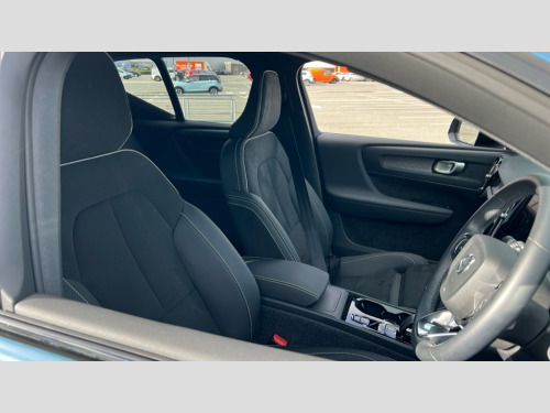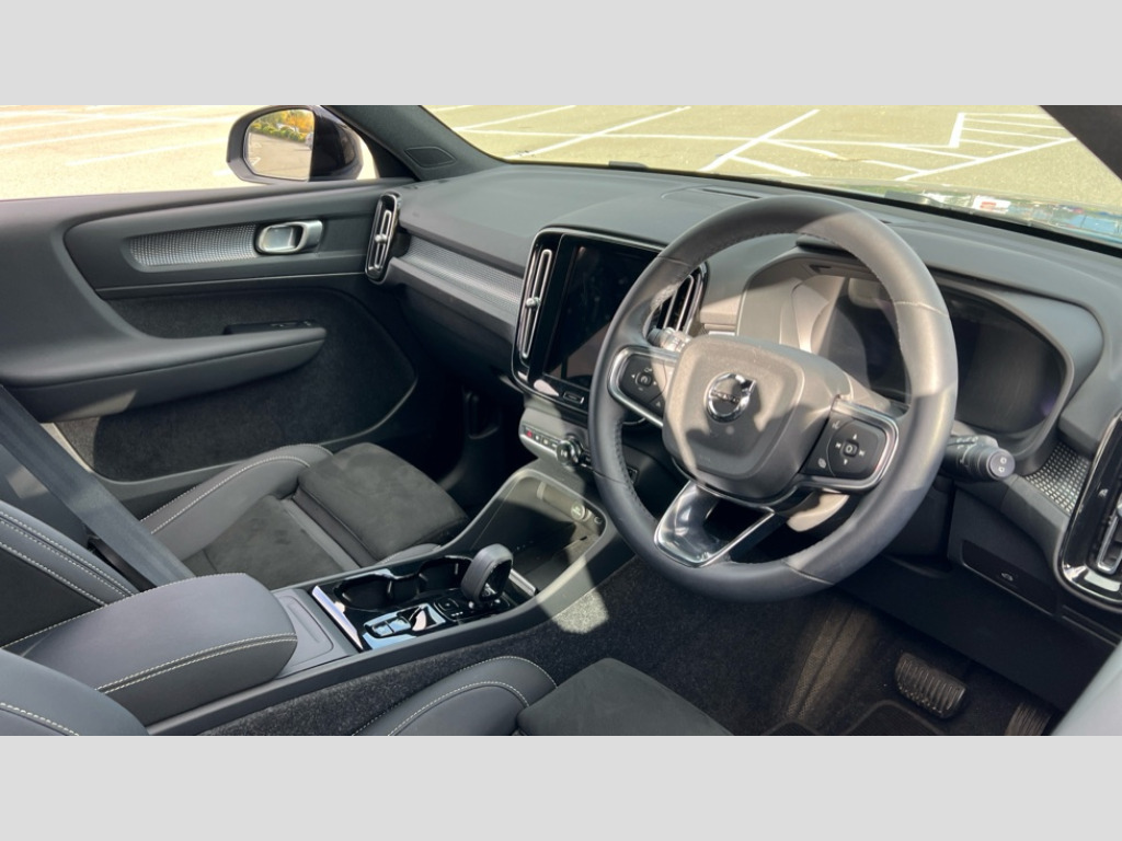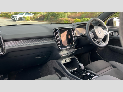 Volvo XC40 2.0 B4P Plus Dark 5dr Auto 12.3" Progressive Driver Display, 9" centre console portrait touch screen, Adjustable steering wheel force, Apple carplay (wired), Bluetooth handsfree system, Cruise control, Driver alert control, Driver awareness - Blind spot information system with steer assist, cross traffic alert with autobrake and rear collision warning and mitigation, E-call, Front park assist, Google automotive services - Enabled entertainment apps, navigation with google maps, voice recognition with google assistant, Hands free power tailgate, Intelligent speed assistance, Lane keeping aid, Oncoming Lane Mitigation, Rear park assist, Rear park assist camera, Speed sensitive steering, Volvo cars services with app - Driving journal, emergency and breakdown call, engine remote start, remote door locking/unlocking and vehicle dashboard, Wireless/Inductive Mobile Phone Charging, Automatic transmission with start/stop and manual change functions, Dynamic chassis, DAB Digital radio, High performance sound, 8 speakers/250W, 2 front type C and 2 rear type C USB, Steering wheel mounted remote controls, Adaptive brake lights with high level LED brake lights, Auto dimming feature for exterior door mirrors, Auto dimming interior mirror, Automatic headlamp levelling, Automatic LED Headlights + Active high beam incorporating daytime running lights, Front aluminium tread plates, Front and rear electric windows, High gloss black front and rear skid plate, High gloss black front bumper deco, High gloss black mesh front grille with high gloss black surround, High gloss black window trim, Home safe and approach lighting, Integrated roof rails in high gloss black, LED front fog lights, Puddle lights, Rain sensor with automatic windscreen wiper activation, Rear side wing doors, Rear wiper, Roof antenna, Roof spoiler, Visible VIN plate, 12V socket in front tunnel console and luggage compartment, 2-Zone electronic climate control with CleanZone air quality system and pollen filter, 3 seat bench in 2nd row, 3 Spoke tailored steering wheel with chrome trim, 60/40 versatile split folding rear seat, A-pillar parking ticket holder, Centre console cupholders and storage, Charcoal headlining, Connect textile/microtech upholstery, Flexible load floor and grocery bag holder, Floor mats, Front cabin courtesy lights, Front door pocket, front cupholder, ambient front door, rear reading, rear courtesy, instrument panel and tailgate lighting, Front footwell illumination, Front headrests, Front reading lights, Front seat cushion extensions, Front side step illumination (under door), Glovebox bag hook, Heated front seats, Height adjustable passenger seat, Height/reach adjustable steering column, High gloss centre tunnel deco, Illuminated glovebox, Illuminated luggage compartment, Illuminated vanity mirrors + ticket holder, Integrated waste bin, Isofix attachments on outer rear seats, Load cover, Load protection net, Multi directional lumbar support for driver and passenger seat, Power driver seat with memory + exterior mirrors memory, Rear armrest with cupholders, Rear headrests, Single front passenger seat, Underfloor cargo storage, Climate pack without heated front seats - XC40, 3x3 point rear seatbelts, City safety with steering support with Pedestrian + cyclist + front collision warning with full auto brake and rear auto brake, Driver and passenger airbags, Drivers knee airbag, Electronic parking brake with auto hold, First aid kit, Front and outer rear seatbelt reminder and pretensioners, Front seats SIPS airbags, Hill descent control, Hill start assist, Inflatable curtain, Passenger airbag cut-off device, Power child locks on rear doors, Road sign information display, Run off Road Protection, SIPS (Side Impact Protection System), Slippery road and hazard light alert, Stability and Traction Control with Spin control, Engine Drag Control and Corner Traction Control, Tyre pressure monitoring system, Vehicle deceleration control with Anti-lock Brake System, Electronic Brake Distribution and Emergency Brake Assist, Warning triangle, WHIPS whiplash protection system - front, 2 x Key integrated remote control central locking including with deadlocking system and auto open/close windows, Anti-theft alarm including immobiliser/volume sensor + level sensor, Keyless drive includes keyless entry and keyless start, Locking wheel nuts