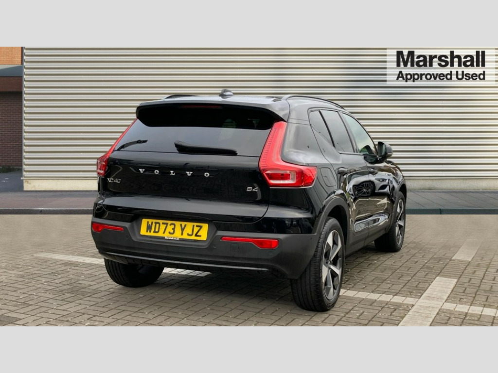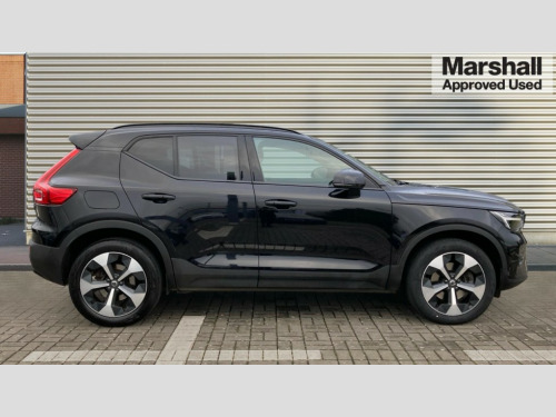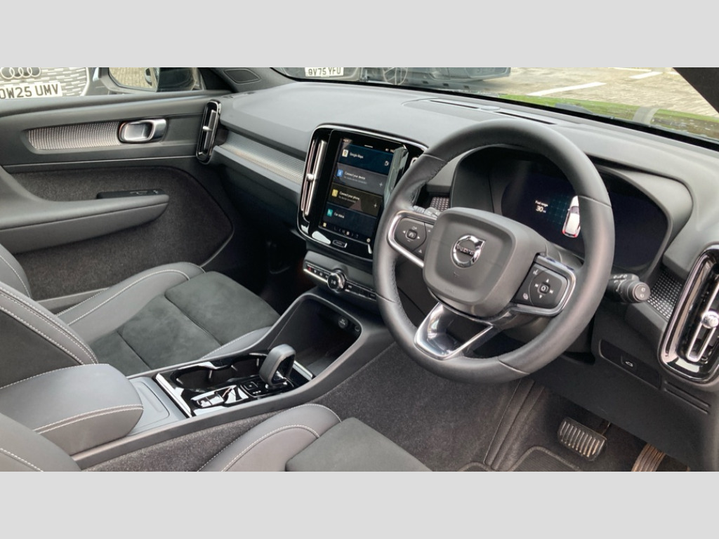 Volvo XC40 2.0 B4P Plus Dark 5dr Auto 12.3" Progressive Driver Display, 9" centre console portrait touch screen, Adjustable steering wheel force, Apple carplay (wired), Bluetooth handsfree system, Cruise control, Driver alert control, Driver awareness - Blind spot information system with steer assist, cross traffic alert with autobrake and rear collision warning and mitigation, E-call, Front park assist, Google automotive services - Enabled entertainment apps, navigation with google maps, voice recognition with google assistant, Hands free power tailgate, Intelligent speed assistance, Lane keeping aid, Oncoming Lane Mitigation, Rear park assist, Rear park assist camera, Speed sensitive steering, Volvo cars services with app - Driving journal, emergency and breakdown call, engine remote start, remote door locking/unlocking and vehicle dashboard, Wireless/Inductive Mobile Phone Charging, Automatic transmission with start/stop and manual change functions, Dynamic chassis, DAB Digital radio, High performance sound, 8 speakers/250W, 2 front type C and 2 rear type C USB, Steering wheel mounted remote controls, Adaptive brake lights with high level LED brake lights, Auto dimming feature for exterior door mirrors, Auto dimming interior mirror, Automatic headlamp levelling, Automatic LED Headlights + Active high beam incorporating daytime running lights, Front aluminium tread plates, Front and rear electric windows, High gloss black front and rear skid plate, High gloss black front bumper deco, High gloss black mesh front grille with high gloss black surround, High gloss black window trim, Home safe and approach lighting, Integrated roof rails in high gloss black, LED front fog lights, Puddle lights, Rain sensor with automatic windscreen wiper activation, Rear side wing doors, Rear wiper, Roof antenna, Roof spoiler, Visible VIN plate, 12V socket in front tunnel console and luggage compartment, 2-Zone electronic climate control with CleanZone air quality system and pollen filter, 3 seat bench in 2nd row, 3 Spoke tailored steering wheel with chrome trim, 60/40 versatile split folding rear seat, A-pillar parking ticket holder, Centre console cupholders and storage, Charcoal headlining, Connect textile/microtech upholstery, Flexible load floor and grocery bag holder, Floor mats, Front cabin courtesy lights, Front door pocket, front cupholder, ambient front door, rear reading, rear courtesy, instrument panel and tailgate lighting, Front footwell illumination, Front headrests, Front reading lights, Front seat cushion extensions, Front side step illumination (under door), Glovebox bag hook, Heated front seats, Height adjustable passenger seat, Height/reach adjustable steering column, High gloss centre tunnel deco, Illuminated glovebox, Illuminated luggage compartment, Illuminated vanity mirrors + ticket holder, Integrated waste bin, Isofix attachments on outer rear seats, Load cover, Load protection net, Multi directional lumbar support for driver and passenger seat, Power driver seat with memory + exterior mirrors memory, Rear armrest with cupholders, Rear headrests, Single front passenger seat, Underfloor cargo storage, Climate pack without heated front seats - XC40, 3x3 point rear seatbelts, City safety with steering support with Pedestrian + cyclist + front collision warning with full auto brake and rear auto brake, Driver and passenger airbags, Drivers knee airbag, Electronic parking brake with auto hold, First aid kit, Front and outer rear seatbelt reminder and pretensioners, Front seats SIPS airbags, Hill descent control, Hill start assist, Inflatable curtain, Passenger airbag cut-off device, Power child locks on rear doors, Road sign information display, Run off Road Protection, SIPS (Side Impact Protection System), Slippery road and hazard light alert, Stability and Traction Control with Spin control, Engine Drag Control and Corner Traction Control, Tyre pressure monitoring system, Vehicle deceleration control with Anti-lock Brake System, Electronic Brake Distribution and Emergency Brake Assist, Warning triangle, WHIPS whiplash protection system - front, 2 x Key integrated remote control central locking including with deadlocking system and auto open/close windows, Anti-theft alarm including immobiliser/volume sensor + level sensor, Keyless drive includes keyless entry and keyless start, Locking wheel nuts