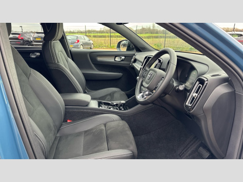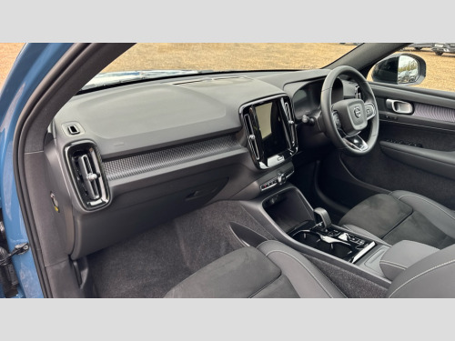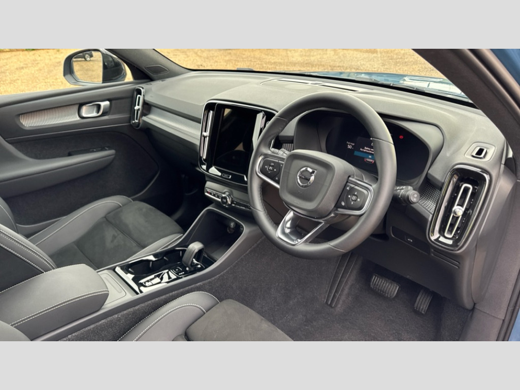 Volvo XC40 2.0 B4P Plus Dark 5dr Auto 12.3" Progressive Driver Display, 9" centre console portrait touch screen, Adjustable steering wheel force, Android auto (Wired), Apple carplay (wired), Bluetooth handsfree system, Driver alert control, Driver assistance (pilot assist and adaptive cruise control), Driver awareness - Blind spot information system with steer assist, cross traffic alert with autobrake and rear collision warning and mitigation, E-call, Front park assist, Google automotive services - Enabled entertainment apps, navigation with google maps, voice recognition with google assistant, Hands free power tailgate, Intelligent speed assistance, Lane keeping aid, Oncoming Lane Mitigation, Rear park assist, Speed sensitive steering, Volvo cars services with app - Driving journal, emergency and breakdown call, engine remote start, remote door locking/unlocking and vehicle dashboard, Wireless/Inductive Mobile Phone Charging, Automatic transmission with start/stop and manual change functions, Dynamic chassis, DAB Digital radio, Steering wheel mounted remote controls, Adaptive brake lights with high level LED brake lights, Auto dimming feature for exterior door mirrors, Auto dimming interior mirror, Automatic headlamp levelling, Automatic LED Headlights + Active high beam incorporating daytime running lights, Front aluminium tread plates, Front and rear electric windows, High gloss black front and rear skid plate, High gloss black front bumper deco, High gloss black mesh front grille with high gloss black surround, High gloss black window trim, Home safe and approach lighting, Integrated roof rails in high gloss black, LED front fog lights, Puddle lights, Rain sensor with automatic windscreen wiper activation, Rear side wing doors, Rear wiper, Roof antenna, Roof spoiler, Visible VIN plate, 12V socket in front tunnel console and luggage compartment, 2-Zone electronic climate control with CleanZone air quality system and pollen filter, 3 seat bench in 2nd row, 3 Spoke tailored steering wheel with chrome trim, 60/40 versatile split folding rear seat, Centre console cupholders and storage, Charcoal headlining, Connect textile/microtech upholstery, Flexible load floor and grocery bag holder, Floor mats, Front cabin courtesy lights, Front door pocket, front cupholder, ambient front door, rear reading, rear courtesy, instrument panel and tailgate lighting, Front footwell illumination, Front headrests, Front reading lights, Front seat cushion extensions, Front side step illumination (under door), Glovebox bag hook, Heated front seats, Height adjustable passenger seat, Height/reach adjustable steering column, High gloss centre tunnel deco, Illuminated glovebox, Illuminated luggage compartment, Illuminated vanity mirrors + ticket holder, Integrated waste bin, Isofix attachments on outer rear seats, Load cover, Load protection net, Multi directional lumbar support for driver and passenger seat, Power driver seat with memory + exterior mirrors memory, Rear armrest with cupholders, Rear headrests, Single front passenger seat, Underfloor cargo storage, Climate pack without heated front seats - XC40, 3x3 point rear seatbelts, City safety with steering support with Pedestrian + cyclist + front collision warning with full auto brake and rear auto brake, Driver and passenger airbags, Drivers knee airbag, Electronic parking brake with auto hold, First aid kit, Front and outer rear seatbelt reminder and pretensioners, Front seats SIPS airbags, Hill descent control, Hill start assist, Inflatable curtain, Passenger airbag cut-off device, Power child locks on rear doors, Road sign information display, Run off Road Protection, SIPS (Side Impact Protection System), Slippery road and hazard light alert, Stability and Traction Control with Spin control, Engine Drag Control and Corner Traction Control, Tyre pressure monitoring system, Vehicle deceleration control with Anti-lock Brake System, Electronic Brake Distribution and Emergency Brake Assist, Warning triangle, WHIPS whiplash protection system - front, 2 x Key integrated remote control central locking including with deadlocking system and auto open/close windows, Anti-theft alarm including immobiliser/volume sensor + level sensor, Keyless drive includes keyless entry and keyless start, Locking wheel nuts