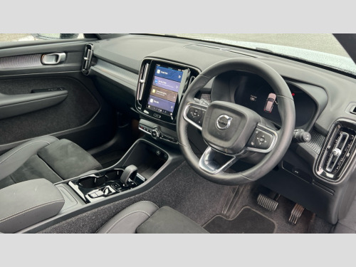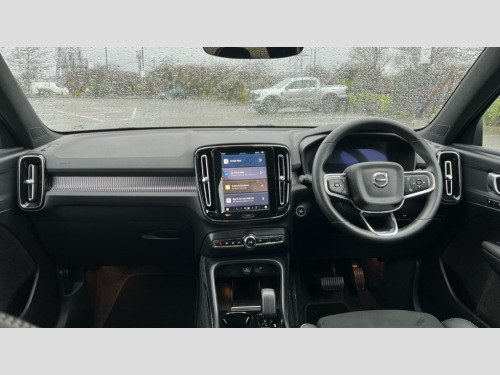 Volvo XC40 2.0 B4P Plus Dark 5dr Auto 12.3" Progressive Driver Display, 9" centre console portrait touch screen, Adjustable steering wheel force, Android auto (Wired), Apple carplay (wired), Bluetooth handsfree system, Cruise control, Driver alert control, E-call, Front park assist, Google automotive services - Enabled entertainment apps, navigation with google maps, voice recognition with google assistant, Hands free power tailgate, Intelligent speed assistance, Lane keeping aid, Oncoming Lane Mitigation, Rear park assist, Speed sensitive steering, Volvo cars services with app - Driving journal, emergency and breakdown call, engine remote start, remote door locking/unlocking and vehicle dashboard, Wireless/Inductive Mobile Phone Charging, Automatic transmission with start/stop and manual change functions, Dynamic chassis, DAB Digital radio, Steering wheel mounted remote controls, Adaptive brake lights with high level LED brake lights, Auto dimming interior mirror, Automatic headlamp levelling, Automatic LED Headlights + Active high beam incorporating daytime running lights, Front aluminium tread plates, Front and rear electric windows, High gloss black front and rear skid plate, High gloss black front bumper deco, High gloss black mesh front grille with high gloss black surround, High gloss black window trim, Home safe and approach lighting, Integrated roof rails in high gloss black, LED front fog lights, Puddle lights, Rain sensor with automatic windscreen wiper activation, Rear side wing doors, Rear wiper, Roof antenna, Roof spoiler, Visible VIN plate, 12V socket in front tunnel console and luggage compartment, 2-Zone electronic climate control with CleanZone air quality system and pollen filter, 3 seat bench in 2nd row, 3 Spoke tailored steering wheel with chrome trim, 60/40 versatile split folding rear seat, Centre console cupholders and storage, Flexible load floor and grocery bag holder, Floor mats, Front cabin courtesy lights, Front door pocket, front cupholder, ambient front door, rear reading, rear courtesy, instrument panel and tailgate lighting, Front footwell illumination, Front headrests, Front reading lights, Front seat cushion extensions, Front side step illumination (under door), Glovebox bag hook, Heated front seats, Height adjustable passenger seat, Height/reach adjustable steering column, High gloss centre tunnel deco, Illuminated glovebox, Illuminated luggage compartment, Illuminated vanity mirrors + ticket holder, Integrated waste bin, Isofix attachments on outer rear seats, Load cover, Load protection net, Multi directional lumbar support for driver and passenger seat, Power driver seat with memory + exterior mirrors memory, Rear armrest with cupholders, Rear headrests, Single front passenger seat, Underfloor cargo storage, Climate pack without heated front seats - XC40, 3x3 point rear seatbelts, City safety with steering support with Pedestrian + cyclist + front collision warning with full auto brake and rear auto brake, Driver and passenger airbags, Drivers knee airbag, Electronic parking brake with auto hold, First aid kit, Front and outer rear seatbelt reminder and pretensioners, Front seats SIPS airbags, Hill descent control, Hill start assist, Inflatable curtain, Passenger airbag cut-off device, Power child locks on rear doors, Road sign information display, Run off Road Protection, SIPS (Side Impact Protection System), Slippery road and hazard light alert, Stability and Traction Control with Spin control, Engine Drag Control and Corner Traction Control, Tyre pressure monitoring system, Vehicle deceleration control with Anti-lock Brake System, Electronic Brake Distribution and Emergency Brake Assist, Warning triangle, WHIPS whiplash protection system - front, 2 x Key integrated remote control central locking including with deadlocking system and auto open/close windows, Anti-theft alarm including immobiliser/volume sensor + level sensor, Keyless drive includes keyless entry and keyless start, Locking wheel nuts
