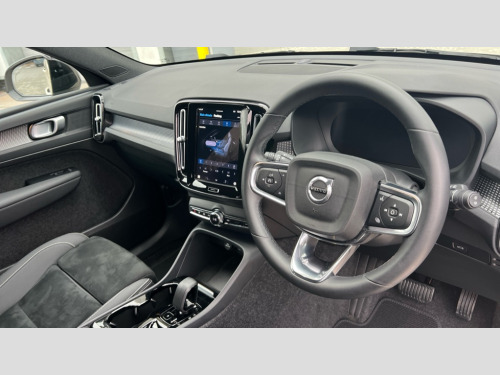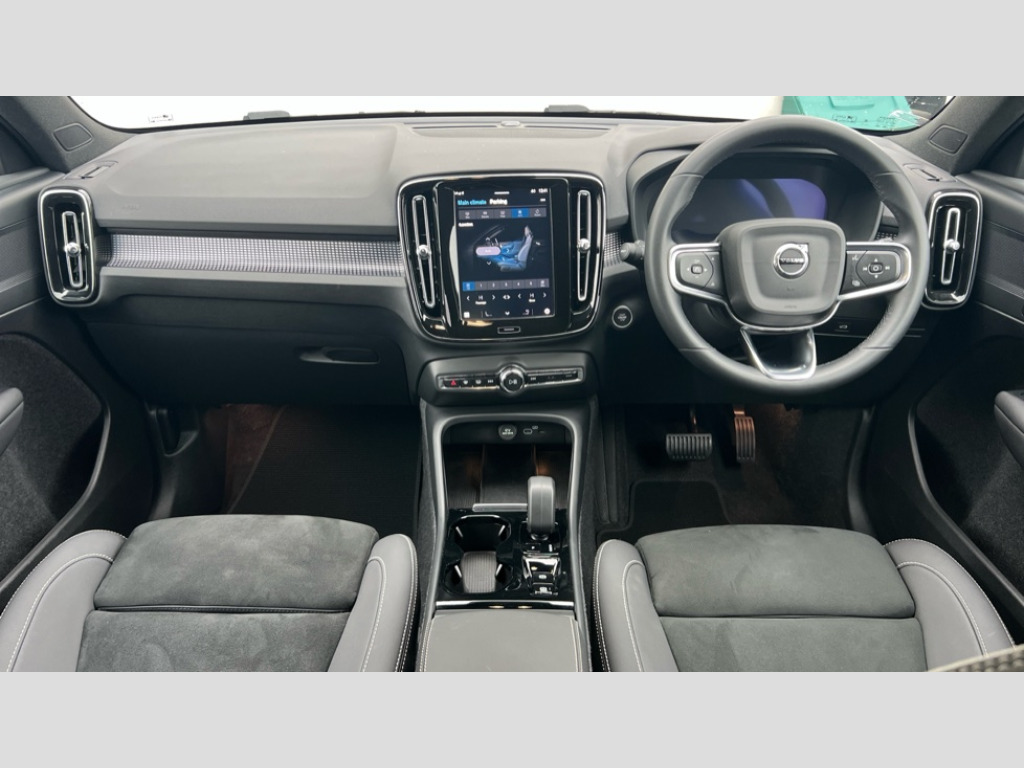 Volvo XC40 2.0 B4P Plus Dark 5dr Auto 12.3" Progressive Driver Display, 9" centre console portrait touch screen, Adjustable steering wheel force, Android auto (Wired), Apple carplay (wired), Bluetooth handsfree system, Driver alert control, Driver assistance (pilot assist and adaptive cruise control), Driver awareness - Blind spot information system with steer assist, cross traffic alert with autobrake and rear collision warning and mitigation, E-call, Front park assist, Google automotive services - Enabled entertainment apps, navigation with google maps, voice recognition with google assistant, Hands free power tailgate, Intelligent speed assistance, Lane keeping aid, Oncoming Lane Mitigation, Rear park assist, Speed sensitive steering, Volvo cars services with app - Driving journal, emergency and breakdown call, engine remote start, remote door locking/unlocking and vehicle dashboard, Wireless/Inductive Mobile Phone Charging, Automatic transmission with start/stop and manual change functions, Dynamic chassis, DAB Digital radio, Steering wheel mounted remote controls, Adaptive brake lights with high level LED brake lights, Auto dimming feature for exterior door mirrors, Auto dimming interior mirror, Automatic headlamp levelling, Automatic LED Headlights + Active high beam incorporating daytime running lights, Front aluminium tread plates, Front and rear electric windows, High gloss black front and rear skid plate, High gloss black front bumper deco, High gloss black mesh front grille with high gloss black surround, High gloss black window trim, Home safe and approach lighting, Integrated roof rails in high gloss black, LED front fog lights, Puddle lights, Rain sensor with automatic windscreen wiper activation, Rear side wing doors, Rear wiper, Roof antenna, Roof spoiler, Visible VIN plate, 12V socket in front tunnel console and luggage compartment, 2-Zone electronic climate control with CleanZone air quality system and pollen filter, 3 seat bench in 2nd row, 3 Spoke tailored steering wheel with chrome trim, 60/40 versatile split folding rear seat, Centre console cupholders and storage, Charcoal headlining, Connect textile/microtech upholstery, Flexible load floor and grocery bag holder, Floor mats, Front cabin courtesy lights, Front door pocket, front cupholder, ambient front door, rear reading, rear courtesy, instrument panel and tailgate lighting, Front footwell illumination, Front headrests, Front reading lights, Front seat cushion extensions, Front side step illumination (under door), Glovebox bag hook, Heated front seats, Height adjustable passenger seat, Height/reach adjustable steering column, High gloss centre tunnel deco, Illuminated glovebox, Illuminated luggage compartment, Illuminated vanity mirrors + ticket holder, Integrated waste bin, Isofix attachments on outer rear seats, Load cover, Load protection net, Multi directional lumbar support for driver and passenger seat, Power driver seat with memory + exterior mirrors memory, Rear armrest with cupholders, Rear headrests, Single front passenger seat, Underfloor cargo storage, Climate pack without heated front seats - XC40, 3x3 point rear seatbelts, City safety with steering support with Pedestrian + cyclist + front collision warning with full auto brake and rear auto brake, Driver and passenger airbags, Drivers knee airbag, Electronic parking brake with auto hold, First aid kit, Front and outer rear seatbelt reminder and pretensioners, Front seats SIPS airbags, Hill descent control, Hill start assist, Inflatable curtain, Passenger airbag cut-off device, Power child locks on rear doors, Road sign information display, Run off Road Protection, SIPS (Side Impact Protection System), Slippery road and hazard light alert, Stability and Traction Control with Spin control, Engine Drag Control and Corner Traction Control, Tyre pressure monitoring system, Vehicle deceleration control with Anti-lock Brake System, Electronic Brake Distribution and Emergency Brake Assist, Warning triangle, WHIPS whiplash protection system - front, 2 x Key integrated remote control central locking including with deadlocking system and auto open/close windows, Anti-theft alarm including immobiliser/volume sensor + level sensor, Keyless drive includes keyless entry and keyless start, Locking wheel nuts