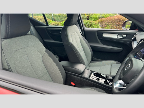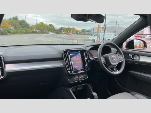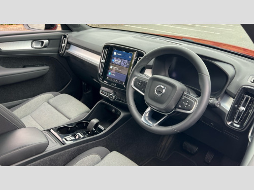 Volvo XC40 2.0 B4P Plus Dark 5dr AWD Auto 12.3" Progressive Driver Display, 9" centre console portrait touch screen, Adjustable steering wheel force, Bluetooth hands free telephone kit, E-call, eCall emergency call system, Front park assist, Google automatic services - Nav with google maps, apple carplay/android auto, voice recognition with google assistant, Hands free power tailgate, Lane keep assist with driver alert control, Oncoming Lane Mitigation, Rear park assist, Speed limiter, Speed sensitive steering, Wireless/Inductive Mobile Phone Charging, Dynamic chassis, DAB Digital radio, High performance sound, 8 speakers/250W, front USB and 2 rear type C USB, Steering wheel mounted remote controls, Adaptive brake lights with high level LED brake lights, Auto dimming interior mirror, Automatic headlamp levelling, Automatic LED Headlights + Active high beam incorporating daytime running lights, Front aluminium tread plates, Front and rear electric windows, High gloss black front and rear skid plate, High gloss black mesh front grille with high gloss black surround, High gloss black window trim, Home safe and approach lighting, Integrated roof rails in high gloss black, LED front fog lights, Puddle lights, Rain sensor with automatic windscreen wiper activation, Rear side wing doors, Rear wiper, Roof antenna, Roof spoiler, Visible VIN plate, 12V socket in front tunnel console and luggage compartment, 2-Zone electronic climate control with CleanZone air quality system and pollen filter, 3 seat bench in 2nd row, 3 Spoke tailored steering wheel with chrome trim, 60/40 versatile split folding rear seat, A-pillar parking ticket holder, Ambient front door and instrumental panel lighting, Centre console cupholders and storage, Flexible load floor and grocery bag holder, Floor mats, Front door pocket and front cupholder illumination, Front footwell illumination, Front headrests, Front reading light and theatre lighting, Front seat cushion extensions, Front tunnel pocket, Glovebox bag hook, Height adjustable passenger seat, Height/reach adjustable steering column, High gloss centre tunnel deco, Illuminated glovebox, Illuminated luggage compartment, Illuminated tailgate, Illuminated vanity mirrors, Integrated waste bin, Isofix attachments on outer rear seats, Load protection net, Multi directional lumbar support, Power driver seat with memory + exterior mirrors memory, Rear armrest / integral cup holders / storage tray, Rear headrests, Rear reading and courtesy lights, Single front passenger seat, Underfloor cargo storage, Climate pack - XC40, 3x3 point rear seatbelts, City safety with steering support with Pedestrian + cyclist + front collision warning with full auto brake and rear auto brake, Drivers knee airbag, Dual stage driver/passenger airbags, Electronic parking brake with auto hold, First aid kit, Front and outer rear seatbelt reminder and pretensioners, Front seats SIPS airbags, Hill descent control, Hill start assist, Inflatable curtain, Passenger airbag cut-off device, Power child locks on rear doors, Road sign information display, Run off Road Mitigation, Run off Road Protection, SIPS (Side Impact Protection System), Slippery road and hazard light alert, Stability and Traction Control with Spin control, Engine Drag Control and Corner Traction Control, Tyre pressure monitoring system, Vehicle deceleration control with Anti-lock Brake System, Electronic Brake Distribution and Emergency Brake Assist, Warning triangle, WHIPS whiplash protection system - front, Anti-theft alarm including immobiliser/volume sensor + level sensor, Care key with user defined top speed, Key integrated remote control central locking + fuel flap with deadlocking system and auto open/close power windows, Keyless drive includes keyless entry and keyless start, Locking wheel nuts, Private locking for tailgate