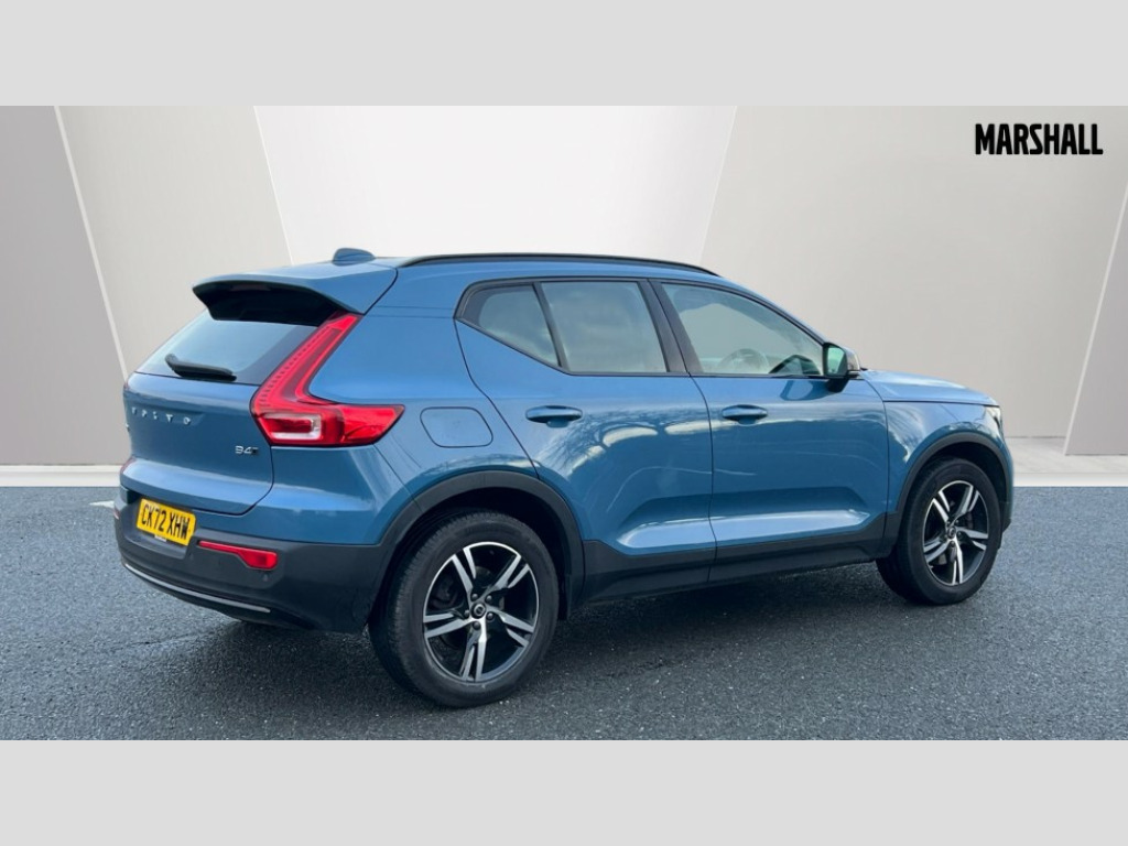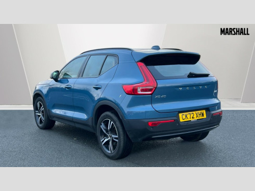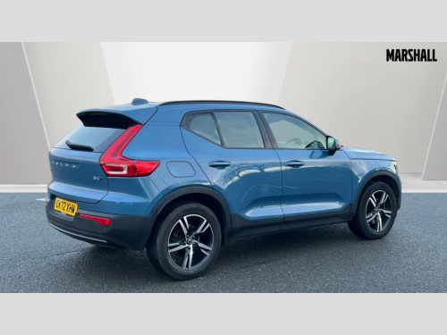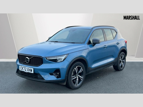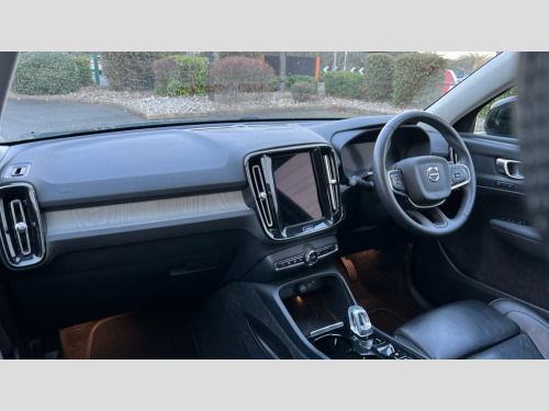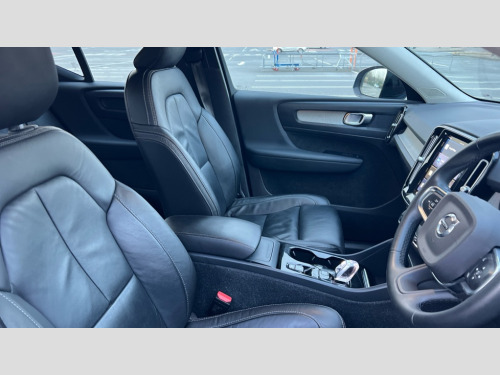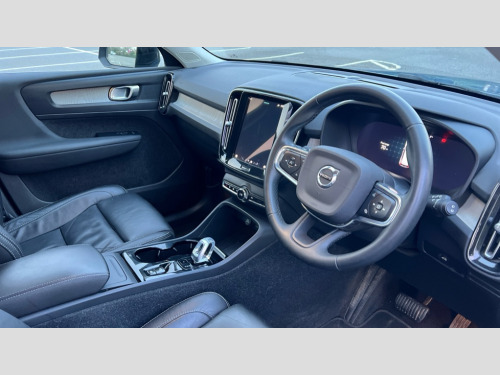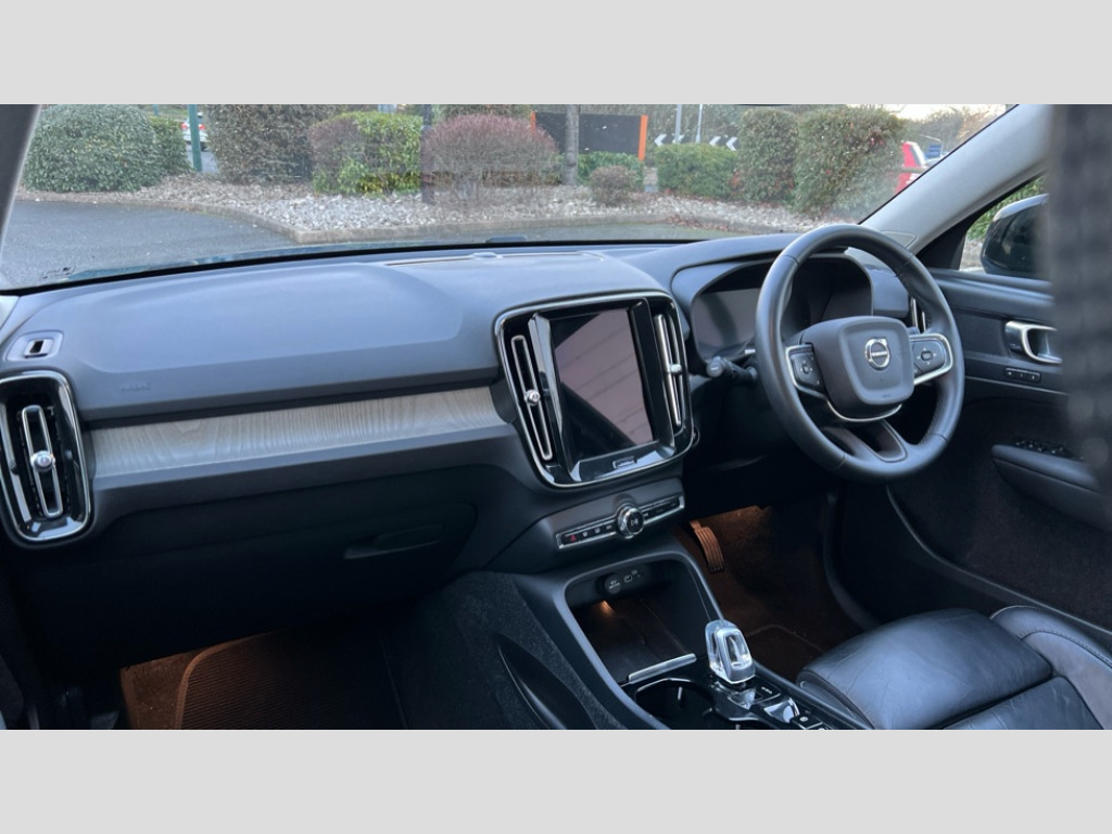 Volvo XC40 2.0 B4P Plus Dark 5dr AWD Auto 12.3" Progressive Driver Display, 9" centre console portrait touch screen, Adjustable steering wheel force, Bluetooth hands free telephone kit, E-call, eCall emergency call system, Front park assist, Google automatic services - Nav with google maps, apple carplay/android auto, voice recognition with google assistant, Hands free power tailgate, Lane keep assist with driver alert control, Oncoming Lane Mitigation, Rear park assist, Speed limiter, Speed sensitive steering, Wireless/Inductive Mobile Phone Charging, Dynamic chassis, DAB Digital radio, High performance sound, 8 speakers/250W, front USB and 2 rear type C USB, Steering wheel mounted remote controls, Adaptive brake lights with high level LED brake lights, Auto dimming interior mirror, Automatic headlamp levelling, Automatic LED Headlights + Active high beam incorporating daytime running lights, Front aluminium tread plates, Front and rear electric windows, High gloss black front and rear skid plate, High gloss black mesh front grille with high gloss black surround, High gloss black window trim, Home safe and approach lighting, Integrated roof rails in high gloss black, LED front fog lights, Puddle lights, Rain sensor with automatic windscreen wiper activation, Rear side wing doors, Rear wiper, Roof antenna, Roof spoiler, Visible VIN plate, 12V socket in front tunnel console and luggage compartment, 2-Zone electronic climate control with CleanZone air quality system and pollen filter, 3 seat bench in 2nd row, 3 Spoke tailored steering wheel with chrome trim, 60/40 versatile split folding rear seat, A-pillar parking ticket holder, Ambient front door and instrumental panel lighting, Centre console cupholders and storage, Flexible load floor and grocery bag holder, Floor mats, Front door pocket and front cupholder illumination, Front footwell illumination, Front headrests, Front reading light and theatre lighting, Front seat cushion extensions, Front tunnel pocket, Glovebox bag hook, Height adjustable passenger seat, Height/reach adjustable steering column, High gloss centre tunnel deco, Illuminated glovebox, Illuminated luggage compartment, Illuminated tailgate, Illuminated vanity mirrors, Integrated waste bin, Isofix attachments on outer rear seats, Load protection net, Multi directional lumbar support, Power driver seat with memory + exterior mirrors memory, Rear armrest / integral cup holders / storage tray, Rear headrests, Rear reading and courtesy lights, Single front passenger seat, Underfloor cargo storage, Climate pack - XC40, 3x3 point rear seatbelts, City safety with steering support with Pedestrian + cyclist + front collision warning with full auto brake and rear auto brake, Drivers knee airbag, Dual stage driver/passenger airbags, Electronic parking brake with auto hold, First aid kit, Front and outer rear seatbelt reminder and pretensioners, Front seats SIPS airbags, Hill descent control, Hill start assist, Inflatable curtain, Passenger airbag cut-off device, Power child locks on rear doors, Road sign information display, Run off Road Mitigation, Run off Road Protection, SIPS (Side Impact Protection System), Slippery road and hazard light alert, Stability and Traction Control with Spin control, Engine Drag Control and Corner Traction Control, Tyre pressure monitoring system, Vehicle deceleration control with Anti-lock Brake System, Electronic Brake Distribution and Emergency Brake Assist, Warning triangle, WHIPS whiplash protection system - front, Anti-theft alarm including immobiliser/volume sensor + level sensor, Care key with user defined top speed, Key integrated remote control central locking + fuel flap with deadlocking system and auto open/close power windows, Keyless drive includes keyless entry and keyless start, Locking wheel nuts, Private locking for tailgate