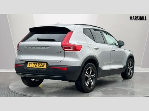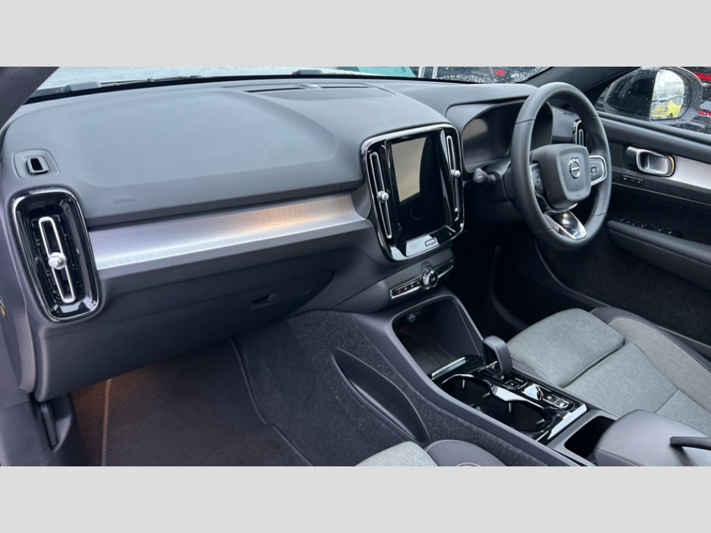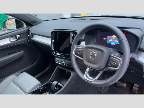 Volvo XC40 2.0 B4P Plus Dark 5dr AWD Auto 12.3" Progressive Driver Display, 9" centre console portrait touch screen, Adjustable steering wheel force, Bluetooth hands free telephone kit, E-call, eCall emergency call system, Front park assist, Google automatic services - Nav with google maps, apple carplay/android auto, voice recognition with google assistant, Hands free power tailgate, Lane keep assist with driver alert control, Oncoming Lane Mitigation, Rear park assist, Speed limiter, Speed sensitive steering, Wireless/Inductive Mobile Phone Charging, Dynamic chassis, DAB Digital radio, High performance sound, 8 speakers/250W, front USB and 2 rear type C USB, Steering wheel mounted remote controls, Adaptive brake lights with high level LED brake lights, Auto dimming interior mirror, Automatic headlamp levelling, Automatic LED Headlights + Active high beam incorporating daytime running lights, Front aluminium tread plates, Front and rear electric windows, High gloss black front and rear skid plate, High gloss black mesh front grille with high gloss black surround, High gloss black window trim, Home safe and approach lighting, Integrated roof rails in high gloss black, LED front fog lights, Puddle lights, Rain sensor with automatic windscreen wiper activation, Rear side wing doors, Rear wiper, Roof antenna, Roof spoiler, Visible VIN plate, 12V socket in front tunnel console and luggage compartment, 2-Zone electronic climate control with CleanZone air quality system and pollen filter, 3 seat bench in 2nd row, 3 Spoke tailored steering wheel with chrome trim, 60/40 versatile split folding rear seat, A-pillar parking ticket holder, Ambient front door and instrumental panel lighting, Centre console cupholders and storage, Flexible load floor and grocery bag holder, Floor mats, Front door pocket and front cupholder illumination, Front footwell illumination, Front headrests, Front reading light and theatre lighting, Front seat cushion extensions, Front tunnel pocket, Glovebox bag hook, Height adjustable passenger seat, Height/reach adjustable steering column, High gloss centre tunnel deco, Illuminated glovebox, Illuminated luggage compartment, Illuminated tailgate, Illuminated vanity mirrors, Integrated waste bin, Isofix attachments on outer rear seats, Load protection net, Multi directional lumbar support, Power driver seat with memory + exterior mirrors memory, Rear armrest / integral cup holders / storage tray, Rear headrests, Rear reading and courtesy lights, Single front passenger seat, Underfloor cargo storage, Climate pack - XC40, 3x3 point rear seatbelts, City safety with steering support with Pedestrian + cyclist + front collision warning with full auto brake and rear auto brake, Drivers knee airbag, Dual stage driver/passenger airbags, Electronic parking brake with auto hold, First aid kit, Front and outer rear seatbelt reminder and pretensioners, Front seats SIPS airbags, Hill descent control, Hill start assist, Inflatable curtain, Passenger airbag cut-off device, Power child locks on rear doors, Road sign information display, Run off Road Mitigation, Run off Road Protection, SIPS (Side Impact Protection System), Slippery road and hazard light alert, Stability and Traction Control with Spin control, Engine Drag Control and Corner Traction Control, Tyre pressure monitoring system, Vehicle deceleration control with Anti-lock Brake System, Electronic Brake Distribution and Emergency Brake Assist, Warning triangle, WHIPS whiplash protection system - front, Anti-theft alarm including immobiliser/volume sensor + level sensor, Care key with user defined top speed, Key integrated remote control central locking + fuel flap with deadlocking system and auto open/close power windows, Keyless drive includes keyless entry and keyless start, Locking wheel nuts, Private locking for tailgate