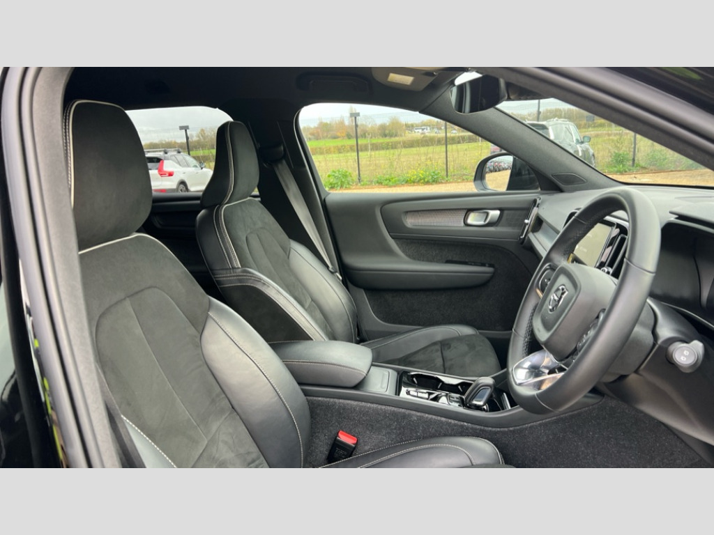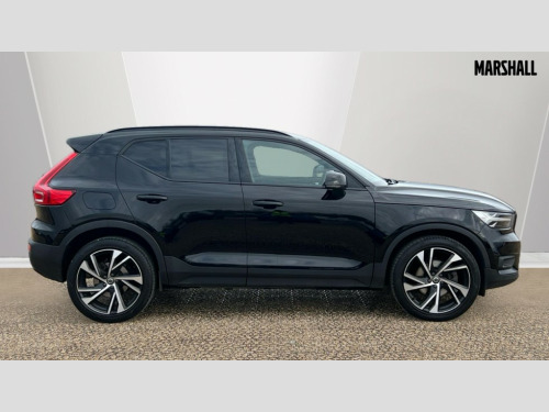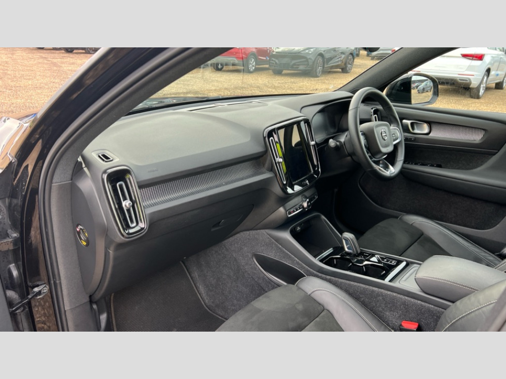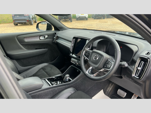 Volvo XC40 2.0 B4P R DESIGN Pro 5dr AWD Auto 12.3" Active TFT crystal driver's instrument display, 9" centre console portrait touch screen, Adjustable steering wheel force, Bluetooth hands free telephone kit, Drive mode selector, E-call, Lane keep assist with driver alert control, Oncoming Lane Mitigation, Power operated tailgate, Sensus navigation with European mapping and traffic information, Speed limiter, Speed sensitive steering, Voice activated control for key functions, Volvo on call, Sports chassis, DAB Digital radio, Steering wheel mounted remote controls, Adaptive brake lights with high level LED brake lights, Auto dimming interior mirror, Automatic headlamp levelling, Dark tinted windows for rear door side windows and cargo compartment, Dual integrated exhaust pipes with high gloss black surround, Electric adjustable/heated/auto folding door mirrors, Front aluminium tread plates, Front and rear electric windows, Heated front windscreen, High gloss black front and rear skid plate, High gloss black lower front bumper, High gloss black mesh front grille with high gloss black surround, High gloss black sensus surround deco, High gloss black window trim, Home safe and approach lighting, Integrated roof rails in high gloss black, LED Headlights + Active high beam incorporating daytime running lights, Rain sensor with automatic windscreen wiper activation, Rear side wing doors, Rear wiper, Roof antenna, Roof spoiler, Visible VIN plate, 12V socket in front tunnel console and luggage compartment, 2 zone electronic climate control and rear air vent, 3 seat bench in 2nd row, 60/40 versatile split folding rear seat, A-pillar parking ticket holder, Bright metal luggage threshold, Centre console cupholders and storage, Charcoal headlining, Front footwell illumination, Front headrests, Front reading light and theatre lighting, Front seat cushion extensions, Front tunnel net pocket and integrated waste bin, Glovebox bag hook, Heated front seats, Height/reach adjustable steering column, Height/tilt adjustable driver's seat, High gloss centre tunnel deco, Illuminated glovebox, Illuminated luggage compartment, Illuminated vanity mirrors, Isofix attachments on outer rear seats, Leather gearknob, Load protection net, Multi directional lumbar support, Power driver seat with memory + exterior mirrors memory, Rear armrest / integral cup holders / storage tray, Rear coat hook, Single front passenger seat, Sports floor mats, Sports pedals, Sports tailored steering wheel, Underfloor cargo storage, Vanity mirror with ticket holder, Lighting pack - XC40, 3x3 point rear seatbelts, City safety includes pedestrian, cyclist and large animal detection and front collision warning with full auto brake, Drivers knee airbag, Dual stage driver/passenger airbags, Electronic parking brake with auto hold, First aid kit, Front and outer rear seatbelt reminder and pretensioners, Front seats SIPS airbags, Hill descent control, Hill start assist, Inflatable curtain, Passenger airbag cut-off device, Road sign information display, Run off Road Mitigation, Run off Road Protection, SIPS (Side Impact Protection System), Slippery road and hazard light alert, Stability and Traction Control with Spin control, Engine Drag Control and Corner Traction Control, Tyre pressure monitoring system, Vehicle deceleration control with Anti-lock Brake System, Electronic Brake Distribution and Emergency Brake Assist, Warning triangle, WHIPS whiplash protection system - front, Anti-theft alarm including immobiliser/volume sensor + level sensor, Care key with user defined top speed, Key integrated remote control central locking + fuel flap with deadlocking system and auto open/close power windows, Locking wheel nuts, Private locking for tailgate, Cutting edge aluminium inlay, Lower dashboard, tunnel console and door panel in charcoal
