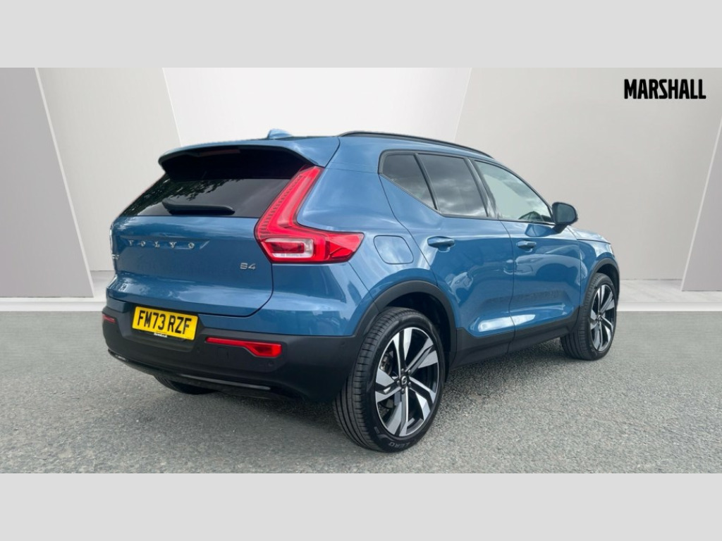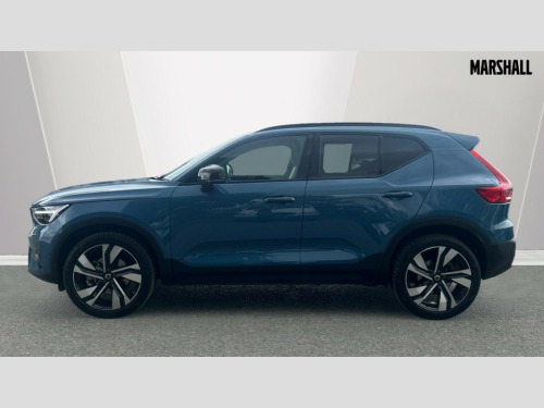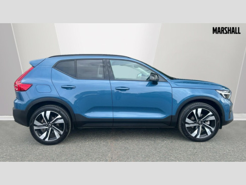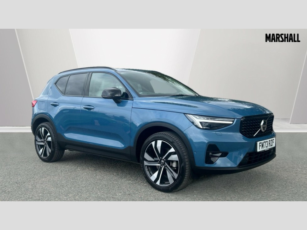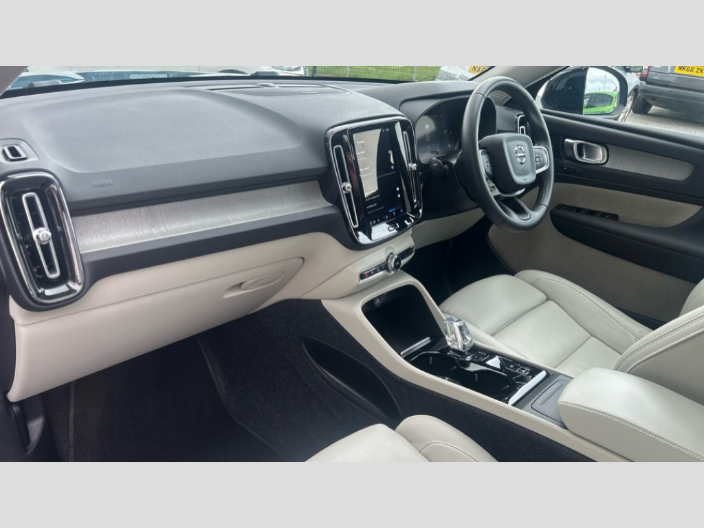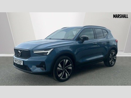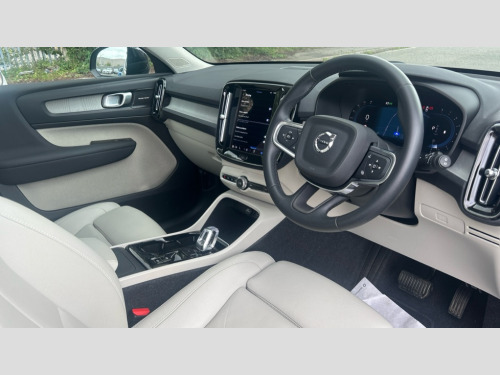 Volvo XC40 2.0 B4P Ultimate Dark 5dr Auto 12.3" Progressive Driver Display, 360 degree surround view parking camera with side proximity sensors, 9" centre console portrait touch screen, Adjustable steering wheel force, Bluetooth hands free telephone kit, E-call, Front park assist, Google automatic services - Nav with google maps, apple carplay/android auto, voice recognition with google assistant, Hands free power tailgate, Intelligent speed assistance, Lane keep assist with driver alert control, Oncoming Lane Mitigation, Rear park assist, Speed sensitive steering, Wireless/Inductive Mobile Phone Charging, Dynamic chassis, DAB Digital radio, Premium Sound by Harman Kardon, Dolby Pro Logic II Surround Sound, Dirac Unison,12 speakers/600W and subwoofer, Steering wheel mounted remote controls, Active bending pixel LED headlights with adaptive shadow technology, Active high beam incorporating daytime running lights, Adaptive brake lights with high level LED brake lights, Auto dimming interior mirror, Automatic headlamp levelling, Dark tinted windows for rear door side windows and cargo compartment, Front aluminium tread plates, Front and rear electric windows, Headlight cleaning system, High gloss black front and rear skid plate, High gloss black mesh front grille with high gloss black surround, High gloss black window trim, Home safe and approach lighting, Integrated roof rails in high gloss black, LED front fog lights, Power glass tilt and slide panoramic sunroof with sun curtain, Puddle lights, Rain sensor with automatic windscreen wiper activation, Rear side wing doors, Rear wiper, Roof antenna, Roof spoiler, Visible VIN plate, 12V socket in front tunnel console and luggage compartment, 2-Zone electronic climate control with CleanZone air quality system and pollen filter, 3 seat bench in 2nd row, 3 Spoke tailored steering wheel with chrome trim, 60/40 versatile split folding rear seat, A-pillar parking ticket holder, Centre console cupholders and storage, Flexible load floor and grocery bag holder, Floor mats, Front door pocket, front cupholder, ambient front door, rear reading, rear courtesy, instrument panel and tailgate lighting, Front footwell illumination, Front headrests, Front reading light and theatre lighting, Front seat cushion extensions, Front tunnel pocket, Glovebox bag hook, Heated front seats, Height adjustable passenger seat, Height/reach adjustable steering column, High gloss centre tunnel deco, Illuminated glovebox, Illuminated luggage compartment, Illuminated vanity mirrors, Integrated waste bin, Isofix attachments on outer rear seats, Load protection net, Multi directional lumbar support, Power driver seat with memory + exterior mirrors memory, Power folding rear headrests, Power passenger seat, Rear armrest / integral cup holders / storage tray, Single front passenger seat, Underfloor cargo storage, Climate pack without heated front seats - XC40, Driver assist pack - XC40, 3x3 point rear seatbelts, City safety with steering support with Pedestrian + cyclist + front collision warning with full auto brake and rear auto brake, Drivers knee airbag, Dual stage driver/passenger airbags, Electronic parking brake with auto hold, First aid kit, Front and outer rear seatbelt reminder and pretensioners, Front seats SIPS airbags, Hill descent control, Hill start assist, Inflatable curtain, Passenger airbag cut-off device, Power child locks on rear doors, Road sign information display, Run off Road Mitigation, Run off Road Protection, SIPS (Side Impact Protection System), Slippery road and hazard light alert, Stability and Traction Control with Spin control, Engine Drag Control and Corner Traction Control, Tyre pressure monitoring system, Vehicle deceleration control with Anti-lock Brake System, Electronic Brake Distribution and Emergency Brake Assist, Warning triangle, WHIPS whiplash protection system - front, Anti-theft alarm including immobiliser/volume sensor + level sensor, Key integrated remote control central locking + fuel flap with deadlocking system and auto open/close power windows, Keyless drive includes keyless entry and keyless start, Locking wheel nuts