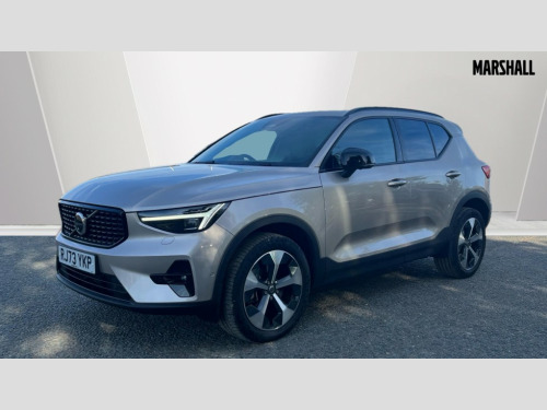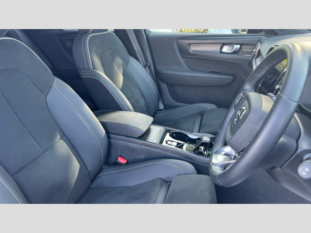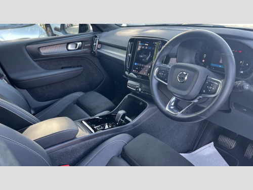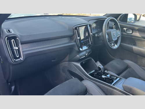 Volvo XC40 2.0 B4P Ultimate Dark 5dr Auto 12.3" Progressive Driver Display, 360 degree surround view parking camera with side proximity sensors, 9" centre console portrait touch screen, Adjustable steering wheel force, Bluetooth hands free telephone kit, E-call, Front park assist, Google automatic services - Nav with google maps, apple carplay/android auto, voice recognition with google assistant, Hands free power tailgate, Intelligent speed assistance, Lane keep assist with driver alert control, Oncoming Lane Mitigation, Rear park assist, Speed sensitive steering, Wireless/Inductive Mobile Phone Charging, Dynamic chassis, DAB Digital radio, Premium Sound by Harman Kardon, Dolby Pro Logic II Surround Sound, Dirac Unison,12 speakers/600W and subwoofer, Steering wheel mounted remote controls, Active bending pixel LED headlights with adaptive shadow technology, Active high beam incorporating daytime running lights, Adaptive brake lights with high level LED brake lights, Auto dimming interior mirror, Automatic headlamp levelling, Dark tinted windows for rear door side windows and cargo compartment, Front aluminium tread plates, Front and rear electric windows, Headlight cleaning system, High gloss black front and rear skid plate, High gloss black mesh front grille with high gloss black surround, High gloss black window trim, Home safe and approach lighting, Integrated roof rails in high gloss black, LED front fog lights, Power glass tilt and slide panoramic sunroof with sun curtain, Puddle lights, Rain sensor with automatic windscreen wiper activation, Rear side wing doors, Rear wiper, Roof antenna, Roof spoiler, Visible VIN plate, 12V socket in front tunnel console and luggage compartment, 2-Zone electronic climate control with CleanZone air quality system and pollen filter, 3 seat bench in 2nd row, 3 Spoke tailored steering wheel with chrome trim, 60/40 versatile split folding rear seat, A-pillar parking ticket holder, Centre console cupholders and storage, Flexible load floor and grocery bag holder, Floor mats, Front door pocket, front cupholder, ambient front door, rear reading, rear courtesy, instrument panel and tailgate lighting, Front footwell illumination, Front headrests, Front reading light and theatre lighting, Front seat cushion extensions, Front tunnel pocket, Glovebox bag hook, Heated front seats, Height adjustable passenger seat, Height/reach adjustable steering column, High gloss centre tunnel deco, Illuminated glovebox, Illuminated luggage compartment, Illuminated vanity mirrors, Integrated waste bin, Isofix attachments on outer rear seats, Load protection net, Multi directional lumbar support, Power driver seat with memory + exterior mirrors memory, Power folding rear headrests, Power passenger seat, Rear armrest / integral cup holders / storage tray, Single front passenger seat, Underfloor cargo storage, Climate pack without heated front seats - XC40, Driver assist pack - XC40, 3x3 point rear seatbelts, City safety with steering support with Pedestrian + cyclist + front collision warning with full auto brake and rear auto brake, Drivers knee airbag, Dual stage driver/passenger airbags, Electronic parking brake with auto hold, First aid kit, Front and outer rear seatbelt reminder and pretensioners, Front seats SIPS airbags, Hill descent control, Hill start assist, Inflatable curtain, Passenger airbag cut-off device, Power child locks on rear doors, Road sign information display, Run off Road Mitigation, Run off Road Protection, SIPS (Side Impact Protection System), Slippery road and hazard light alert, Stability and Traction Control with Spin control, Engine Drag Control and Corner Traction Control, Tyre pressure monitoring system, Vehicle deceleration control with Anti-lock Brake System, Electronic Brake Distribution and Emergency Brake Assist, Warning triangle, WHIPS whiplash protection system - front, Anti-theft alarm including immobiliser/volume sensor + level sensor, Key integrated remote control central locking + fuel flap with deadlocking system and auto open/close power windows, Keyless drive includes keyless entry and keyless start, Locking wheel nuts
