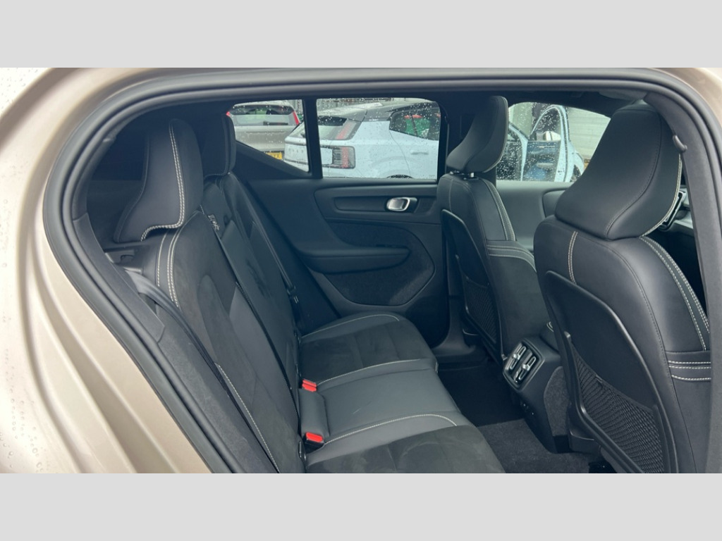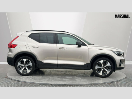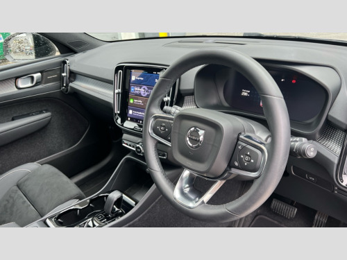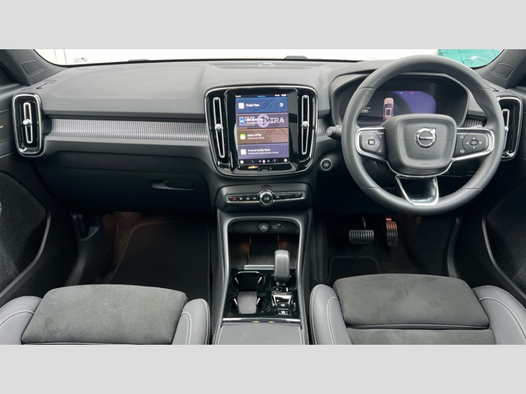 Volvo XC40 2.0 B4P Ultimate Dark 5dr Auto 12.3" Progressive Driver Display, 360 degree surround view parking camera with side proximity sensors, 9" centre console portrait touch screen, Adjustable steering wheel force, Bluetooth hands free telephone kit, E-call, Front park assist, Google automatic services - Nav with google maps, apple carplay/android auto, voice recognition with google assistant, Hands free power tailgate, Lane keep assist with driver alert control, Oncoming Lane Mitigation, Rear park assist, Speed limiter, Speed sensitive steering, Wireless/Inductive Mobile Phone Charging, Dynamic chassis, DAB Digital radio, Premium Sound by Harman Kardon, Dolby Pro Logic II Surround Sound, Dirac Unison,12 speakers/600W and subwoofer, Steering wheel mounted remote controls, Active bending pixel LED headlights with adaptive shadow technology, Active high beam incorporating daytime running lights, Adaptive brake lights with high level LED brake lights, Auto dimming interior mirror, Automatic headlamp levelling, Dark tinted windows for rear door side windows and cargo compartment, Front aluminium tread plates, Front and rear electric windows, Headlight cleaning system, High gloss black front and rear skid plate, High gloss black mesh front grille with high gloss black surround, High gloss black window trim, Home safe and approach lighting, Integrated roof rails in high gloss black, LED front fog lights, Power glass tilt and slide panoramic sunroof with sun curtain, Puddle lights, Rain sensor with automatic windscreen wiper activation, Rear side wing doors, Rear wiper, Roof antenna, Roof spoiler, Visible VIN plate, 12V socket in front tunnel console and luggage compartment, 2-Zone electronic climate control with CleanZone air quality system and pollen filter, 3 seat bench in 2nd row, 3 Spoke tailored steering wheel with chrome trim, 60/40 versatile split folding rear seat, A-pillar parking ticket holder, Ambient front door and instrumental panel lighting, Centre console cupholders and storage, Flexible load floor and grocery bag holder, Floor mats, Front door pocket and front cupholder illumination, Front footwell illumination, Front headrests, Front reading light and theatre lighting, Front seat cushion extensions, Front tunnel pocket, Glovebox bag hook, Heated front seats, Height adjustable passenger seat, Height/reach adjustable steering column, High gloss centre tunnel deco, Illuminated glovebox, Illuminated luggage compartment, Illuminated tailgate, Illuminated vanity mirrors, Integrated waste bin, Isofix attachments on outer rear seats, Load protection net, Multi directional lumbar support, Power driver seat with memory + exterior mirrors memory, Power folding rear headrests, Power passenger seat, Rear armrest / integral cup holders / storage tray, Rear reading and courtesy lights, Single front passenger seat, Underfloor cargo storage, Climate pack without heated front seats - XC40, Driver assist pack - XC40, 3x3 point rear seatbelts, City safety with steering support with Pedestrian + cyclist + front collision warning with full auto brake and rear auto brake, Drivers knee airbag, Dual stage driver/passenger airbags, Electronic parking brake with auto hold, First aid kit, Front and outer rear seatbelt reminder and pretensioners, Front seats SIPS airbags, Hill descent control, Hill start assist, Inflatable curtain, Passenger airbag cut-off device, Power child locks on rear doors, Road sign information display, Run off Road Mitigation, Run off Road Protection, SIPS (Side Impact Protection System), Slippery road and hazard light alert, Stability and Traction Control with Spin control, Engine Drag Control and Corner Traction Control, Tyre pressure monitoring system, Vehicle deceleration control with Anti-lock Brake System, Electronic Brake Distribution and Emergency Brake Assist, Warning triangle, WHIPS whiplash protection system - front, Anti-theft alarm including immobiliser/volume sensor + level sensor, Key integrated remote control central locking + fuel flap with deadlocking system and auto open/close power windows, Keyless drive includes keyless entry and keyless start, Locking wheel nuts