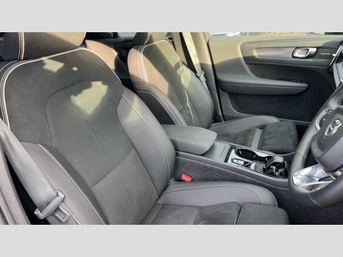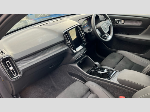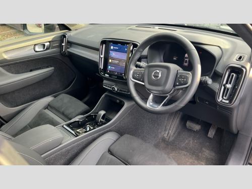 Volvo XC40 2.0 B4P Ultra Black Edition 5dr Auto 12.3" Progressive Driver Display, 360 degree surround view parking camera with side proximity sensors, 9" centre console portrait touch screen, Adjustable steering wheel force, Android auto (Wired), Apple carplay (wired), Bluetooth handsfree system, Driver alert control, Driver assistance (pilot assist and adaptive cruise control), Driver awareness - Blind spot information system with steer assist, cross traffic alert with autobrake and rear collision warning and mitigation, E-call, Front park assist, Google automotive services - Enabled entertainment apps, navigation with google maps, voice recognition with google assistant, Hands free power tailgate, Intelligent speed assistance, Lane keeping aid, Oncoming Lane Mitigation, Rear park assist, Speed sensitive steering, Volvo cars services with app - Driving journal, emergency and breakdown call, engine remote start, remote door locking/unlocking and vehicle dashboard, Wireless/Inductive Mobile Phone Charging, Automatic transmission with start/stop and manual change functions, Dynamic chassis, DAB Digital radio, Premium Sound by Harman Kardon, Dolby Pro Logic II Surround Sound, Dirac Unison,12 speakers/600W and subwoofer, Steering wheel mounted remote controls, Active bending pixel LED headlights with adaptive shadow technology, Active high beam incorporating daytime running lights, Adaptive brake lights with high level LED brake lights, Auto dimming feature for exterior door mirrors, Auto dimming interior mirror, Automatic headlamp levelling, Colour coordinated auto folding and heated power door mirrors, Dark tinted windows - rear side windows and rear screen, Front aluminium tread plates, Front and rear electric windows, Headlight cleaning system, High gloss black front and rear skid plate, High gloss black front bumper deco, High gloss black front grille strikethrough and ironmark, High gloss black rear model, engine and volvo logo badges, High gloss black window trim, Home safe and approach lighting, Integrated roof rails in high gloss black, LED front fog lights with cornering function, Power glass tilt and slide panoramic sunroof with sun curtain, Puddle lights, Rain sensor with automatic windscreen wiper activation, Rear side wing doors, Rear wiper, Roof antenna, Roof spoiler, Visible VIN plate, 12V socket in front tunnel console and luggage compartment, 2-Zone electronic climate control with CleanZone air quality system and pollen filter, 3 seat bench in 2nd row, 3 Spoke tailored steering wheel with chrome trim, 60/40 versatile split folding rear seat, Centre console cupholders and storage, Charcoal headlining, Connect textile/microtech upholstery, Flexible load floor and grocery bag holder, Floor mats, Front cabin courtesy lights, Front door pocket, front cupholder, ambient front door, rear reading, rear courtesy, instrument panel and tailgate lighting, Front footwell illumination, Front headrests, Front reading lights, Front seat cushion extensions, Front side step illumination (under door), Glovebox bag hook, Heated front seats, Height/reach adjustable steering column, High gloss centre tunnel deco, Illuminated glovebox, Illuminated luggage compartment, Illuminated vanity mirrors + ticket holder, Integrated waste bin, Isofix attachments on outer rear seats, Load cover, Load protection net, Multi directional lumbar support for driver and passenger seat, Power driver seat with memory + exterior mirrors memory, Power folding rear headrests, Power passenger seat, Rear armrest with cupholders, Single front passenger seat, Underfloor cargo storage, Climate pack without heated front seats - XC40, 3x3 point rear seatbelts, City safety with steering support with Pedestrian + cyclist + front collision warning with full auto brake and rear auto brake, Driver and passenger airbags, Drivers knee airbag, Electronic parking brake with auto hold, First aid kit, Front and outer rear seatbelt reminder and pretensioners, Front seats SIPS airbags, Hill descent control, Hill start assist, Inflatable curtain, Passenger airbag cut-off device, Power child locks on rear doors, Road sign information display, Run off Road Protection, SIPS (Side Impact Protection System), Slippery road and hazard light alert, Stability and Traction Control with Spin control, Engine Drag Control and Corner Traction Control, Tyre pressure monitoring system, Vehicle deceleration control with Anti-lock Brake System, Electronic Brake Distribution and Emergency Brake Assist, Warning triangle, WHIPS whiplash protection system - front, 2 x Key integrated remote control central locking including with deadlocking system and auto open/close windows and sunroof, Anti-theft alarm including immobiliser/volume sensor + level sensor, Keyless drive includes keyless entry and keyless start, Locking wheel nuts