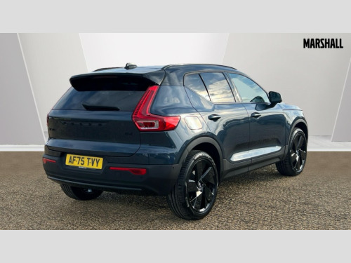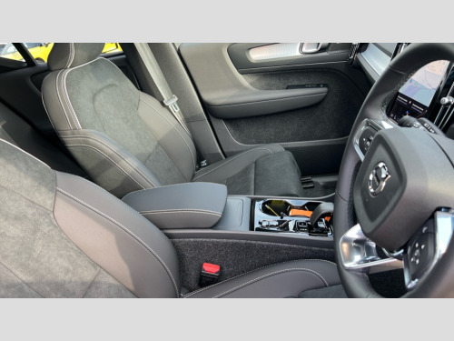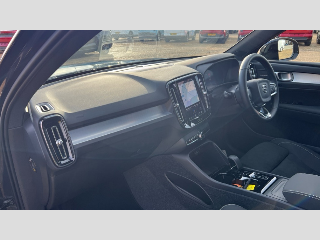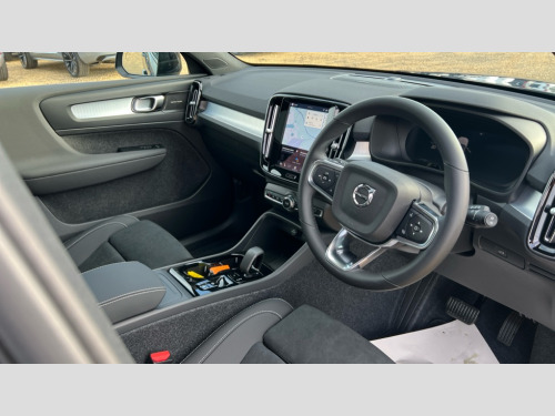 Volvo XC40 2.0 B4P Ultra Black Edition 5dr Auto 12.3" Progressive Driver Display, 360 degree surround view parking camera with side proximity sensors, 9" centre console portrait touch screen, Adjustable steering wheel force, Android auto (Wired), Apple carplay (wired), Bluetooth handsfree system, Driver alert control, Driver assistance (pilot assist and adaptive cruise control), Driver awareness - Blind spot information system with steer assist, cross traffic alert with autobrake and rear collision warning and mitigation, E-call, Front and rear parking sensors, Front park assist, Google automotive services - Enabled entertainment apps, navigation with google maps, voice recognition with google assistant, Hands free power tailgate, Intelligent speed assistance, Lane keeping aid, Oncoming Lane Mitigation, Speed sensitive steering, Volvo cars services with app - Driving journal, emergency and breakdown call, engine remote start, remote door locking/unlocking and vehicle dashboard, Wireless/Inductive Mobile Phone Charging, Automatic transmission with start/stop and manual change functions, Dynamic chassis, DAB Digital radio, Premium Sound by Harman Kardon, Dolby Pro Logic II Surround Sound, Dirac Unison,12 speakers/600W and subwoofer, Steering wheel mounted remote controls, Active bending pixel LED headlights with adaptive shadow technology, Active high beam incorporating daytime running lights, Adaptive brake lights with high level LED brake lights, Auto dimming feature for exterior door mirrors, Auto dimming interior mirror, Auto folding and heated power door mirrors, Automatic headlamp levelling, Dark tinted windows - rear side windows and rear screen, Front aluminium tread plates, Front and rear electric windows, Headlight cleaning system, High gloss black front and rear skid plate, High gloss black front bumper deco, High gloss black front grille strikethrough and ironmark, High gloss black rear model, engine and volvo logo badges, High gloss black window trim, Home safe and approach lighting, Integrated roof rails in high gloss black, LED front fog lights with cornering function, Power glass tilt and slide panoramic sunroof with sun curtain, Puddle lights, Rain sensor with automatic windscreen wiper activation, Rear side wing doors, Rear wiper, Roof antenna, Roof spoiler, Visible VIN plate, 12V socket in front tunnel console and luggage compartment, 2-Zone electronic climate control with CleanZone air quality system and pollen filter, 3 seat bench in 2nd row, 3 Spoke tailored steering wheel with chrome trim, 60/40 versatile split folding rear seat, Centre console cupholders and storage, Charcoal carpet and floor mats, Charcoal headlining, Connect suede textile/microtech upholstery, Flexible load floor and grocery bag holder, Front headrests, Front seat cushion extensions, Glovebox bag hook, Heated front seats, Height/reach adjustable steering column, High gloss centre tunnel deco, High level illumination - Front door pocket, front side step (under door), tailgate, instrument panel, front door inlay, rear courtesy&reading lights, Integrated waste bin, Isofix attachments on outer rear seats, Load cover, Load protection net, Mid level illumination - Front footwell, luggage & glovebox compartment,front cabin courtesy & reading lights,illuminated vanity mirrors+ticket holder, Multi directional lumbar support for driver and passenger seat, Power driver seat with memory + exterior mirrors memory, Power folding rear headrests, Power passenger seat, Rear armrest with cupholders, Single front passenger seat, Underfloor luggage compartment storage, Climate pack without heated front seats - XC40, 3x3 point rear seatbelts, City safety with steering support with Pedestrian + cyclist + front collision warning with full auto brake and rear auto brake, Driver and passenger airbags, Drivers knee airbag, Electronic parking brake with auto hold, First aid kit, Front and outer rear seatbelt reminder and pretensioners, Front seats SIPS airbags, Hill descent control - Off-road drive mode, Hill start assist, IC (Inflatable Curtains) - Full Length, Passenger airbag cut-off device, Power child locks on rear doors, Road sign information display, Run off Road Protection, SIPS (Side Impact Protection System), Slippery road and hazard light alert, Stability and Traction Control with Spin control, Engine Drag Control and Corner Traction Control, Tyre pressure monitoring system, Vehicle deceleration control with Anti-lock Brake System, Electronic Brake Distribution and Emergency Brake Assist, Warning triangle, WHIPS whiplash protection system - front, 2 x Key integrated remote control central locking including with deadlocking system and auto open/close windows and sunroof, Anti-theft alarm including immobiliser/volume sensor + level sensor, Keyless drive includes keyless entry and keyless start, Locking wheel nuts