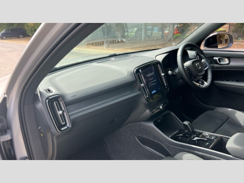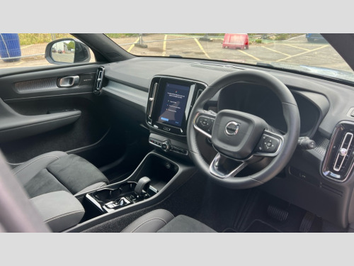 Volvo XC40 2.0 B4P Ultra Dark 5dr Auto 12.3" Progressive Driver Display, 360 degree surround view parking camera with side proximity sensors, 9" centre console portrait touch screen, Adjustable steering wheel force, Android auto (Wired), Apple carplay (wired), Bluetooth handsfree system, Driver alert control, Driver assistance (pilot assist and adaptive cruise control), Driver awareness - Blind spot information system with steer assist, cross traffic alert with autobrake and rear collision warning and mitigation, E-call, Front park assist, Google automotive services - Enabled entertainment apps, navigation with google maps, voice recognition with google assistant, Hands free power tailgate, Intelligent speed assistance, Lane keeping aid, Oncoming Lane Mitigation, Rear park assist, Speed sensitive steering, Volvo cars services with app - Driving journal, emergency and breakdown call, engine remote start, remote door locking/unlocking and vehicle dashboard, Wireless/Inductive Mobile Phone Charging, Automatic transmission with start/stop and manual change functions, Dynamic chassis, DAB Digital radio, Premium Sound by Harman Kardon, Dolby Pro Logic II Surround Sound, Dirac Unison,12 speakers/600W and subwoofer, Steering wheel mounted remote controls, Active bending pixel LED headlights with adaptive shadow technology, Active high beam incorporating daytime running lights, Adaptive brake lights with high level LED brake lights, Auto dimming feature for exterior door mirrors, Auto dimming interior mirror, Automatic headlamp levelling, Dark tinted windows - rear side windows and rear screen, Front aluminium tread plates, Front and rear electric windows, Headlight cleaning system, High gloss black front and rear skid plate, High gloss black front bumper deco, High gloss black mesh front grille with high gloss black surround, High gloss black window trim, Home safe and approach lighting, Integrated roof rails in high gloss black, LED front fog lights with cornering function, Power glass tilt and slide panoramic sunroof with sun curtain, Puddle lights, Rain sensor with automatic windscreen wiper activation, Rear side wing doors, Rear wiper, Roof antenna, Roof spoiler, Visible VIN plate, 12V socket in front tunnel console and luggage compartment, 2-Zone electronic climate control with CleanZone air quality system and pollen filter, 3 seat bench in 2nd row, 3 Spoke tailored steering wheel with chrome trim, 60/40 versatile split folding rear seat, Centre console cupholders and storage, Flexible load floor and grocery bag holder, Floor mats, Front cabin courtesy lights, Front door pocket, front cupholder, ambient front door, rear reading, rear courtesy, instrument panel and tailgate lighting, Front footwell illumination, Front headrests, Front reading lights, Front seat cushion extensions, Front side step illumination (under door), Glovebox bag hook, Heated front seats, Height/reach adjustable steering column, High gloss centre tunnel deco, Illuminated glovebox, Illuminated luggage compartment, Illuminated vanity mirrors + ticket holder, Integrated waste bin, Isofix attachments on outer rear seats, Load cover, Load protection net, Multi directional lumbar support for driver and passenger seat, Power driver seat with memory + exterior mirrors memory, Power folding rear headrests, Power passenger seat, Rear armrest with cupholders, Single front passenger seat, Underfloor cargo storage, Climate pack without heated front seats - XC40, 3x3 point rear seatbelts, City safety with steering support with Pedestrian + cyclist + front collision warning with full auto brake and rear auto brake, Driver and passenger airbags, Drivers knee airbag, Electronic parking brake with auto hold, First aid kit, Front and outer rear seatbelt reminder and pretensioners, Front seats SIPS airbags, Hill descent control, Hill start assist, Inflatable curtain, Passenger airbag cut-off device, Power child locks on rear doors, Road sign information display, Run off Road Protection, SIPS (Side Impact Protection System), Slippery road and hazard light alert, Stability and Traction Control with Spin control, Engine Drag Control and Corner Traction Control, Tyre pressure monitoring system, Vehicle deceleration control with Anti-lock Brake System, Electronic Brake Distribution and Emergency Brake Assist, Warning triangle, WHIPS whiplash protection system - front, 2 x Key integrated remote control central locking including with deadlocking system and auto open/close windows and sunroof, Anti-theft alarm including immobiliser/volume sensor + level sensor, Keyless drive includes keyless entry and keyless start, Locking wheel nuts