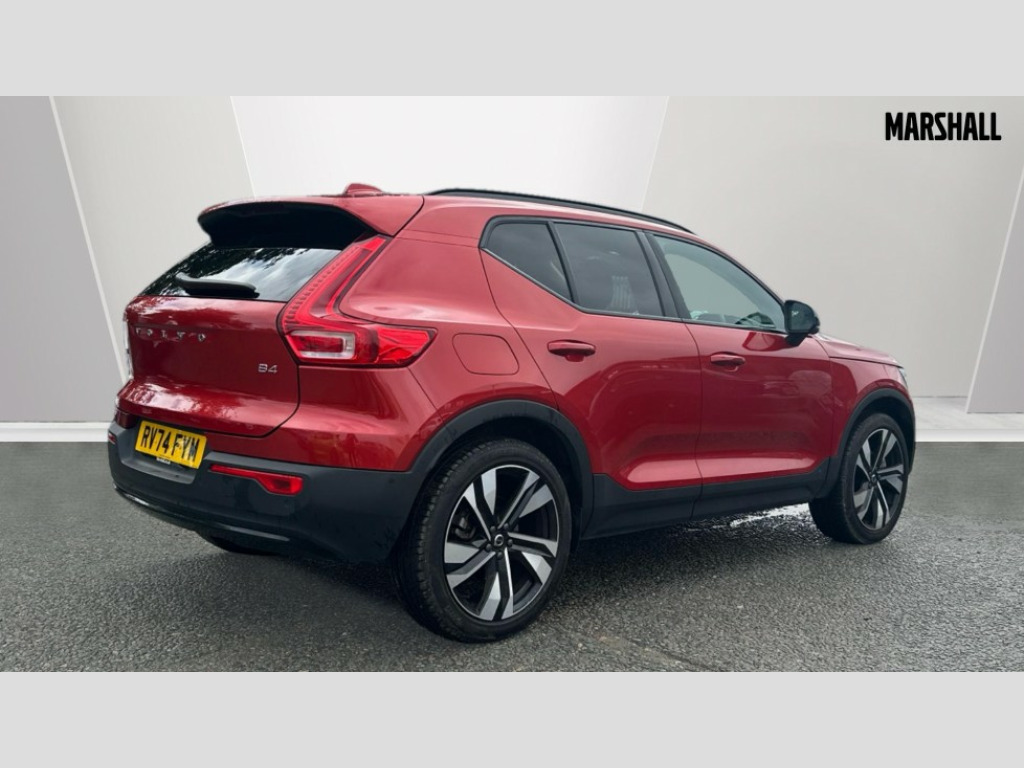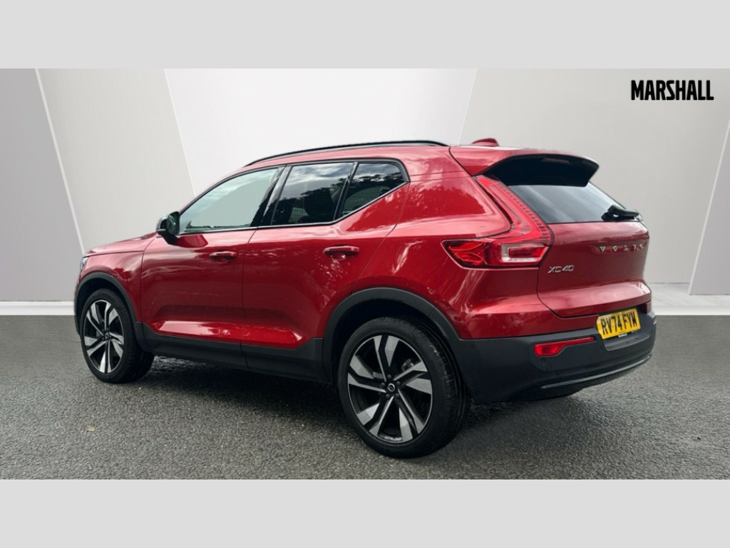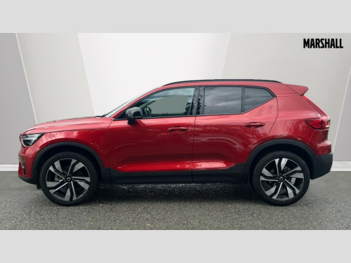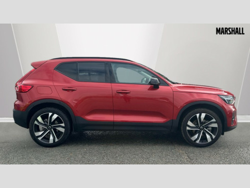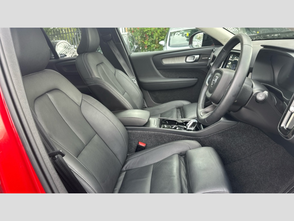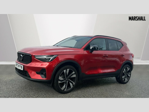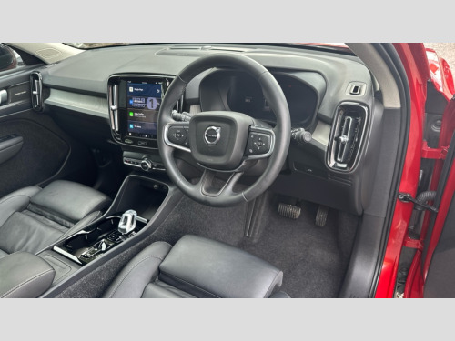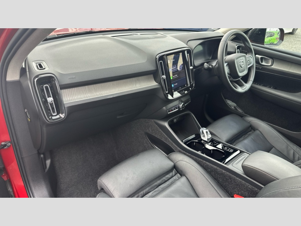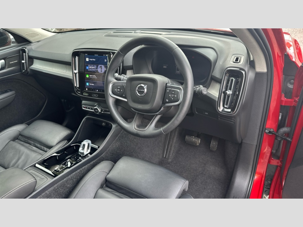 Volvo XC40 2.0 B4P Ultra Dark 5dr Auto 12.3" Progressive Driver Display, 360 degree surround view parking camera with side proximity sensors, 9" centre console portrait touch screen, Adjustable steering wheel force, Android auto (Wired), Apple carplay (wired), Bluetooth handsfree system, Driver alert control, Driver assistance (pilot assist and adaptive cruise control), Driver awareness - Blind spot information system with steer assist, cross traffic alert with autobrake and rear collision warning and mitigation, E-call, Front park assist, Google automotive services - Enabled entertainment apps, navigation with google maps, voice recognition with google assistant, Hands free power tailgate, Intelligent speed assistance, Lane keeping aid, Oncoming Lane Mitigation, Rear park assist, Speed sensitive steering, Volvo cars services with app - Driving journal, emergency and breakdown call, engine remote start, remote door locking/unlocking and vehicle dashboard, Wireless/Inductive Mobile Phone Charging, Automatic transmission with start/stop and manual change functions, Dynamic chassis, DAB Digital radio, Premium Sound by Harman Kardon, Dolby Pro Logic II Surround Sound, Dirac Unison,12 speakers/600W and subwoofer, Steering wheel mounted remote controls, Active bending pixel LED headlights with adaptive shadow technology, Active high beam incorporating daytime running lights, Adaptive brake lights with high level LED brake lights, Auto dimming feature for exterior door mirrors, Auto dimming interior mirror, Automatic headlamp levelling, Dark tinted windows - rear side windows and rear screen, Front aluminium tread plates, Front and rear electric windows, Headlight cleaning system, High gloss black front and rear skid plate, High gloss black front bumper deco, High gloss black mesh front grille with high gloss black surround, High gloss black window trim, Home safe and approach lighting, Integrated roof rails in high gloss black, LED front fog lights with cornering function, Power glass tilt and slide panoramic sunroof with sun curtain, Puddle lights, Rain sensor with automatic windscreen wiper activation, Rear side wing doors, Rear wiper, Roof antenna, Roof spoiler, Visible VIN plate, 12V socket in front tunnel console and luggage compartment, 2-Zone electronic climate control with CleanZone air quality system and pollen filter, 3 seat bench in 2nd row, 3 Spoke tailored steering wheel with chrome trim, 60/40 versatile split folding rear seat, Centre console cupholders and storage, Flexible load floor and grocery bag holder, Floor mats, Front cabin courtesy lights, Front door pocket, front cupholder, ambient front door, rear reading, rear courtesy, instrument panel and tailgate lighting, Front footwell illumination, Front headrests, Front reading lights, Front seat cushion extensions, Front side step illumination (under door), Glovebox bag hook, Heated front seats, Height/reach adjustable steering column, High gloss centre tunnel deco, Illuminated glovebox, Illuminated luggage compartment, Illuminated vanity mirrors + ticket holder, Integrated waste bin, Isofix attachments on outer rear seats, Load cover, Load protection net, Multi directional lumbar support for driver and passenger seat, Power driver seat with memory + exterior mirrors memory, Power folding rear headrests, Power passenger seat, Rear armrest with cupholders, Single front passenger seat, Underfloor cargo storage, Climate pack without heated front seats - XC40, 3x3 point rear seatbelts, City safety with steering support with Pedestrian + cyclist + front collision warning with full auto brake and rear auto brake, Driver and passenger airbags, Drivers knee airbag, Electronic parking brake with auto hold, First aid kit, Front and outer rear seatbelt reminder and pretensioners, Front seats SIPS airbags, Hill descent control, Hill start assist, Inflatable curtain, Passenger airbag cut-off device, Power child locks on rear doors, Road sign information display, Run off Road Protection, SIPS (Side Impact Protection System), Slippery road and hazard light alert, Stability and Traction Control with Spin control, Engine Drag Control and Corner Traction Control, Tyre pressure monitoring system, Vehicle deceleration control with Anti-lock Brake System, Electronic Brake Distribution and Emergency Brake Assist, Warning triangle, WHIPS whiplash protection system - front, 2 x Key integrated remote control central locking including with deadlocking system and auto open/close windows and sunroof, Anti-theft alarm including immobiliser/volume sensor + level sensor, Keyless drive includes keyless entry and keyless start, Locking wheel nuts