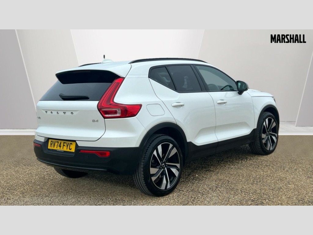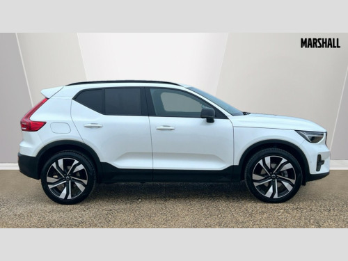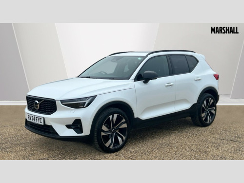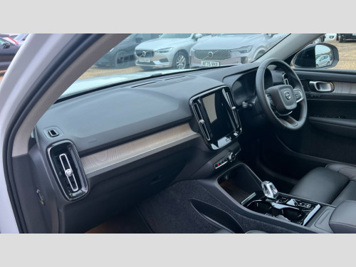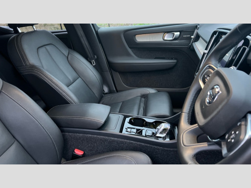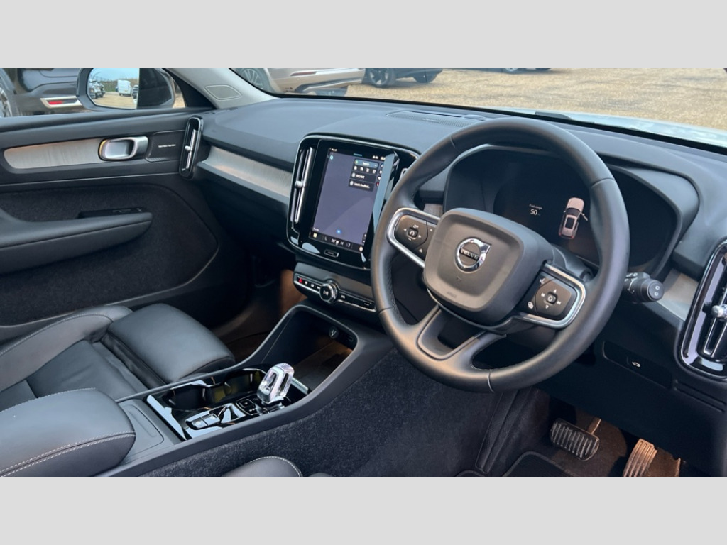 Volvo XC40 2.0 B4P Ultra Dark 5dr Auto 12.3" Progressive Driver Display, 360 degree surround view parking camera with side proximity sensors, 9" centre console portrait touch screen, Adjustable steering wheel force, Android auto (Wired), Apple carplay (wired), Bluetooth handsfree system, Driver alert control, Driver assistance (pilot assist and adaptive cruise control), Driver awareness - Blind spot information system with steer assist, cross traffic alert with autobrake and rear collision warning and mitigation, E-call, Front park assist, Google automotive services - Enabled entertainment apps, navigation with google maps, voice recognition with google assistant, Hands free power tailgate, Intelligent speed assistance, Lane keeping aid, Oncoming Lane Mitigation, Rear park assist, Speed sensitive steering, Volvo cars services with app - Driving journal, emergency and breakdown call, engine remote start, remote door locking/unlocking and vehicle dashboard, Wireless/Inductive Mobile Phone Charging, Automatic transmission with start/stop and manual change functions, Dynamic chassis, DAB Digital radio, Premium Sound by Harman Kardon, Dolby Pro Logic II Surround Sound, Dirac Unison,12 speakers/600W and subwoofer, Steering wheel mounted remote controls, Active bending pixel LED headlights with adaptive shadow technology, Active high beam incorporating daytime running lights, Adaptive brake lights with high level LED brake lights, Auto dimming feature for exterior door mirrors, Auto dimming interior mirror, Automatic headlamp levelling, Dark tinted windows - rear side windows and rear screen, Front aluminium tread plates, Front and rear electric windows, Headlight cleaning system, High gloss black front and rear skid plate, High gloss black front bumper deco, High gloss black mesh front grille with high gloss black surround, High gloss black window trim, Home safe and approach lighting, Integrated roof rails in high gloss black, LED front fog lights with cornering function, Power glass tilt and slide panoramic sunroof with sun curtain, Puddle lights, Rain sensor with automatic windscreen wiper activation, Rear side wing doors, Rear wiper, Roof antenna, Roof spoiler, Visible VIN plate, 12V socket in front tunnel console and luggage compartment, 2-Zone electronic climate control with CleanZone air quality system and pollen filter, 3 seat bench in 2nd row, 3 Spoke tailored steering wheel with chrome trim, 60/40 versatile split folding rear seat, Centre console cupholders and storage, Flexible load floor and grocery bag holder, Floor mats, Front cabin courtesy lights, Front door pocket, front cupholder, ambient front door, rear reading, rear courtesy, instrument panel and tailgate lighting, Front footwell illumination, Front headrests, Front reading lights, Front seat cushion extensions, Front side step illumination (under door), Glovebox bag hook, Heated front seats, Height/reach adjustable steering column, High gloss centre tunnel deco, Illuminated glovebox, Illuminated luggage compartment, Illuminated vanity mirrors + ticket holder, Integrated waste bin, Isofix attachments on outer rear seats, Load cover, Load protection net, Multi directional lumbar support for driver and passenger seat, Power driver seat with memory + exterior mirrors memory, Power folding rear headrests, Power passenger seat, Rear armrest with cupholders, Single front passenger seat, Underfloor cargo storage, Climate pack without heated front seats - XC40, 3x3 point rear seatbelts, City safety with steering support with Pedestrian + cyclist + front collision warning with full auto brake and rear auto brake, Driver and passenger airbags, Drivers knee airbag, Electronic parking brake with auto hold, First aid kit, Front and outer rear seatbelt reminder and pretensioners, Front seats SIPS airbags, Hill descent control, Hill start assist, Inflatable curtain, Passenger airbag cut-off device, Power child locks on rear doors, Road sign information display, Run off Road Protection, SIPS (Side Impact Protection System), Slippery road and hazard light alert, Stability and Traction Control with Spin control, Engine Drag Control and Corner Traction Control, Tyre pressure monitoring system, Vehicle deceleration control with Anti-lock Brake System, Electronic Brake Distribution and Emergency Brake Assist, Warning triangle, WHIPS whiplash protection system - front, 2 x Key integrated remote control central locking including with deadlocking system and auto open/close windows and sunroof, Anti-theft alarm including immobiliser/volume sensor + level sensor, Keyless drive includes keyless entry and keyless start, Locking wheel nuts