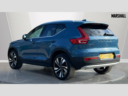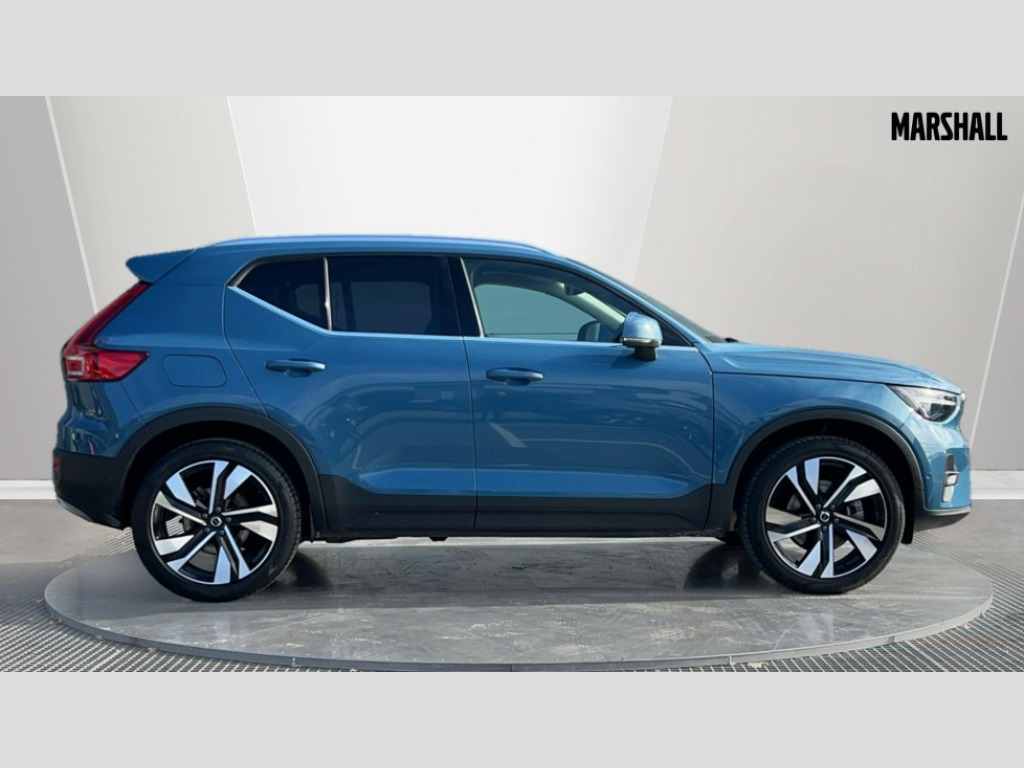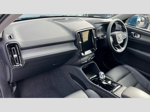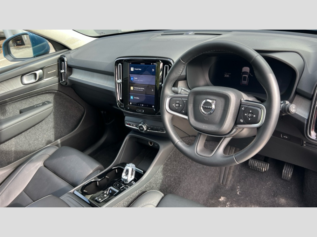 Volvo XC40 2.0 B4P Ultra Dark 5dr Auto 12.3" Progressive Driver Display, 360 degree surround view parking camera with side proximity sensors, 9" centre console portrait touch screen, Adjustable steering wheel force, Apple carplay (wired), Bluetooth handsfree system, Driver alert control, Driver assistance (pilot assist and adaptive cruise control), Driver awareness - Blind spot information system with steer assist, cross traffic alert with autobrake and rear collision warning and mitigation, E-call, Google automotive services - Enabled entertainment apps, navigation with google maps, voice recognition with google assistant, Hands free power tailgate, Intelligent speed assistance, Lane keeping aid, Oncoming Lane Mitigation, Speed sensitive steering, Volvo cars services with app - Driving journal, emergency and breakdown call, engine remote start, remote door locking/unlocking and vehicle dashboard, Wireless/Inductive Mobile Phone Charging, Automatic transmission with start/stop and manual change functions, Dynamic chassis, DAB Digital radio, Premium Sound by Harman Kardon, Dolby Pro Logic II Surround Sound, Dirac Unison,12 speakers/600W and subwoofer, Steering wheel mounted remote controls, Active bending pixel LED headlights with adaptive shadow technology, Active high beam incorporating daytime running lights, Adaptive brake lights with high level LED brake lights, Auto dimming feature for exterior door mirrors, Auto dimming interior mirror, Automatic headlamp levelling, Dark tinted windows - rear side windows and rear screen, Front aluminium tread plates, Front and rear electric windows, Headlight cleaning system, High gloss black front and rear skid plate, High gloss black front bumper deco, High gloss black mesh front grille with high gloss black surround, High gloss black window trim, Home safe and approach lighting, Integrated roof rails in high gloss black, LED front fog lights with cornering function, Power glass tilt and slide panoramic sunroof with sun curtain, Puddle lights, Rain sensor with automatic windscreen wiper activation, Rear side wing doors, Rear wiper, Roof antenna, Roof spoiler, Visible VIN plate, 12V socket in front tunnel console and luggage compartment, 2-Zone electronic climate control with CleanZone air quality system and pollen filter, 3 seat bench in 2nd row, 3 Spoke tailored steering wheel with chrome trim, 60/40 versatile split folding rear seat, Centre console cupholders and storage, Flexible load floor and grocery bag holder, Floor mats, Front cabin courtesy lights, Front door pocket, front cupholder, ambient front door, rear reading, rear courtesy, instrument panel and tailgate lighting, Front footwell illumination, Front headrests, Front reading lights, Front seat cushion extensions, Front side step illumination (under door), Glovebox bag hook, Heated front seats, Height/reach adjustable steering column, High gloss centre tunnel deco, Illuminated glovebox, Illuminated luggage compartment, Illuminated vanity mirrors + ticket holder, Integrated waste bin, Isofix attachments on outer rear seats, Load cover, Load protection net, Multi directional lumbar support for driver and passenger seat, Power driver seat with memory + exterior mirrors memory, Power folding rear headrests, Power passenger seat, Rear armrest with cupholders, Single front passenger seat, Underfloor cargo storage, Climate pack without heated front seats - XC40, 3x3 point rear seatbelts, City safety with steering support with Pedestrian + cyclist + front collision warning with full auto brake and rear auto brake, Driver and passenger airbags, Drivers knee airbag, Electronic parking brake with auto hold, First aid kit, Front and outer rear seatbelt reminder and pretensioners, Front seats SIPS airbags, Hill descent control, Hill start assist, Inflatable curtain, Passenger airbag cut-off device, Power child locks on rear doors, Road sign information display, Run off Road Protection, SIPS (Side Impact Protection System), Slippery road and hazard light alert, Stability and Traction Control with Spin control, Engine Drag Control and Corner Traction Control, Tyre pressure monitoring system, Vehicle deceleration control with Anti-lock Brake System, Electronic Brake Distribution and Emergency Brake Assist, Warning triangle, WHIPS whiplash protection system - front, 2 x Key integrated remote control central locking including with deadlocking system and auto open/close windows and sunroof, Anti-theft alarm including immobiliser/volume sensor + level sensor, Keyless drive includes keyless entry and keyless start, Locking wheel nuts