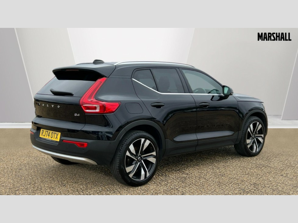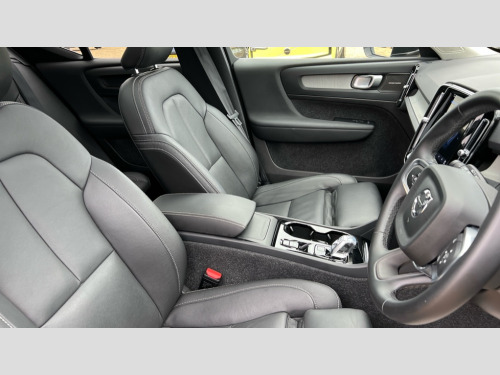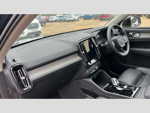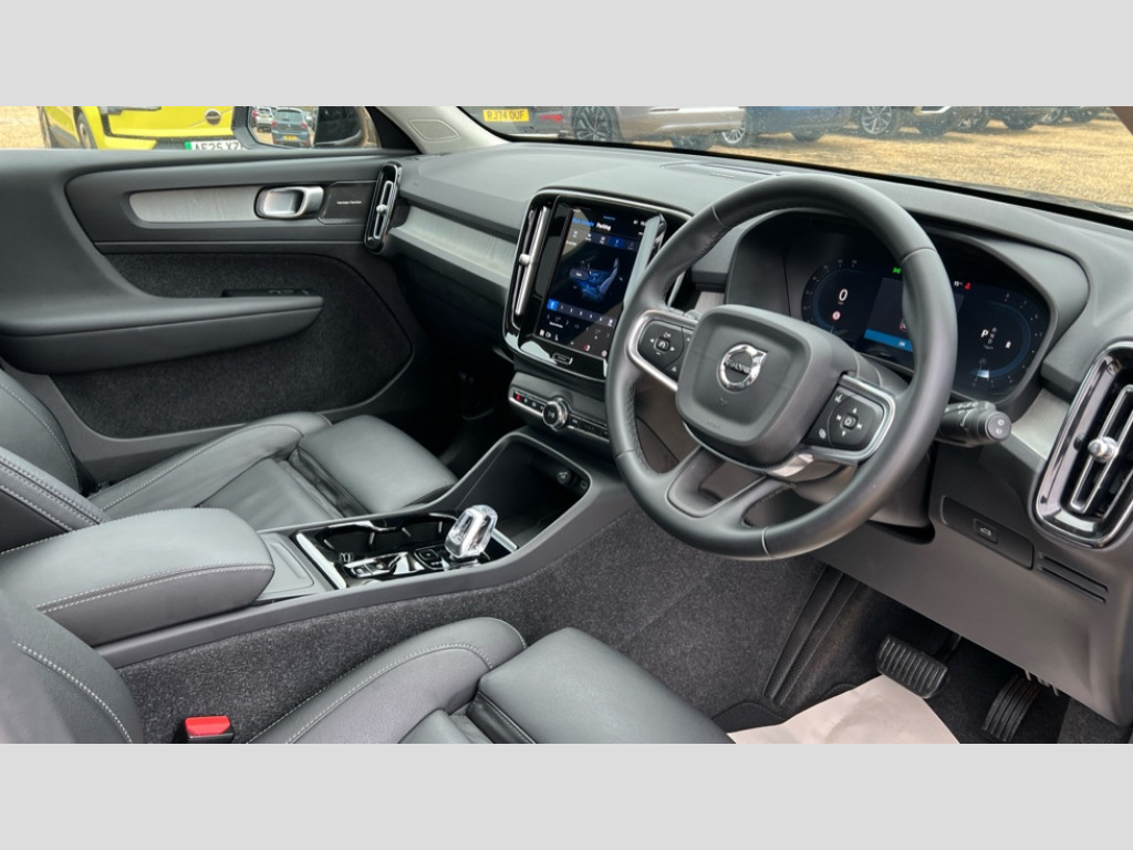 Volvo XC40 2.0 B4P Ultra Dark 5dr Auto 12.3" Progressive Driver Display, 360 degree surround view parking camera with side proximity sensors, 9" centre console portrait touch screen, Adjustable steering wheel force, Apple carplay (wired), Bluetooth handsfree system, Driver alert control, Driver assistance (pilot assist and adaptive cruise control), Driver awareness - Blind spot information system with steer assist, cross traffic alert with autobrake and rear collision warning and mitigation, E-call, Google automotive services - Enabled entertainment apps, navigation with google maps, voice recognition with google assistant, Hands free power tailgate, Intelligent speed assistance, Lane keeping aid, Oncoming Lane Mitigation, Speed sensitive steering, Volvo cars services with app - Driving journal, emergency and breakdown call, engine remote start, remote door locking/unlocking and vehicle dashboard, Wireless/Inductive Mobile Phone Charging, Automatic transmission with start/stop and manual change functions, Dynamic chassis, DAB Digital radio, Premium Sound by Harman Kardon, Dolby Pro Logic II Surround Sound, Dirac Unison,12 speakers/600W and subwoofer, Steering wheel mounted remote controls, Active bending pixel LED headlights with adaptive shadow technology, Active high beam incorporating daytime running lights, Adaptive brake lights with high level LED brake lights, Auto dimming feature for exterior door mirrors, Auto dimming interior mirror, Automatic headlamp levelling, Dark tinted windows - rear side windows and rear screen, Front aluminium tread plates, Front and rear electric windows, Headlight cleaning system, High gloss black front and rear skid plate, High gloss black front bumper deco, High gloss black mesh front grille with high gloss black surround, High gloss black window trim, Home safe and approach lighting, Integrated roof rails in high gloss black, LED front fog lights with cornering function, Power glass tilt and slide panoramic sunroof with sun curtain, Puddle lights, Rain sensor with automatic windscreen wiper activation, Rear side wing doors, Rear wiper, Roof antenna, Roof spoiler, Visible VIN plate, 12V socket in front tunnel console and luggage compartment, 2-Zone electronic climate control with CleanZone air quality system and pollen filter, 3 seat bench in 2nd row, 3 Spoke tailored steering wheel with chrome trim, 60/40 versatile split folding rear seat, Centre console cupholders and storage, Flexible load floor and grocery bag holder, Floor mats, Front cabin courtesy lights, Front door pocket, front cupholder, ambient front door, rear reading, rear courtesy, instrument panel and tailgate lighting, Front footwell illumination, Front headrests, Front reading lights, Front seat cushion extensions, Front side step illumination (under door), Glovebox bag hook, Heated front seats, Height/reach adjustable steering column, High gloss centre tunnel deco, Illuminated glovebox, Illuminated luggage compartment, Illuminated vanity mirrors + ticket holder, Integrated waste bin, Isofix attachments on outer rear seats, Load cover, Load protection net, Multi directional lumbar support for driver and passenger seat, Power driver seat with memory + exterior mirrors memory, Power folding rear headrests, Power passenger seat, Rear armrest with cupholders, Single front passenger seat, Underfloor cargo storage, Climate pack without heated front seats - XC40, 3x3 point rear seatbelts, City safety with steering support with Pedestrian + cyclist + front collision warning with full auto brake and rear auto brake, Driver and passenger airbags, Drivers knee airbag, Electronic parking brake with auto hold, First aid kit, Front and outer rear seatbelt reminder and pretensioners, Front seats SIPS airbags, Hill descent control, Hill start assist, Inflatable curtain, Passenger airbag cut-off device, Power child locks on rear doors, Road sign information display, Run off Road Protection, SIPS (Side Impact Protection System), Slippery road and hazard light alert, Stability and Traction Control with Spin control, Engine Drag Control and Corner Traction Control, Tyre pressure monitoring system, Vehicle deceleration control with Anti-lock Brake System, Electronic Brake Distribution and Emergency Brake Assist, Warning triangle, WHIPS whiplash protection system - front, 2 x Key integrated remote control central locking including with deadlocking system and auto open/close windows and sunroof, Anti-theft alarm including immobiliser/volume sensor + level sensor, Keyless drive includes keyless entry and keyless start, Locking wheel nuts