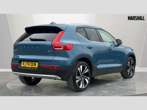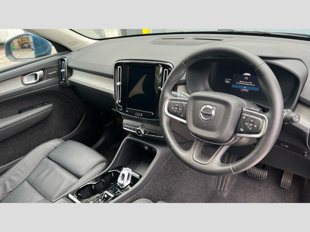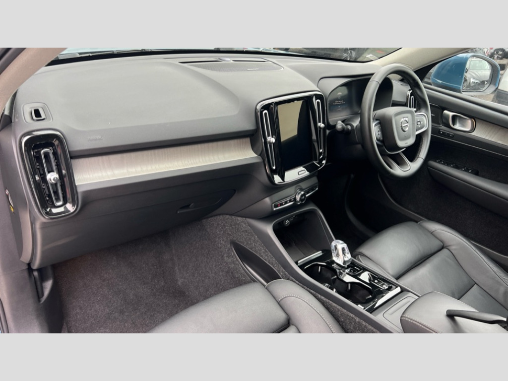 Volvo XC40 2.0 B4P Ultra Dark 5dr Auto 12.3" Progressive Driver Display, 360 degree surround view parking camera with side proximity sensors, 9" centre console portrait touch screen, Adjustable steering wheel force, Apple carplay (wired), Bluetooth handsfree system, Driver alert control, Driver assistance (pilot assist and adaptive cruise control), Driver awareness - Blind spot information system with steer assist, cross traffic alert with autobrake and rear collision warning and mitigation, E-call, Google automotive services - Enabled entertainment apps, navigation with google maps, voice recognition with google assistant, Hands free power tailgate, Intelligent speed assistance, Lane keeping aid, Oncoming Lane Mitigation, Speed sensitive steering, Volvo cars services with app - Driving journal, emergency and breakdown call, engine remote start, remote door locking/unlocking and vehicle dashboard, Wireless/Inductive Mobile Phone Charging, Automatic transmission with start/stop and manual change functions, Dynamic chassis, DAB Digital radio, Premium Sound by Harman Kardon, Dolby Pro Logic II Surround Sound, Dirac Unison,12 speakers/600W and subwoofer, Steering wheel mounted remote controls, Active bending pixel LED headlights with adaptive shadow technology, Active high beam incorporating daytime running lights, Adaptive brake lights with high level LED brake lights, Auto dimming feature for exterior door mirrors, Auto dimming interior mirror, Automatic headlamp levelling, Dark tinted windows - rear side windows and rear screen, Front aluminium tread plates, Front and rear electric windows, Headlight cleaning system, High gloss black front and rear skid plate, High gloss black front bumper deco, High gloss black mesh front grille with high gloss black surround, High gloss black window trim, Home safe and approach lighting, Integrated roof rails in high gloss black, LED front fog lights with cornering function, Power glass tilt and slide panoramic sunroof with sun curtain, Puddle lights, Rain sensor with automatic windscreen wiper activation, Rear side wing doors, Rear wiper, Roof antenna, Roof spoiler, Visible VIN plate, 12V socket in front tunnel console and luggage compartment, 2-Zone electronic climate control with CleanZone air quality system and pollen filter, 3 seat bench in 2nd row, 3 Spoke tailored steering wheel with chrome trim, 60/40 versatile split folding rear seat, Centre console cupholders and storage, Flexible load floor and grocery bag holder, Floor mats, Front cabin courtesy lights, Front door pocket, front cupholder, ambient front door, rear reading, rear courtesy, instrument panel and tailgate lighting, Front footwell illumination, Front headrests, Front reading lights, Front seat cushion extensions, Front side step illumination (under door), Glovebox bag hook, Heated front seats, Height/reach adjustable steering column, High gloss centre tunnel deco, Illuminated glovebox, Illuminated luggage compartment, Illuminated vanity mirrors + ticket holder, Integrated waste bin, Isofix attachments on outer rear seats, Load cover, Load protection net, Multi directional lumbar support for driver and passenger seat, Power driver seat with memory + exterior mirrors memory, Power folding rear headrests, Power passenger seat, Rear armrest with cupholders, Single front passenger seat, Underfloor cargo storage, Climate pack without heated front seats - XC40, 3x3 point rear seatbelts, City safety with steering support with Pedestrian + cyclist + front collision warning with full auto brake and rear auto brake, Driver and passenger airbags, Drivers knee airbag, Electronic parking brake with auto hold, First aid kit, Front and outer rear seatbelt reminder and pretensioners, Front seats SIPS airbags, Hill descent control, Hill start assist, Inflatable curtain, Passenger airbag cut-off device, Power child locks on rear doors, Road sign information display, Run off Road Protection, SIPS (Side Impact Protection System), Slippery road and hazard light alert, Stability and Traction Control with Spin control, Engine Drag Control and Corner Traction Control, Tyre pressure monitoring system, Vehicle deceleration control with Anti-lock Brake System, Electronic Brake Distribution and Emergency Brake Assist, Warning triangle, WHIPS whiplash protection system - front, 2 x Key integrated remote control central locking including with deadlocking system and auto open/close windows and sunroof, Anti-theft alarm including immobiliser/volume sensor + level sensor, Keyless drive includes keyless entry and keyless start, Locking wheel nuts