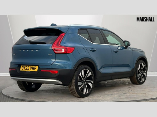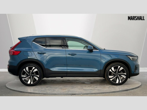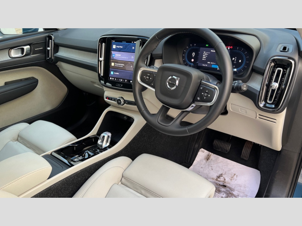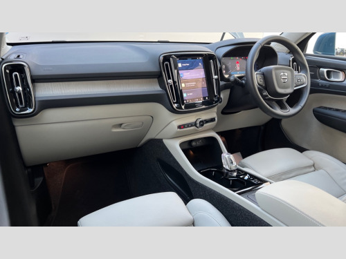 Volvo XC40 2.0 B4P Ultra Dark 5dr Auto 12.3" Progressive Driver Display, 360 degree surround view parking camera with side proximity sensors, 9" centre console portrait touch screen, Adjustable steering wheel force, Android auto (Wired), Apple carplay (wired), Bluetooth handsfree system, Driver alert control, Driver assistance (pilot assist and adaptive cruise control), Driver awareness - Blind spot information system with steer assist, cross traffic alert with autobrake and rear collision warning and mitigation, E-call, Front park assist, Google automotive services - Enabled entertainment apps, navigation with google maps, voice recognition with google assistant, Hands free power tailgate, Intelligent speed assistance, Lane keeping aid, Oncoming Lane Mitigation, Rear park assist, Speed sensitive steering, Volvo cars services with app - Driving journal, emergency and breakdown call, engine remote start, remote door locking/unlocking and vehicle dashboard, Wireless/Inductive Mobile Phone Charging, Automatic transmission with start/stop and manual change functions, Dynamic chassis, DAB Digital radio, Premium Sound by Harman Kardon, Dolby Pro Logic II Surround Sound, Dirac Unison,12 speakers/600W and subwoofer, Steering wheel mounted remote controls, Active bending pixel LED headlights with adaptive shadow technology, Active high beam incorporating daytime running lights, Adaptive brake lights with high level LED brake lights, Auto dimming feature for exterior door mirrors, Auto dimming interior mirror, Automatic headlamp levelling, Dark tinted windows - rear side windows and rear screen, Front aluminium tread plates, Front and rear electric windows, Headlight cleaning system, High gloss black front and rear skid plate, High gloss black front bumper deco, High gloss black mesh front grille with high gloss black surround, High gloss black window trim, Home safe and approach lighting, Integrated roof rails in high gloss black, LED front fog lights with cornering function, Power glass tilt and slide panoramic sunroof with sun curtain, Puddle lights, Rain sensor with automatic windscreen wiper activation, Rear side wing doors, Rear wiper, Roof antenna, Roof spoiler, Visible VIN plate, 12V socket in front tunnel console and luggage compartment, 2-Zone electronic climate control with CleanZone air quality system and pollen filter, 3 seat bench in 2nd row, 3 Spoke tailored steering wheel with chrome trim, 60/40 versatile split folding rear seat, Centre console cupholders and storage, Flexible load floor and grocery bag holder, Floor mats, Front cabin courtesy lights, Front door pocket, front cupholder, ambient front door, rear reading, rear courtesy, instrument panel and tailgate lighting, Front footwell illumination, Front headrests, Front reading lights, Front seat cushion extensions, Front side step illumination (under door), Glovebox bag hook, Heated front seats, Height/reach adjustable steering column, High gloss centre tunnel deco, Illuminated glovebox, Illuminated luggage compartment, Illuminated vanity mirrors + ticket holder, Integrated waste bin, Isofix attachments on outer rear seats, Load cover, Load protection net, Multi directional lumbar support for driver and passenger seat, Power driver seat with memory + exterior mirrors memory, Power folding rear headrests, Power passenger seat, Rear armrest with cupholders, Single front passenger seat, Underfloor cargo storage, Climate pack without heated front seats - XC40, 3x3 point rear seatbelts, City safety with steering support with Pedestrian + cyclist + front collision warning with full auto brake and rear auto brake, Driver and passenger airbags, Drivers knee airbag, Electronic parking brake with auto hold, First aid kit, Front and outer rear seatbelt reminder and pretensioners, Front seats SIPS airbags, Hill descent control, Hill start assist, Inflatable curtain, Passenger airbag cut-off device, Power child locks on rear doors, Road sign information display, Run off Road Protection, SIPS (Side Impact Protection System), Slippery road and hazard light alert, Stability and Traction Control with Spin control, Engine Drag Control and Corner Traction Control, Tyre pressure monitoring system, Vehicle deceleration control with Anti-lock Brake System, Electronic Brake Distribution and Emergency Brake Assist, Warning triangle, WHIPS whiplash protection system - front, 2 x Key integrated remote control central locking including with deadlocking system and auto open/close windows and sunroof, Anti-theft alarm including immobiliser/volume sensor + level sensor, Keyless drive includes keyless entry and keyless start, Locking wheel nuts