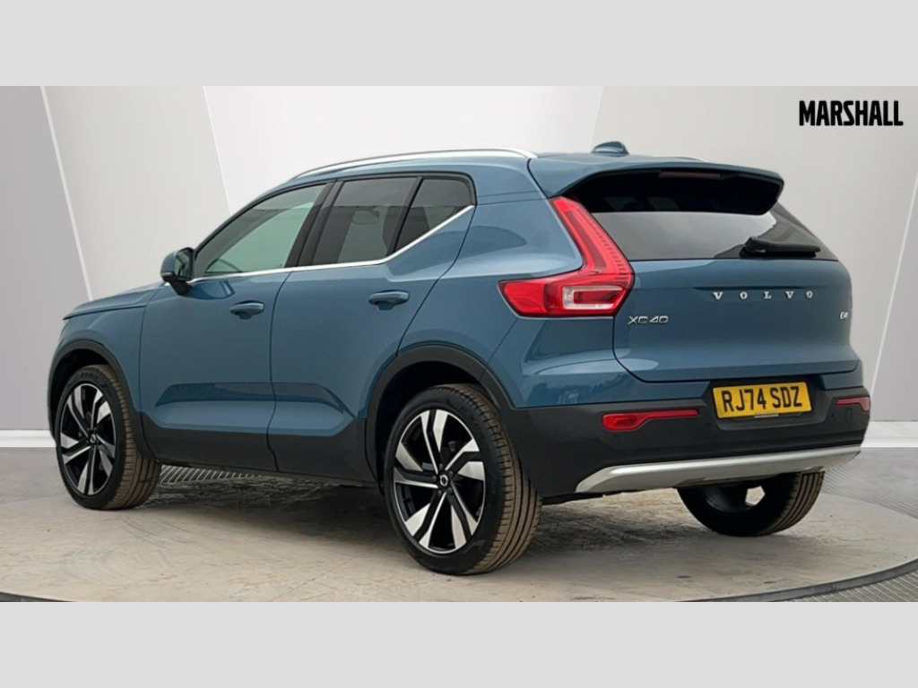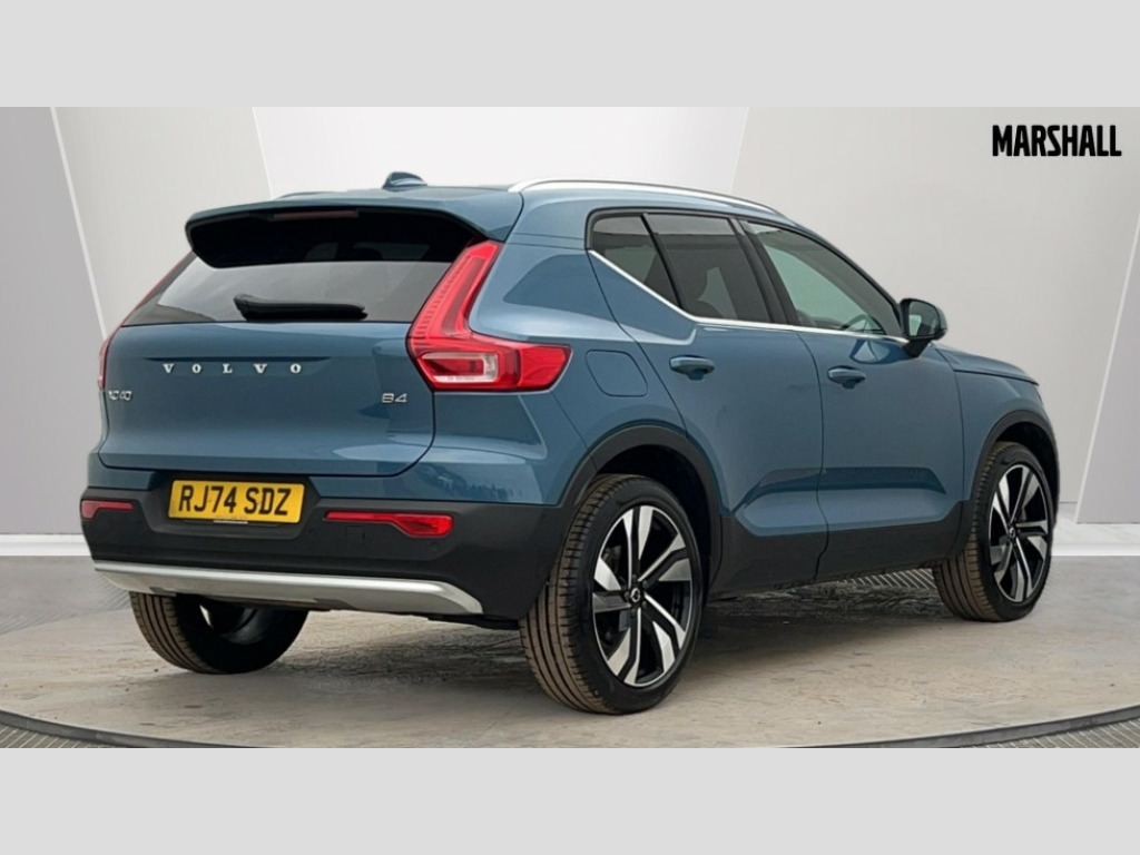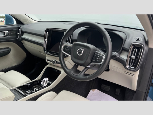 Volvo XC40 2.0 B4P Ultra Dark 5dr Auto 12.3" Progressive Driver Display, 360 degree surround view parking camera with side proximity sensors, 9" centre console portrait touch screen, Adjustable steering wheel force, Apple carplay (wired), Bluetooth handsfree system, Driver alert control, Driver assistance (pilot assist and adaptive cruise control), Driver awareness - Blind spot information system with steer assist, cross traffic alert with autobrake and rear collision warning and mitigation, E-call, Google automotive services - Enabled entertainment apps, navigation with google maps, voice recognition with google assistant, Hands free power tailgate, Intelligent speed assistance, Lane keeping aid, Oncoming Lane Mitigation, Speed sensitive steering, Volvo cars services with app - Driving journal, emergency and breakdown call, engine remote start, remote door locking/unlocking and vehicle dashboard, Wireless/Inductive Mobile Phone Charging, Automatic transmission with start/stop and manual change functions, Dynamic chassis, DAB Digital radio, Premium Sound by Harman Kardon, Dolby Pro Logic II Surround Sound, Dirac Unison,12 speakers/600W and subwoofer, Steering wheel mounted remote controls, Active bending pixel LED headlights with adaptive shadow technology, Active high beam incorporating daytime running lights, Adaptive brake lights with high level LED brake lights, Auto dimming feature for exterior door mirrors, Auto dimming interior mirror, Automatic headlamp levelling, Dark tinted windows - rear side windows and rear screen, Front aluminium tread plates, Front and rear electric windows, Headlight cleaning system, High gloss black front and rear skid plate, High gloss black front bumper deco, High gloss black mesh front grille with high gloss black surround, High gloss black window trim, Home safe and approach lighting, Integrated roof rails in high gloss black, LED front fog lights with cornering function, Power glass tilt and slide panoramic sunroof with sun curtain, Puddle lights, Rain sensor with automatic windscreen wiper activation, Rear side wing doors, Rear wiper, Roof antenna, Roof spoiler, Visible VIN plate, 12V socket in front tunnel console and luggage compartment, 2-Zone electronic climate control with CleanZone air quality system and pollen filter, 3 seat bench in 2nd row, 3 Spoke tailored steering wheel with chrome trim, 60/40 versatile split folding rear seat, Centre console cupholders and storage, Flexible load floor and grocery bag holder, Floor mats, Front cabin courtesy lights, Front door pocket, front cupholder, ambient front door, rear reading, rear courtesy, instrument panel and tailgate lighting, Front footwell illumination, Front headrests, Front reading lights, Front seat cushion extensions, Front side step illumination (under door), Glovebox bag hook, Heated front seats, Height/reach adjustable steering column, High gloss centre tunnel deco, Illuminated glovebox, Illuminated luggage compartment, Illuminated vanity mirrors + ticket holder, Integrated waste bin, Isofix attachments on outer rear seats, Load cover, Load protection net, Multi directional lumbar support for driver and passenger seat, Power driver seat with memory + exterior mirrors memory, Power folding rear headrests, Power passenger seat, Rear armrest with cupholders, Single front passenger seat, Underfloor cargo storage, Climate pack without heated front seats - XC40, 3x3 point rear seatbelts, City safety with steering support with Pedestrian + cyclist + front collision warning with full auto brake and rear auto brake, Driver and passenger airbags, Drivers knee airbag, Electronic parking brake with auto hold, First aid kit, Front and outer rear seatbelt reminder and pretensioners, Front seats SIPS airbags, Hill descent control, Hill start assist, Inflatable curtain, Passenger airbag cut-off device, Power child locks on rear doors, Road sign information display, Run off Road Protection, SIPS (Side Impact Protection System), Slippery road and hazard light alert, Stability and Traction Control with Spin control, Engine Drag Control and Corner Traction Control, Tyre pressure monitoring system, Vehicle deceleration control with Anti-lock Brake System, Electronic Brake Distribution and Emergency Brake Assist, Warning triangle, WHIPS whiplash protection system - front, 2 x Key integrated remote control central locking including with deadlocking system and auto open/close windows and sunroof, Anti-theft alarm including immobiliser/volume sensor + level sensor, Keyless drive includes keyless entry and keyless start, Locking wheel nuts