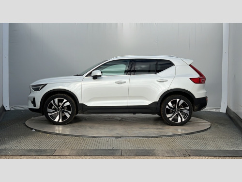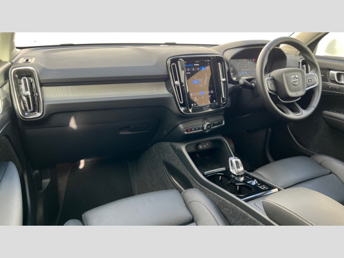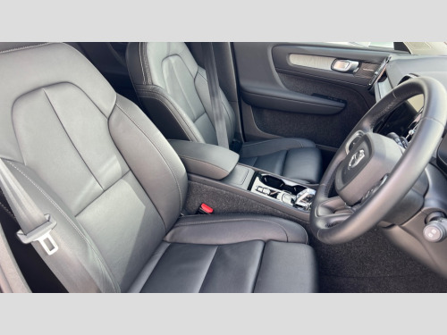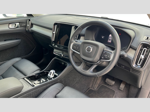 Volvo XC40 2.0 B4P Ultra Dark 5dr Auto 12.3" Progressive Driver Display, 360 degree surround view parking camera with side proximity sensors, 9" centre console portrait touch screen, Adjustable steering wheel force, Android auto (Wired), Apple carplay (wired), Bluetooth handsfree system, Driver alert control, Driver assistance (pilot assist and adaptive cruise control), Driver awareness - Blind spot information system with steer assist, cross traffic alert with autobrake and rear collision warning and mitigation, E-call, Front park assist, Google automotive services - Enabled entertainment apps, navigation with google maps, voice recognition with google assistant, Hands free power tailgate, Intelligent speed assistance, Lane keeping aid, Oncoming Lane Mitigation, Rear park assist, Speed sensitive steering, Volvo cars services with app - Driving journal, emergency and breakdown call, engine remote start, remote door locking/unlocking and vehicle dashboard, Wireless/Inductive Mobile Phone Charging, Automatic transmission with start/stop and manual change functions, Dynamic chassis, DAB Digital radio, Premium Sound by Harman Kardon, Dolby Pro Logic II Surround Sound, Dirac Unison,12 speakers/600W and subwoofer, Steering wheel mounted remote controls, Active bending pixel LED headlights with adaptive shadow technology, Active high beam incorporating daytime running lights, Adaptive brake lights with high level LED brake lights, Auto dimming feature for exterior door mirrors, Auto dimming interior mirror, Automatic headlamp levelling, Dark tinted windows - rear side windows and rear screen, Front aluminium tread plates, Front and rear electric windows, Headlight cleaning system, High gloss black front and rear skid plate, High gloss black front bumper deco, High gloss black mesh front grille with high gloss black surround, High gloss black window trim, Home safe and approach lighting, Integrated roof rails in high gloss black, LED front fog lights with cornering function, Power glass tilt and slide panoramic sunroof with sun curtain, Puddle lights, Rain sensor with automatic windscreen wiper activation, Rear side wing doors, Rear wiper, Roof antenna, Roof spoiler, Visible VIN plate, 12V socket in front tunnel console and luggage compartment, 2-Zone electronic climate control with CleanZone air quality system and pollen filter, 3 seat bench in 2nd row, 3 Spoke tailored steering wheel with chrome trim, 60/40 versatile split folding rear seat, Centre console cupholders and storage, Flexible load floor and grocery bag holder, Floor mats, Front cabin courtesy lights, Front door pocket, front cupholder, ambient front door, rear reading, rear courtesy, instrument panel and tailgate lighting, Front footwell illumination, Front headrests, Front reading lights, Front seat cushion extensions, Front side step illumination (under door), Glovebox bag hook, Heated front seats, Height/reach adjustable steering column, High gloss centre tunnel deco, Illuminated glovebox, Illuminated luggage compartment, Illuminated vanity mirrors + ticket holder, Integrated waste bin, Isofix attachments on outer rear seats, Load cover, Load protection net, Multi directional lumbar support for driver and passenger seat, Power driver seat with memory + exterior mirrors memory, Power folding rear headrests, Power passenger seat, Rear armrest with cupholders, Single front passenger seat, Underfloor cargo storage, Climate pack without heated front seats - XC40, 3x3 point rear seatbelts, City safety with steering support with Pedestrian + cyclist + front collision warning with full auto brake and rear auto brake, Driver and passenger airbags, Drivers knee airbag, Electronic parking brake with auto hold, First aid kit, Front and outer rear seatbelt reminder and pretensioners, Front seats SIPS airbags, Hill descent control, Hill start assist, Inflatable curtain, Passenger airbag cut-off device, Power child locks on rear doors, Road sign information display, Run off Road Protection, SIPS (Side Impact Protection System), Slippery road and hazard light alert, Stability and Traction Control with Spin control, Engine Drag Control and Corner Traction Control, Tyre pressure monitoring system, Vehicle deceleration control with Anti-lock Brake System, Electronic Brake Distribution and Emergency Brake Assist, Warning triangle, WHIPS whiplash protection system - front, 2 x Key integrated remote control central locking including with deadlocking system and auto open/close windows and sunroof, Anti-theft alarm including immobiliser/volume sensor + level sensor, Keyless drive includes keyless entry and keyless start, Locking wheel nuts