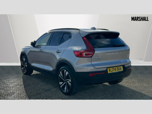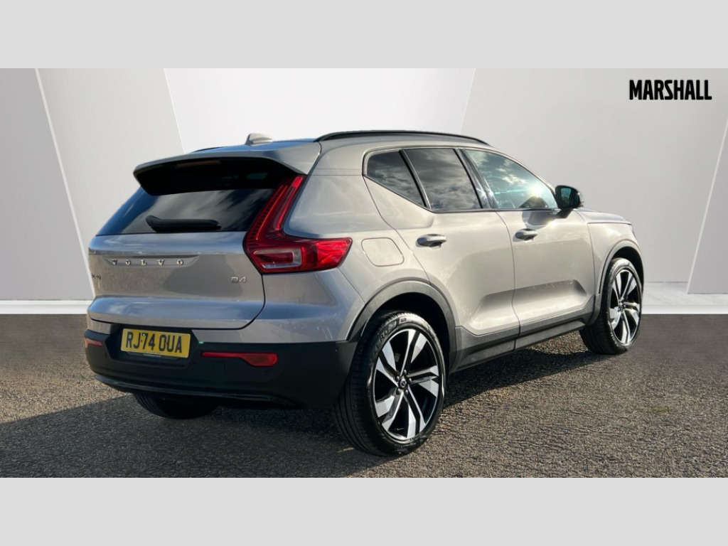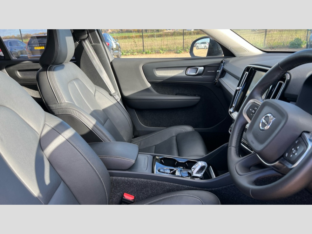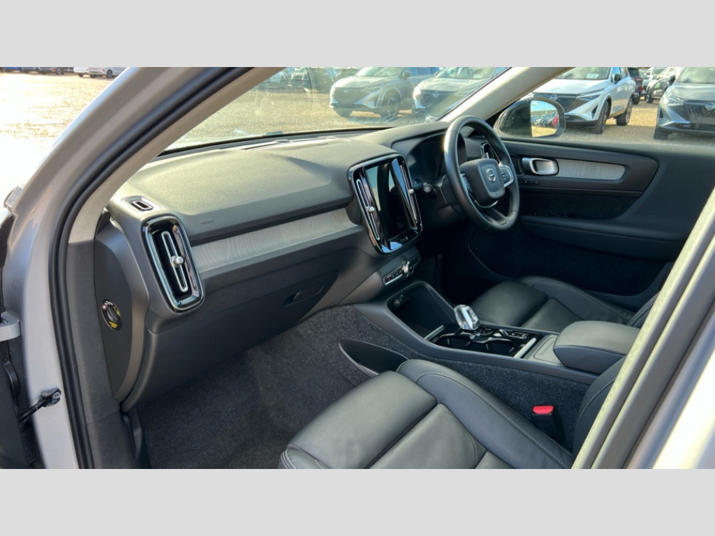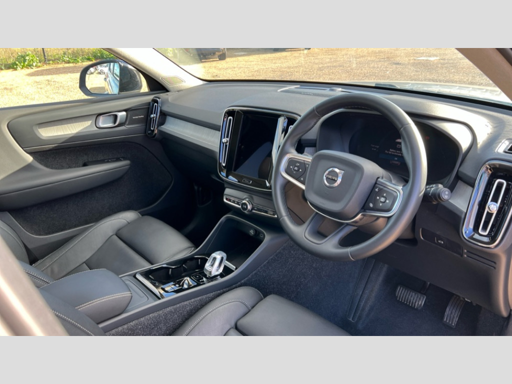 Volvo XC40 2.0 B4P Ultra Dark 5dr Auto 12.3" Progressive Driver Display, 360 degree surround view parking camera with side proximity sensors, 9" centre console portrait touch screen, Adjustable steering wheel force, Apple carplay (wired), Bluetooth handsfree system, Driver alert control, Driver assistance (pilot assist and adaptive cruise control), Driver awareness - Blind spot information system with steer assist, cross traffic alert with autobrake and rear collision warning and mitigation, E-call, Google automotive services - Enabled entertainment apps, navigation with google maps, voice recognition with google assistant, Hands free power tailgate, Intelligent speed assistance, Lane keeping aid, Oncoming Lane Mitigation, Speed sensitive steering, Volvo cars services with app - Driving journal, emergency and breakdown call, engine remote start, remote door locking/unlocking and vehicle dashboard, Wireless/Inductive Mobile Phone Charging, Automatic transmission with start/stop and manual change functions, Dynamic chassis, DAB Digital radio, Premium Sound by Harman Kardon, Dolby Pro Logic II Surround Sound, Dirac Unison,12 speakers/600W and subwoofer, Steering wheel mounted remote controls, Active bending pixel LED headlights with adaptive shadow technology, Active high beam incorporating daytime running lights, Adaptive brake lights with high level LED brake lights, Auto dimming feature for exterior door mirrors, Auto dimming interior mirror, Automatic headlamp levelling, Dark tinted windows - rear side windows and rear screen, Front aluminium tread plates, Front and rear electric windows, Headlight cleaning system, High gloss black front and rear skid plate, High gloss black front bumper deco, High gloss black mesh front grille with high gloss black surround, High gloss black window trim, Home safe and approach lighting, Integrated roof rails in high gloss black, LED front fog lights with cornering function, Power glass tilt and slide panoramic sunroof with sun curtain, Puddle lights, Rain sensor with automatic windscreen wiper activation, Rear side wing doors, Rear wiper, Roof antenna, Roof spoiler, Visible VIN plate, 12V socket in front tunnel console and luggage compartment, 2-Zone electronic climate control with CleanZone air quality system and pollen filter, 3 seat bench in 2nd row, 3 Spoke tailored steering wheel with chrome trim, 60/40 versatile split folding rear seat, Centre console cupholders and storage, Flexible load floor and grocery bag holder, Floor mats, Front cabin courtesy lights, Front door pocket, front cupholder, ambient front door, rear reading, rear courtesy, instrument panel and tailgate lighting, Front footwell illumination, Front headrests, Front reading lights, Front seat cushion extensions, Front side step illumination (under door), Glovebox bag hook, Heated front seats, Height/reach adjustable steering column, High gloss centre tunnel deco, Illuminated glovebox, Illuminated luggage compartment, Illuminated vanity mirrors + ticket holder, Integrated waste bin, Isofix attachments on outer rear seats, Load cover, Load protection net, Multi directional lumbar support for driver and passenger seat, Power driver seat with memory + exterior mirrors memory, Power folding rear headrests, Power passenger seat, Rear armrest with cupholders, Single front passenger seat, Underfloor cargo storage, Climate pack without heated front seats - XC40, 3x3 point rear seatbelts, City safety with steering support with Pedestrian + cyclist + front collision warning with full auto brake and rear auto brake, Driver and passenger airbags, Drivers knee airbag, Electronic parking brake with auto hold, First aid kit, Front and outer rear seatbelt reminder and pretensioners, Front seats SIPS airbags, Hill descent control, Hill start assist, Inflatable curtain, Passenger airbag cut-off device, Power child locks on rear doors, Road sign information display, Run off Road Protection, SIPS (Side Impact Protection System), Slippery road and hazard light alert, Stability and Traction Control with Spin control, Engine Drag Control and Corner Traction Control, Tyre pressure monitoring system, Vehicle deceleration control with Anti-lock Brake System, Electronic Brake Distribution and Emergency Brake Assist, Warning triangle, WHIPS whiplash protection system - front, 2 x Key integrated remote control central locking including with deadlocking system and auto open/close windows and sunroof, Anti-theft alarm including immobiliser/volume sensor + level sensor, Keyless drive includes keyless entry and keyless start, Locking wheel nuts