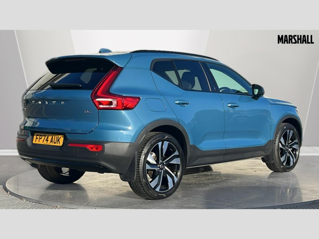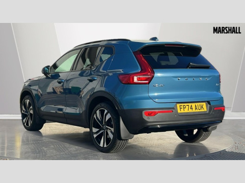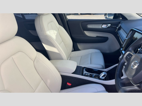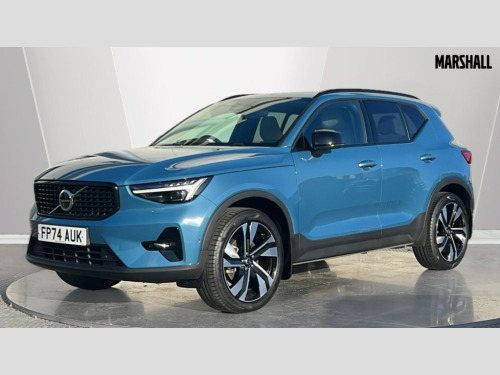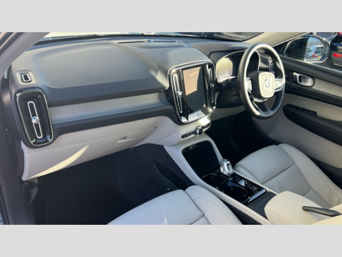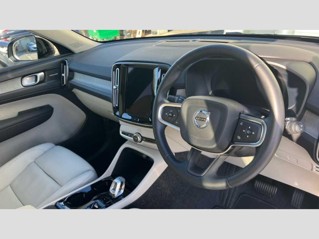 Volvo XC40 2.0 B4P Ultra Dark 5dr Auto 12.3" Progressive Driver Display, 360 degree surround view parking camera with side proximity sensors, 9" centre console portrait touch screen, Adjustable steering wheel force, Apple carplay (wired), Bluetooth handsfree system, Driver alert control, Driver assistance (pilot assist and adaptive cruise control), Driver awareness - Blind spot information system with steer assist, cross traffic alert with autobrake and rear collision warning and mitigation, E-call, Google automotive services - Enabled entertainment apps, navigation with google maps, voice recognition with google assistant, Hands free power tailgate, Intelligent speed assistance, Lane keeping aid, Oncoming Lane Mitigation, Speed sensitive steering, Volvo cars services with app - Driving journal, emergency and breakdown call, engine remote start, remote door locking/unlocking and vehicle dashboard, Wireless/Inductive Mobile Phone Charging, Automatic transmission with start/stop and manual change functions, Dynamic chassis, DAB Digital radio, Premium Sound by Harman Kardon, Dolby Pro Logic II Surround Sound, Dirac Unison,12 speakers/600W and subwoofer, Steering wheel mounted remote controls, Active bending pixel LED headlights with adaptive shadow technology, Active high beam incorporating daytime running lights, Adaptive brake lights with high level LED brake lights, Auto dimming feature for exterior door mirrors, Auto dimming interior mirror, Automatic headlamp levelling, Dark tinted windows - rear side windows and rear screen, Front aluminium tread plates, Front and rear electric windows, Headlight cleaning system, High gloss black front and rear skid plate, High gloss black front bumper deco, High gloss black mesh front grille with high gloss black surround, High gloss black window trim, Home safe and approach lighting, Integrated roof rails in high gloss black, LED front fog lights with cornering function, Power glass tilt and slide panoramic sunroof with sun curtain, Puddle lights, Rain sensor with automatic windscreen wiper activation, Rear side wing doors, Rear wiper, Roof antenna, Roof spoiler, Visible VIN plate, 12V socket in front tunnel console and luggage compartment, 2-Zone electronic climate control with CleanZone air quality system and pollen filter, 3 seat bench in 2nd row, 3 Spoke tailored steering wheel with chrome trim, 60/40 versatile split folding rear seat, Centre console cupholders and storage, Flexible load floor and grocery bag holder, Floor mats, Front cabin courtesy lights, Front door pocket, front cupholder, ambient front door, rear reading, rear courtesy, instrument panel and tailgate lighting, Front footwell illumination, Front headrests, Front reading lights, Front seat cushion extensions, Front side step illumination (under door), Glovebox bag hook, Heated front seats, Height/reach adjustable steering column, High gloss centre tunnel deco, Illuminated glovebox, Illuminated luggage compartment, Illuminated vanity mirrors + ticket holder, Integrated waste bin, Isofix attachments on outer rear seats, Load cover, Load protection net, Multi directional lumbar support for driver and passenger seat, Power driver seat with memory + exterior mirrors memory, Power folding rear headrests, Power passenger seat, Rear armrest with cupholders, Single front passenger seat, Underfloor cargo storage, Climate pack without heated front seats - XC40, 3x3 point rear seatbelts, City safety with steering support with Pedestrian + cyclist + front collision warning with full auto brake and rear auto brake, Driver and passenger airbags, Drivers knee airbag, Electronic parking brake with auto hold, First aid kit, Front and outer rear seatbelt reminder and pretensioners, Front seats SIPS airbags, Hill descent control, Hill start assist, Inflatable curtain, Passenger airbag cut-off device, Power child locks on rear doors, Road sign information display, Run off Road Protection, SIPS (Side Impact Protection System), Slippery road and hazard light alert, Stability and Traction Control with Spin control, Engine Drag Control and Corner Traction Control, Tyre pressure monitoring system, Vehicle deceleration control with Anti-lock Brake System, Electronic Brake Distribution and Emergency Brake Assist, Warning triangle, WHIPS whiplash protection system - front, 2 x Key integrated remote control central locking including with deadlocking system and auto open/close windows and sunroof, Anti-theft alarm including immobiliser/volume sensor + level sensor, Keyless drive includes keyless entry and keyless start, Locking wheel nuts