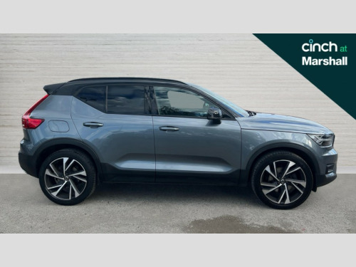 Volvo XC40 2.0 T4 R DESIGN Pro 5dr AWD Geartronic 12.3" Active TFT crystal driver's instrument display, 9" Touch screen, Adjustable steering wheel force, Bluetooth hands free telephone kit, Drive mode selector, Lane keep assist with driver alert control, Oncoming Lane Mitigation, Sensus navigation system, Speed limiter, Speed sensitive steering, Voice control system, Volvo on call, DAB Digital radio, Steering wheel mounted remote controls, Active bending headlights, Adaptive brake lights, Auto dimming interior mirror, Automatic headlamp levelling, Black stone door mirrors, Black stone roof, Dark tinted glass for rear windows + rear screen + side luggage area window, Dual integrated exhaust pipes with high gloss black surround, Electrically adjustable and heated door mirrors, Embossed rear side roof pillar, Front and rear electric windows, Front tread plates, Headlamp cleaning system, Heated front windscreen, Heated washer nozzles, High gloss black front and rear skid plate, High gloss black lower front bumper, High gloss black mesh grille, High gloss black roof rails, High gloss black window trim, Home safe and approach lighting, LED front fog lights with static cornering light function, LED Headlights + Active high beam incorporating daytime running lights, Rain sensor windscreen wipers, Rear wiper, Roof antenna, Roof spoiler, Visible VIN plate, 12V socket in front tunnel console, 2 zone electronic climate control with air quality system, 3 spoke leather steering wheel with chrome trim, 60/40 split folding rear seat, A-pillar parking ticket holder, Ambient lighting in door panels, Black headlining, Bright metal luggage threshold, Centre console cupholders, Centre console storage box, Contour sports seats with leather/nubuck upholstery, Cooled glovebox, Courtesy lights, Driver seat height/tilt/lumbar adjust, Driver's lower storage shelf, Extended front seat cushions, Front door pockets, Front footwell illumination, Front tunnel storage net, Front/rear reading lights, Glovebox bag hook, Glovebox illumination, Heated front seats, Height/reach adjustable steering column, High gloss centre tunnel deco, Illuminated driver/passenger vanity mirrors, Illuminated front cupholder, Illuminated luggage compartment, Illuminated tailgate, Isofix attachments on outer rear seats, Load protection net, Multicolour theatre lights, Passenger seat adjustable for lumbar support, Perforated leather gearknob, Perforated Leather Key Integrated Remote, Perforated leather steering wheel, Pollen filter, Power memory driver's seat + door mirror memory, Rear armrest / integral cup holders / storage tray, Sports pedals, Underfloor stowage compartment, ABS/EBD, City safety, Drivers knee airbag, DSTC-Dynamic Stability and Traction Control, Dual stage driver/passenger airbags, EBA, Electronic parking brake with auto hold, Fasten seatbelt reminder, First aid kit, Front seat side impact airbags, Hill descent control, Hill start assist, Inflatable curtain, Passenger airbag cut-off device, Road sign information display, Run off Road Mitigation, Run off Road Protection, Seatbelt pre-tensioners, Side impact protection, Tyre pressure monitoring system, Warning triangle, WHIPS whiplash protection system - front, Anti-theft alarm including immobiliser/volume sensor + level sensor, Fuel flap with deadlocking system, Key integrated remote control central locking, Locking wheel nuts, Private locking, Cutting edge aluminium inlay
