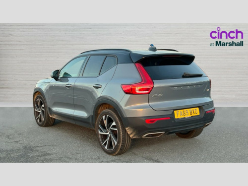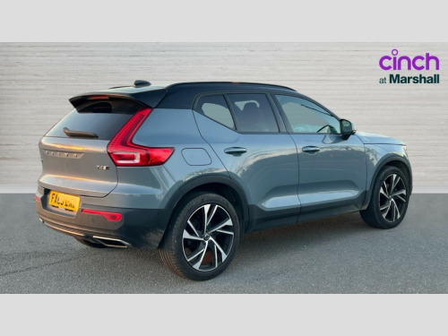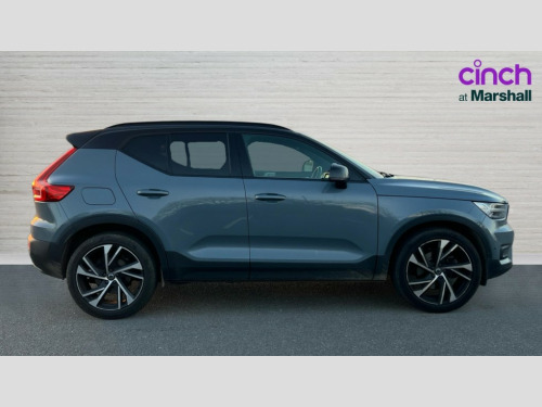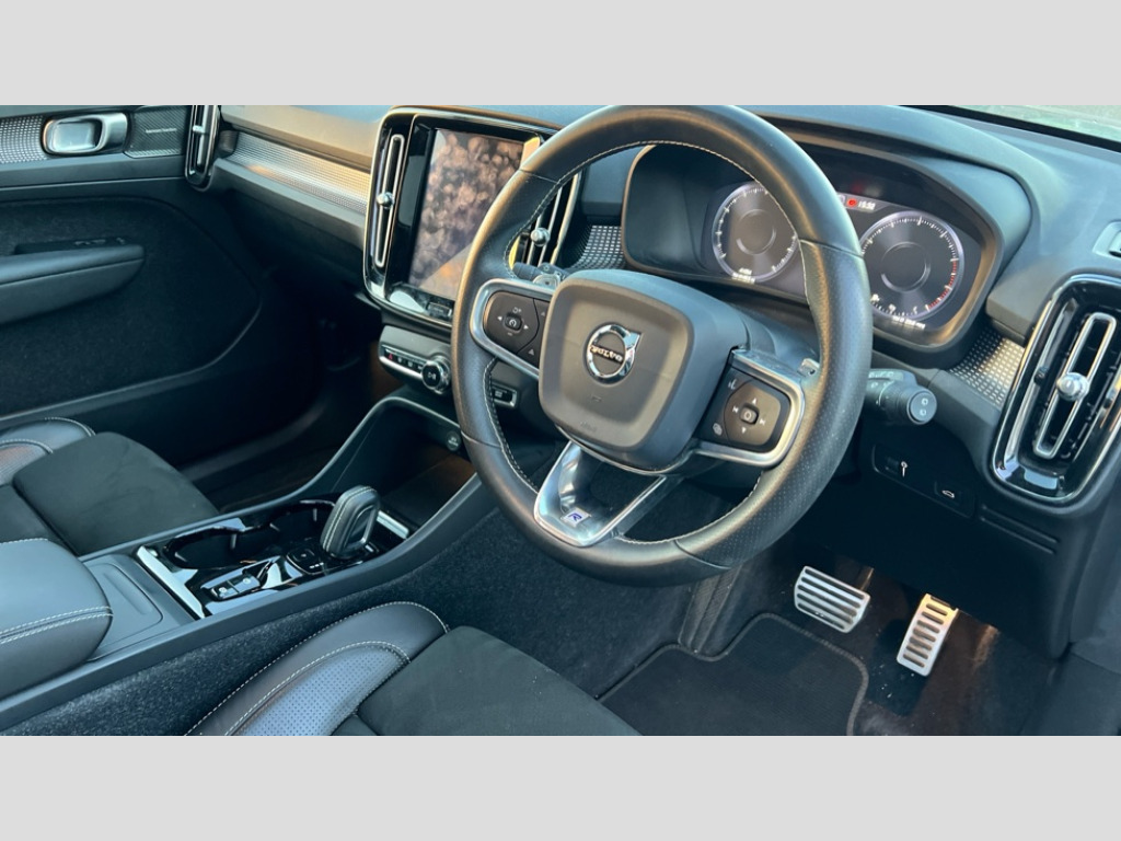 Volvo XC40 2.0 T4 R DESIGN Pro 5dr AWD Geartronic 12.3" Active TFT crystal driver's instrument display, 9" centre console portrait touch screen, Adjustable steering wheel force, Bluetooth hands free telephone kit, Drive mode selector, Lane keep assist with driver alert control, Oncoming Lane Mitigation, Sensus navigation with European mapping and traffic information, Speed limiter, Speed sensitive steering, Voice control system, Volvo on call, DAB Digital radio, Steering wheel mounted remote controls, Active bending headlights, Adaptive brake lights with high level LED brake lights, Auto dimming interior mirror, Automatic headlamp levelling, Black stone door mirrors, Black stone roof, Colour coordinated auto folding and heated power door mirrors, Dark tinted glass for rear windows + rear screen + side luggage area window, Dual integrated exhaust pipes with high gloss black surround, Electrically adjustable and heated door mirrors, Embossed rear side roof pillar, Front and rear electric windows, Front tread plates, Headlamp cleaning system, Heated front windscreen, Heated washer nozzles, High gloss black front and rear skid plate, High gloss black lower front bumper, High gloss black mesh front grille with high gloss black surround, High gloss black roof rails, High gloss black window trim, Home safe and approach lighting, LED front fog lights with static cornering light function, LED Headlights + Active high beam incorporating daytime running lights, Rain sensor windscreen wipers, Rear wiper, Roof antenna, Roof spoiler, Visible VIN plate, 12V socket in front tunnel console and luggage compartment, 2 zone electronic climate control with Clean zone air quality system + pollen filter + cooled glovebox, 3 spoke leather steering wheel with chrome trim, 60/40 split folding rear seat, A-pillar parking ticket holder, Ambient front door and instrumental panel lighting, Black headlining, Bright metal luggage threshold, Centre console cupholders and storage, Driver seat height/tilt/lumbar adjust, Driver's side lower dashboard credit card storage compartment, Extended front seat cushions, Front door pocket and front cupholder illumination, Front footwell illumination, Front tunnel net pocket and integrated waste bin, Glovebox bag hook, Heated front seats, Height/reach adjustable steering column, High gloss centre tunnel deco, Illuminated luggage compartment, Illuminated tailgate, Illuminated vanity mirrors + ticket holder, Isofix attachments on outer rear seats, Leather coloured key integrated remote, Leather/nubuck upholstery, Load protection net, Lockable/illuminated glovebox, Multicolour theatre lights, Passenger seat adjustable for lumbar support, Perforated leather gearknob, Perforated leather steering wheel with gearshift paddles, Power driver seat with memory + exterior mirrors memory, Rear armrest / integral cup holders / storage tray, Rear reading and courtesy lights, Sports pedals, Underfloor stowage compartment, 3x3 point rear seatbelts, City safety, Drivers knee airbag, DSTC-Dynamic Stability and Traction Control, Dual stage driver/passenger airbags, Electronic parking brake with auto hold, Fasten seatbelt reminder, First aid kit, Hill descent control, Hill start assist, Inflatable curtain, Passenger airbag cut-off device, Road sign information display, Run off Road Mitigation, Run off Road Protection, Seatbelt reminder and pretensioners, SIPS (Side Impact Protection System), SIPS airbags, Slippery road and hazard light alert, Tyre pressure monitoring system, Vehicle deceleration control with Anti-lock Brake System, Electronic Brake Distribution and Emergency Brake Assist, Warning triangle, WHIPS whiplash protection system - front, Anti-theft alarm including immobiliser/volume sensor + level sensor, Fuel flap with deadlocking system, Key integrated remote control central locking, Locking wheel nuts, Private locking for tailgate, Cutting edge aluminium inlay