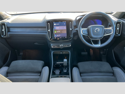 Volvo XC40 300kW Recharge Twin Plus 78kWh 5dr AWD Auto 12.3" Progressive Driver Display, 9" centre console portrait touch screen, Adjustable steering wheel force, Bluetooth handsfree system, Driver assistance (pilot assist and adaptive cruise control), Driver awareness - Blind spot information system with steer assist, cross traffic alert with autobrake and rear collision warning and mitigation, Emergency services call system, Front park assist, Google automatic services - Nav with google maps, apple carplay/android auto, voice recognition with google assistant, Hands free power tailgate, Lane keep assist with driver alert control, Oncoming Lane Mitigation, Rear park assist, Rear park assist camera, Speed limiter, Speed sensitive steering, Volvo cars services with app, Volvo on call with charge station locations and route planning and pre climatisation, Wireless Smartphone Integration includes Apple CarPlay and Android auto, Wireless/Inductive Mobile Phone Charging, 11 kW AC onboard charger, 4.5m Type 2/mode 3 charge cable, 7m 10amp charging cable with 3 pin plug and 4.5m 3 phase 32 amp type 2 / mode 3 charge cable, Charging port located in nearside rear wing, Electric front and rear axle drive, Lithium-ion battery, Recharging port located in nearside rear wing, Touring chassis, DAB Digital radio, High performance sound, 8 speakers/250W, front USB and 2 rear type C USB, Low speed exterior sound speaker, Steering wheel remote infotainment controls, Adaptive brake lights with high level LED brake lights, Auto dimming exterior rear view mirror, Auto dimming interior mirror, Automatic headlamp levelling, Automatic LED Headlights + Active high beam incorporating daytime running lights, Colour co-ordinated front grille and surround, Dark tinted windows for rear door side windows and cargo compartment, Electric adjustable/heated/auto folding door mirrors, Front and rear electric windows, Front recharge tread plates, High gloss black front and rear skid plate, High gloss black lower front bumper, High gloss black window trim, Home safe and approach lighting, Integrated roof rails in high gloss black, LED front fog lamps, Puddle lights, Rain sensor with automatic windscreen wiper activation, Rear side wing doors, Rear wiper, Recharge embossed rear side roof pillar, Roof antenna, Visible VIN plate, 12V socket in front tunnel console and luggage compartment, 2 zone electronic climate control and rear air vent with clean zone air quality system and pollen filter, 3 bench rear seats in 2nd row, 3 spoke sports tailored steering wheel, 60/40 versatile split folding rear seat, A-pillar parking ticket holder, Centre console cupholders and storage, Charcoal headlining, Flexible load floor and grocery bag holder, Floor mats, Front footwell illumination, Front headrests, Front load compartment (31 litres), Front reading light and theatre lighting, Front seat cushion extensions, Front tunnel net pocket and integrated waste bin, Glovebox bag hook, Heat pump (Enhanced cabin heating and cooling efficiency with optimal vehicle range), Height/reach adjustable steering column, High gloss black centre tunnel and centre screen surround deco, Illuminated glovebox, Illuminated luggage compartment, Illuminated vanity mirrors + ticket holder, Load protection net, Multi directional lumbar support, Power driver seat with memory + exterior mirrors memory, Power passenger seat, Rear armrest with cupholder, Rear coat hook, Rear headrests, Single front passenger seat, Underfloor cargo storage, Climate pack - C40/XC40, 3x3 point rear seatbelts, City safety includes pedestrain and cyclist detection, front collision warning with full and rear auto brake, Drivers knee airbag, Dual stage driver/passenger airbags, Electronic parking brake with auto hold, First aid kit, Front and outer rear seatbelt reminder and pretensioners, Front seats SIPS airbags, Hill descent control, Hill start assist, Inflatable curtain, ISOFIX attachment (Front passenger and Rear outer seats), Passenger airbag cut-off device, Power child locks on rear doors, Road sign information display, Run off Road Mitigation, Run off Road Protection, SIPS (Side Impact Protection System), Slippery road and hazard light alert, Stability and traction control includes spin control and corner traction control, Tyre pressure monitoring system, Vehicle deceleration control with Anti-lock Brake System, Electronic Brake Distribution and Emergency Brake Assist, Warning triangle, WHIPS whiplash protection system - front, Anti-theft alarm including immobiliser/volume sensor + level sensor, Care key with user defined top speed, Convenient entry and start, Key integrated remote control central locking + fuel flap with deadlocking system and auto open/close power windows, Keyless drive plus handsfree tailgate opening/closing, Locking wheel nuts, Private locking for tailgate, Origin inlay, Tyre sealant kit + 12v compressor