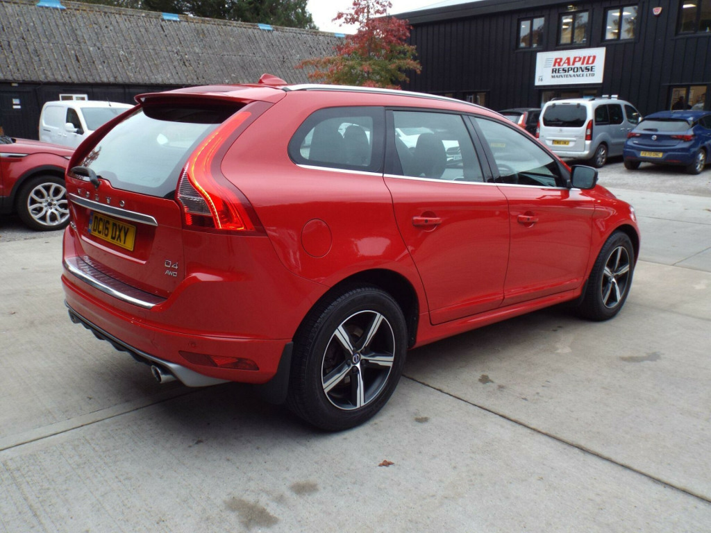 **NATIONWIDE DELIVERY AVAILABLE**This is a stunning, low mileage, 2016/16 Volvo XC60 2.4 D4 R-Design Lux Nav AWD which comes with a Full service history, a full years MOT and an excellent spec. Finished in bright Red the paintwork is amazing and the vehicle has a superb shine to it from all over. This colour looks great and quite rare too! The full black leather interior is also in excellent condition with no adverse wear at all. Great spec including: E/Windows, E/Folding Mirrors, Remote C/L (2xKeys), Keyless Go & Entry, Rear parking sensors, Electric tailgate, Totally unmarked Diamond cut alloy wheels, Pirelli tryes all around, Detachable tow-bar, Auto xenon headlights, LED DRLs, Front and rear fog lights, Front and rear heated screens, Full black leather interior, Heated seats, Electric drivers memory seat, AM/FM/DAB Radio, Aux/USB Input, Bluetooth connectivity, SAT-NAV, Dual-zone climate control with Air conditioning, Multi-function steering wheel, Cruise control, ABS/PAS/DSC, Fully fitted mats plus loads more. This is an exceptional example, low mileage, great spec and outstanding condition. We offer excellent finance rates, accept credit/debit cards and welcome part exchange too..., nter pack with active bending lights, r-design leather faced - off black, 12v socket - front, 12v socket - rear, 18in alloy wheels - ixion, a-pillar parking ticket holder, abs - anti-lock brake system, access to a range of selected web apps and internet browser, active tft crystal drivers information display, adaptive brake lights, air quality system, airbags - drivers dual stage, airbags - dual chamber sips, airbags - passenger dual stage, airbags - sips - side impact protection system, amplifier 45w x4, annual map updates x2, anti-theft alarm, armrest - front centre with storage, armrest - rear centre with storage, b-pillar ventilation, bluetooth handsfree system, bright metal luggage compartment threshold, central locking - remote, charcoal headlining, chassis - sports (r-design), chrome window trim, city safety, climate control - electronic, colour display screen - 7in, cruise control, cupholders - front, cupholders - rear, dab - digital audio broadcasting radio, dvd player, deadlock system, door mirrors - power folding with ground lights, door mirrors - silver matt (r-design), door sill tread plates - front, dynamic stability control, eba - emergency brake assistance, ebd - electronic brake distribution, electric windows - front and rear, european mapping, exhaust pipes - twin, floor mats - sports (r-design), forward folding front passenger seat, frameless auto dimming rear view mirror, front grille (r-design), front grille - matt silver (r-design), front skid plate, front theatre and footwell lights, front and rear reading lights, gear knob - leather, grocery bag holder, hard disk drive for music storage, headlight cleaning system, headlights - active bending, headlights - cornering light function, headlights - levelling system, headlights - tunnel sensor, headlights - xenon, height and reach adjustable steering column, high level led brake light, high performance audio system, hill descent control, home safe and approach lighting, ic - inflatable curtains, idis - intelligent driver information system, isofix child seat preparation - rear, illuminated driver and passenger vanity mirrors, illuminated gear knob, immobiliser, information centre, instrument cluster - unique dials (r-design), led day running lights, level sensor, locking wheel nuts, luggage compartment - cover, luggage compartment - high level anchor points x4, luggage compartment - lockable load floor, passenger airbag cut-off switch, power driver seat with memory for seat and exterior mirrors, power operated tailgate, power parking brake, power steering system (r-design), r-design aluminium trim, rds-tmc - traffic message channel, rsc - roll stability control, rain sensor, rear diffuser - (r-design), rear park assist, roll over protection system, roof rails - silver, sips - side impact protection system, seats - front height adjustment, seats - front lumbar support, seats - front sports (r-design), sensus connect with high performance sound, sensus navigation, side marker illumination, skid plates - rear, speakers x8, spoiler - rear, sports pedals - aluminium (r-design), steering wheel - 3 spoke leather with chrome trim and r-design logo, steering wheel - off-black, steering wheel remote audio controls, traction control, tyre pressure monitoring system, tyre sealant kit and compressor, usb and aux input, unique r-design lower front bumper, versatile split folding rear seat - 40-20-40, visible vin plate, voice activated control, volume sensor, whips - whiplash protection system - front seats, warning triangle