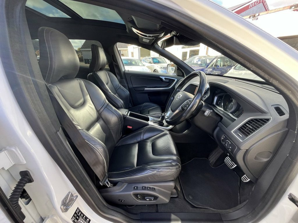 Stunning Top of the range XC60 in Bright Ice White with Full black leather interior,Heated and electric front seats,Great spec and economy with average 49 Mpg and £195 road tax,Last serviced on 21.08.2025 @83484 Miles,Comes with 2 remote keys and Mot till 07.09.2025,P/X and finance available,This 2017 Volvo XC60 D4 R-Design Lux Nav boasts an MOT valid until September 2026, offering excellent peace of mind. This stylish four wheel drive SUV is powered by a 2.4 litre Euro 6 diesel engine, delivering an impressive 50 miles per gallon. It comes with a clear vehicle history check and a 3 month warranty for added reassurance. The R-Design Lux Nav trim level includes desirable features such as a panoramic power glass tilt and slide sunroof, a blind spot information system with cross traffic alert, and a premium sound system by Harman Kardon. Parking is made easier with the rear park assist camera, and the vehicle sits on striking 20 inch Ixion IV alloy wheels. 12V Socket - Front and Rear Tunnel Conso, 3 Spoke Leather Steering Wheel with Chro, 4 Aluminium High Level Anchor Points in , A-Pillar Parking Ticket Holder, ABS - Anti-Lock Brake System and EBA - E, Active Bending Xenon Headlights, Active TFT Crystal Drivers Information D, Adaptive Brake Lights including High Lev, Anti-Theft Alarm including Immobiliser -, Auto-On Headlights, Autofolding Power Door Mirrors with Grou, B-Pillar Ventilation, Bluetooth Handsfree System, Bright Metal Luggage Compartment Thresho, Charcoal Headlining, Chassis - Sports (R-Design), Chrome Window Trim Surround, City Safety, Colour Co-ordinated Power Adjustable and, Corner Traction Control, Cruise Control, DAB - Digita