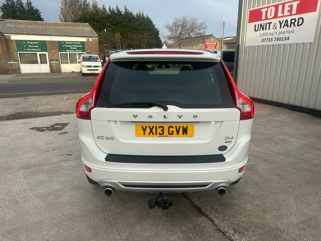 March 2013 VOLVO XC60 2.4 R-Design SUV AWD 163PS 6 Speed Manual. The car has covered just 99,873 miles from new with 7 services recorded and 5 owners in total The car is finished in gleaming Cosmic White with full black leather. The Volvo costs just £215 for 12 months road tax Insurance group 26E and the car returns 44mpg urban, 56mpg extra-urban 50mpg combined and the car produces 163 bhp through a 6 speed manual gearbox so excellent economy and performace4, The car has a high specification that includes cruise control, electric windows x4., electric mirrors, electronic parking brake with auto hold, 4wd, timing belt replaced in 2022, 6 speed manual transmission, multi function steering wheel, start/stop, air conditioning, full leather, ISOFIX, Auxiliary, armrests, on board computer, locking wheel nut, 12V, 18" alloy wheels, rear wiper, tow bar, silver xc side skirts, roof rails & mirrors, twin exhausts, DRL'S, multiple airbags, ABS, Traction Control. A lot of car this for the money and a superb capable family SUV bulletproof reliability and what a looker in cosmic white! Nationwide extendable warranty, Finance available, part exchange welcome. R-Design Leather-Faced Sports Seats with, Power Child Locks - Rear Doors, Family Pack, Driver Support Pack, Auto Dimming Rear View Mirror, Spare Wheel and Jack Kit, Laminated Windows - 360 degree inc Cargo, 12V Socket - Front, 12V Socket - Rear, 18in Alloy Wheels - Cratus Silver Bright, A-Pillar Parking Ticket Holder, ABS - Anti-Lock Brake System, AUX Input, Adaptive Brake Lights, Airbags - Drivers Dual Stage, Airbags - Dual Chamber SIPS, Airbags - Passenger Dual Stage, Amplifier 20W x4, Anti-Theft Alarm, Armrest - Front and Rear Centre with Cup, B-Pillar Ventilation, Central Locking - Remote, Chassis - Sports (R-Design), Chrome Rotary Knobs, Chrome Window Trim, City Safety, Climate Control