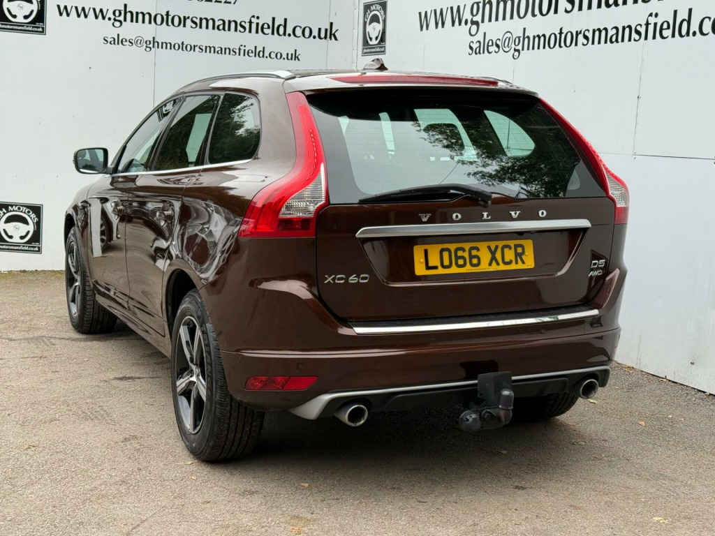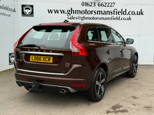 12 MONTHS WARRANTY £299,Boasting an exceptionally low mileage for its age, this 2017 Volvo XC60 D5 R-Design Lux Nav presents a superb ownership proposition. With only two previous owners, this four wheel drive estate has covered just 79121 miles. Under the bonnet lies a powerful 2.4 litre diesel engine, compliant with Euro 6 emissions standards, offering a compelling blend of performance and efficiency. The R-Design Lux Nav trim ensures a premium experience, enhanced by notable features such as Xenon headlights for superior visibility, a rear park assist camera and sensors for effortless manoeuvring, and a Bluetooth handsfree system for seamless connectivity on the go.This Volvo XC60 is designed to impress, with its acceleration from 0 to 60mph in a swift 7.8 seconds highlighting its dynamic capabilities. The generous boot space provides ample room for all your luggage or shopping needs, making it a practical choice for families and adventurers alike. These attributes, combined with its careful previous ownership and low mileage, clearly set this XC60 apart from other vehicles in its class, offering a refined and capable driving experience.. 12V Socket - Front, 12V Socket - Rear, 18in Alloy Wheels - Ixion, A-Pillar Parking Ticket Holder, ABS - Anti-Lock Brake System, Access to a Range of Selected Web Apps and Internet Browser, Active TFT Crystal Drivers Information Display, Adaptive Brake Lights, Air Quality System, Airbags - Drivers Dual Stage, Airbags - Dual Chamber SIPS, Airbags - Passenger Dual Stage, Airbags - SIPS - Side Impact Protection System, Amplifier 45W x4, Annual Map Updates x2, Anti-Theft Alarm, Armrest - Front Centre with Storage, Armrest - Rear Centre with Storage, B-Pillar Ventilation, Bluetooth Handsfree System, Bright Metal Luggage Compartment Threshold, Central Locking - Remote, Charcoal Headlining, Chassis - Sports (R-Design), Chrome Window Trim, City Safety, Climate Control - Electronic, Colour Display Screen - 7in, Cruise Control, Cupholders - Front, Cupholders - Rear, DAB - Digital Audio Broadcasting Radio, DVD Player, Deadlock System, Door Mirrors - Power Folding with Ground Lights, Door Mirrors - Silver Matt (R-Design), Door Sill Tread Plates - Front, Dynamic Stability Control, EBA - Emergency Brake Assistance, EBD - Electronic Brake Distribution, Electric Windows - Front and Rear, European Mapping, Exhaust Pipes - Twin, Floor Mats - Sports (R-Design), Forward Folding Front Passenger Seat, Frameless Auto Dimming Rear View Mirror, Front Grille (R-Design), Front Grille - Matt Silver (R-Design), Front Skid Plate, Front Theatre and Footwell Lights, Front and Rear Reading Lights, Gear Knob - Leather, Grocery Bag Holder, Hard Disk Drive for Music Storage, Headlight Cleaning System, Headlights - Active Bending, Headlights - Cornering Light Function, Headlights - Levelling System, Headlights - Tunnel Sensor, Headlights - Xenon, Height and Reach Adjustable Steering Column, High Level LED Brake Light, High Performance Audio System, Hill Descent Control, Home Safe and Approach Lighting, IC - Inflatable Curtains, IDIS - Intelligent Driver Information System, ISOFIX Child Seat Preparation - Rear, Illuminated Driver and Passenger Vanity Mirrors, Illuminated Gear Knob, Immobiliser, Information Centre, Instrument Cluster - Unique Dials (R-Design), LED Day Running Lights, Level Sensor, Locking Wheel Nuts, Luggage Compartment - Cover, Luggage Compartment - High Level Anchor Points x4, Luggage Compartment - Lockable Load Floor, Passenger Airbag Cut-Off Switch, Power Driver Seat with Memory for Seat and Exterior Mirrors, Power Operated Tailgate, Power Parking Brake, Power Steering System (R-Design), R-Design Aluminium Trim, RDS-TMC - Traffic Message Channel, RSC - Roll Stability Control, Rain Sensor, Rear Diffuser - (R-Design), Rear Park Assist, Roll Over Protection System, Roof Rails - Silver, SIPS - Side Impact Protection System, Seats - Front Height Adjustment, Seats - Front Lumbar Support, Seats - Front Sports (R-Design), Sensus Connect with High Performance Sound, Sensus Navigation, Side Marker Illumination, Skid Plates - Rear, Speakers x8, Spoiler - Rear, Sports Pedals - Aluminium (R-Design), Steering Wheel - 3 Spoke Leather with Chrome Trim and R-Design Logo, Steering Wheel - Off-Black, Steering Wheel Remote Audio Controls, Traction Control, Tyre Pressure Monitoring System, Tyre Sealant Kit and Compressor, USB and AUX Input, Unique R-Design Lower Front Bumper, Versatile Split Folding Rear Seat - 40-20-40, Visible VIN Plate, Voice Activated Control, Volume Sensor, WHIPS - Whiplash Protection System - Front Seats, Warning Triangle, Rear Park Assist Camera, Winter Pack with Active Bending Lights, R-Design Leather Faced - Off Black. Full service history