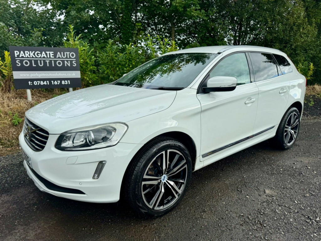 15 Volvo XC60 2.4 D5 SE Lux 220 AWD Geartronic 5Dr, AUTOMATIC & 4WD, 220 BHP, Ice White, Upgraded 20'' Inspiration Alloys, Auto Xenon Headlights, Rain Sensor, Rear Privacy Glass, Comfort Suspension, F/Fogs, Front and Rear Parking Sensors, Exterior Aluminium Pack, Sun Protection Windscreen, Factory Remote C/Locking and Alarm, Power Tailgate, Electric Memory Antracite Leather Interior with Factory Heated Option, Aluminium Dash Inlay, C/Armrest, Multi Function Sports Leather Steering Wheel and Gearknob, Dual Digital Climate Control/Aircon, Volvo Premium Sat Nav/Radio/CD/AUX System, Factory Bluetooth, Driver Info System, Safety Pack inc DSC and Isofix, Auto Safety Locking, E/Windows x 4, Electric Folding Mirrors, Full Years Mot, Service History, 35 Mpg, Great Condition Inside and Out, Great Spec Auto 4x4, Super Driver!! px consideredFOR MORE PICTURES VIEW WEBSITE ON; www.parkgateautosolutions.co.ukALL MAJOR CARDS ACCEPTED!FINANCE AVAILABLE SUBJECT TO STATUS! v socket - front, 12v socket - rear, 18in alloy wheels - pan, a-pillar parking ticket holder, abs - anti-lock brake system, access to a range of selected web apps and internet browser, active tft crystal drivers information display, adaptive brake lights, air quality system, airbags - drivers dual stage, airbags - dual chamber sips, airbags - passenger dual stage, airbags - sips - side impact protection system, amplifier 45w x4, annual map updates x2, anti-theft alarm, armrest - front centre with storage, armrest - rear centre with storage, b-pillar ventilation, bluetooth handsfree system, bright metal luggage compartment threshold, central locking - remote, chrome window trim, city safety, climate control - electronic, colour display screen - 7in, cruise control, cupholders - front, cupholders - rear, dab - digital audio broadcasting radio, dvd player, deadlock system, door mirrors - body coloured, door mirrors - power folding with ground lights, door sill tread plates - front, dynamic chassis, dynamic stability control, eba - emergency brake assistance, ebd - electronic brake distribution, electric windows - front and rear, european mapping, exhaust pipes - twin, floor mats, forward folding front passenger seat, frameless auto dimming rear view mirror, front skid plate, front theatre and footwell lights, front and rear reading lights, gear knob - leather, grocery bag holder, hard disk drive for music storage, headlight cleaning system, headlights - active bending, headlights - cornering light function, headlights - levelling system, headlights - tunnel sensor, headlights - xenon, headlining - quartz grey, height and reach adjustable steering column, high level led brake light, high performance audio system, hill descent control, home safe and approach lighting, ic - inflatable curtains, idis - intelligent driver information system, isofix child seat preparation - rear, illuminated driver and passenger vanity mirrors, illuminated gear knob, immobiliser, information centre, interior trim - shimmer graphite aluminium, led day running lights, level sensor, locking wheel nuts, luggage compartment - cover, luggage compartment - high level anchor points x4, luggage compartment - lockable load floor, luggage compartment - net, passenger airbag cut-off switch, power driver seat with memory for seat and exterior mirrors, power operated tailgate, power parking brake, power steering system, rds-tmc - traffic message channel, rsc - roll stability control, rain sensor, rear park assist, roll over protection system, roof rails - silver, sips - side impact protection system, seats - front height adjustment, seats - front lumbar support, sensus connect with high performance sound, sensus navigation, side marker illumination, skid plates - rear, speakers x8, spoiler - rear, steering wheel - 3 spoke leather with chrome trim, steering wheel - off-black, steering wheel remote audio controls, traction control, tyre pressure monitoring system, tyre sealant kit and compressor, usb and aux input, versatile split folding rear seat - 40-20-40, visible vin plate, voice activated control, volume sensor, whips - whiplash protection system - front seats, warning triangle, winter pack with active bending lights, tinted windows - dark rear doors and cargo area, front and rear park assist, heated front seats, leather-faced - off black, 20in alloy wheels - titania diamond cut black, inscription pack - inscription soft leather - off black