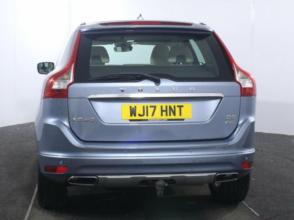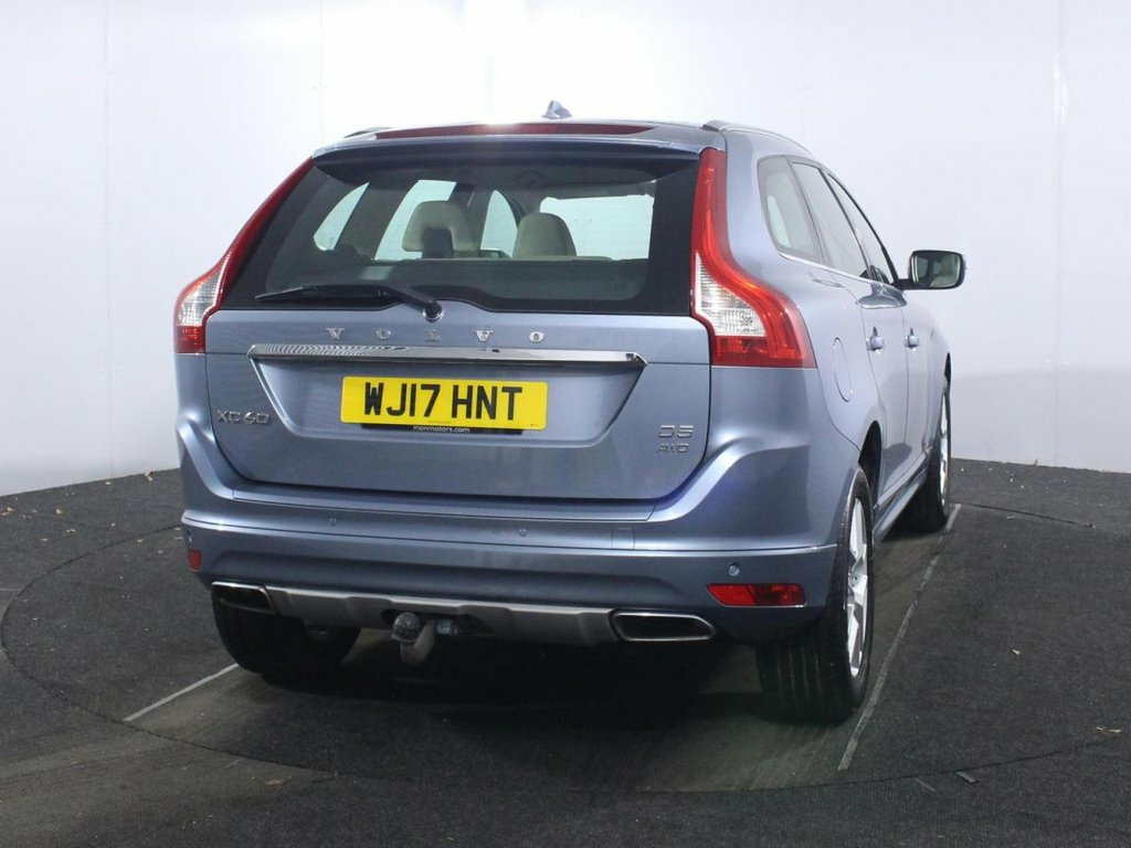 Service history with 5 services. Last serviced at 52,592 miles. Elevate your drives with premium Swedish luxury and strong diesel performance in this 2017 Volvo XC60 2.4 D5 SE Lux Nav, a refined 5-door AWD SUV finished in Mussel Blue with 18-inch Tucan alloy wheels, silver roof rails and chrome window/door trim. The potent 220 ps 2.4-litre D5 twin-turbo diesel engine paired with smooth automatic transmission and AWD delivers effortless power, Euro 6 efficiency around 50 mpg and confident handling for family adventures or motorway cruising. SE Lux Nav trim adds power-operated tailgate, keyless drive with PCC and Winter Pack with active bending xenon headlights for standout premium appeal. Inside, the XC60 SE Lux Nav cabin exudes quality with soft beige leather-faced upholstery, power driver's seat with memory for seat/mirrors, height-adjustable passenger seat with lumbar support, 3-spoke leather steering wheel with chrome trim and frameless auto-dimming rear view mirror. Sensus Connect infotainment with high-performance sound, DAB radio, Bluetooth hands-free, Sensus Navigation and Active TFT crystal display provide modern connectivity, while dual-zone ECC climate control with AQS, front/rear reading lights, grocery bag holder and versatile 40/20/40 split-folding rear seats ensure family comfort and practicality. Safety leads the class with City Safety autonomous braking, DSTC stability/traction control with Corner Traction Control and Roll Stability Control, SIPS side 12V Socket - Front and Rear Tunnel Conso, 18in Alloy Wheels - Tucan, 3 Spoke Leather Steering Wheel with Chro, 4 Aluminium High Level Anchor Points in , A-Pillar Parking Ticket Holder, ABS - Anti-Lock Brake System and EBA - E, Active Bending Xenon Headlights, Active TFT Crystal Drivers Information D, Adaptive Brake Lights including High Lev, Anti-Theft Alarm including Immobiliser -, Auto-On Headlights, Autofolding Power Door Mirrors with Grou, B-Pillar Ventilation, Bluetooth Handsfree System, Bright Metal Luggage Compartment Thresho, Chrome Trim Lower Door Moulding, Chrome Window Trim Surround, City Safety, Colour Co-ordinated Power Adjustable and, Corner Traction Control, Cruise Control, DA