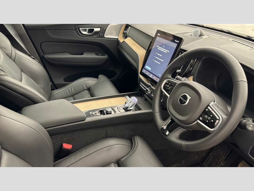 Front seat massage, Natural Driftwood decor, Tailored sport steering wheel. Charcoal, 8-speed Geartronic? automatic, Pedals, Crystal gear shift by Orrefors?, Two-zone climate system, Afterrun parking climate, Passenger airbag cut-off switch, Dual-stage airbags, Knee airbag. driver side, Panoramic roof, Blond headlining, Road Sign Information, Lane Keeping Aid and Lane Departure Warning, Front grille with high-gloss black inserts, Heated grill emblem, Full-LED headlights, Headlight cleaning, Trailer lamp control, 12.3-inch driver display, Google Assistant. Google Maps and Google Play Store, Adaptive cruise control, Head-up display, Intelligent Speed Assist (ISA), Volvo Cars App remote functions, Air-ventilated subwoofer, Digital Audio Broadcasting (DAB+), Bowers & Wilkins High Fidelity audio system, Power retractable door mirrors, Power passenger seat with memory, Wireless phone charging, Automatic door locking, Remote key, Door mirror covers. high-gloss black, Double locking, Tinted rear windows, BLIS? and Cross Traffic Alert, Alarm, Power child safety lock, Power tailgate, Keyless entry with hands-free power tailgate, Air purifier and remote cabin pre-cleaning, Digital owners manual, Tailored dashboard, Ventilated nappa leather upholstery, Front seat massage, Power driver seat with memory, Power passenger seat, Front seat ventilation, Heated front seats, Heated rear seats, Power folding rear head restraints, 5 seats, Mechanical release second seat row, Power side bolsters, Power 4-way lumbar support, Textile interior cabin floor mats, Protection net, Rear centre armrest, Illuminated vanity mirrors, Interior illumination. high level, Power outlet. load compartment, First-aid kit, Load cover. manual, Auto-dimmed rear view mirrors, Power cushion extension. driver, Hill Start Assist, Tyre pressure monitoring, Active air suspension, Oncoming Lane Mitigation, Rear Collision Warning, Hill Descent Control, Slippery road alert, Emergency brake light, Heated steering wheel, Adaptive power steering, 20? 5-Y spoke glossy black diamond cut, Temporary mobility kit, Lockable wheel bolts, Wiper blades with integrated washers, Body-coloured door handles with ground lighting, Tailgate scuff plate. stainless steel, Volvo tread plates. aluminium, High-gloss black side window trim, Roof rails. glossy black, Warning triangle, Tempered side and rear windows, Park assist. front. rear and sides, Pilot Assist, Electric cabin heater and cooler, 360? camera, Alcohol lock software (not available in the UK), Protective cap kit. Matt Tech Grey, Apple CarPlay, Comfort front seats, 11.2-inch centre display, Charging station cable. 6m (16A), Whiplash injury protection, Inflatable Curtain, Side impact protection, Intelligent Driver Information System (IDIS), High positioned rear brake lights, ISOFIX mounting points. rear seat, Safety belts, Rain sensor, Steering wheel remote control, Humidity sensor, Start/Stop technology, Bluetooth? connection, Android Auto, This car comes fully prepared under the Volvo Selekt programme so call us on 01962 881 414 to arrange a viewing or a personalised video walk around to watch from the comfort of your home! Front seat massage