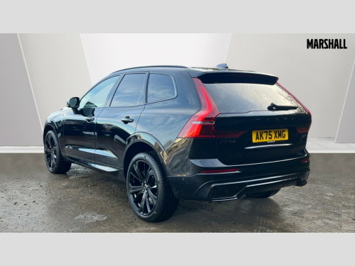 Volvo XC60 2.0 T6 [350] PHEV Plus Black Ed 5dr AWD Geartronic 11.2" centre console touch screen, 12.3" Progressive Driver Display, 360 degree surround view parking camera with side proximity sensors, Adaptive cruise control, Adjustable steering wheel force, Android auto (Wired), Apple carplay (wired), Bluetooth handsfree system, Drive mode settings, Driver alert control with lane keeping aid, Driver understanding system, Emergency services call system, Front and rear park assist, Google Automotive Services, Intelligent speed assistance, Oncoming Lane Mitigation, PAS, Power operated tailgate with handsfree opening and closing, Service interval indicator, Speed limiter, Speed sensitive steering, Trip computer, Volvo cars services with app, Volvo on call with App, Wireless/Inductive Mobile Phone Charging, 2 phase on board charger 6.4kW (home charging limited to 3.7kW), 6m 3 phase 16amp Type 2 / mode 3 charge cable, 8 speed automatic transmission with start/stop + manual change functions, Electric rear axle drive, Recharging port located in nearside front wing, DAB Digital radio, Low speed exterior sound speaker, Premium Sound by Harman Kardon, dirac unison, dolby pro logic II surround sound, 13 speakers/600W output and fresh air subwoofer, Steering wheel remote infotainment controls, Adaptive brake lights with high level LED brake lights, Auto dimming interior + exterior mirrors, Automatic headlight levelling system, Automatic LED Headlights + Active high beam incorporating daytime running lights, Dark tinted windows for rear side windows and cargo area, Electric adjustable/heated/auto power folding door mirrors, Electric front+rear windows, Front aluminium tread plates, Heated front windscreen, High gloss black door mirrors and window surround, High gloss black front and rear bumper decoratives, High gloss black front grille, Surround, Strikethrough and Ironmark, High gloss black rear model, engine and volvo logo badges, Home safe and approach lighting, Integrated roof rails in high gloss black, Puddle lights, Rain sensor with automatic windscreen wiper activation, Rear side wing doors, Rear wiper, Roof antenna, Roof spoiler, Tinted windscreen, Visible VIN plate, 12V socket in front tunnel console and luggage compartment, 2 zone electronic climate control with Clean zone air quality system and pollen filter, 3 seat bench in 2nd row, 3 Spoke tailored steering wheel with chrome trim, A-pillar parking ticket holder, Air purifier particulate matter (PM) 2.5 filter, B Pillar ventilation, Bright metal luggage scuff plate, Centre console cupholders and storage, Charcoal floor mats, Contour sports seats with nappa soft leather/textile upholstery, Front and rear courtesy lights, Front and rear door pocket illumination, Front cupholder illumination, Front footwell illumination, Front reading lights, Front seat cushion extensions, Glovebox compartment with illumination, Head restraints for all seats, Heated front seats, Heated steering wheel, Height/reach adjustable steering column, Illuminated luggage compartment, Illuminated vanity mirrors + ticket holder, Inner door release handle illumination, ISOFIX attachment on outer rear seats, Load cover, Load protection net, Multi directional lumbar support, Power driver seat with memory + exterior mirrors memory, Power height adjustable passenger seat, Power passenger seat with memory, Rear armrest with cupholder, Rear footwell and front and rear side step illumination, Rear reading lights, Rear seat concealed storage, Single front passenger seat, Tailgate illumination and ambient door lighting, Underfloor stowage compartment, Versatile split folding rear seat - 60/40, Driver assist pack without Adaptive cruise control - XC60, 5 three point seatbelts, City safety with steering support with Pedestrian + cyclist + front collision warning with full auto brake and rear auto brake, Drivers knee airbag, Dual stage driver/passenger airbags, Electronic parking brake with auto hold, First aid kit, Front seats SIPS airbags, Hill descent control - Off-road drive mode, Hill start assist, IC (Inflatable Curtains) - Full Length, Passenger airbag cut-off device, Power child locks on rear doors, Road sign information display, Run off Road Mitigation, Run off Road Protection, Seatbelt reminder and pretensioners, SIPS (Side Impact Protection System), Slippery road and hazard light alert, Stability and Traction Control with Spin control, Engine Drag Control and Corner Traction Control, Tyre pressure monitoring system, Vehicle deceleration control with Anti-lock Brake System, Electronic Brake Distribution and Emergency Brake Assist, Warning triangle, WHIPS whiplash protection system - front, Anti-theft alarm including immobiliser/volume sensor + level sensor, Key integrated remote control central locking + fuel flap with deadlocking system and auto open/close power windows, Keyless Drive (includes Keyless Entry and Keyless Start), Locking wheel nuts, Private locking for tailgate, 21" 5 Double spoke high gloss black alloy wheels, Summer tyres, Tyre sealant kit + 12v compressor