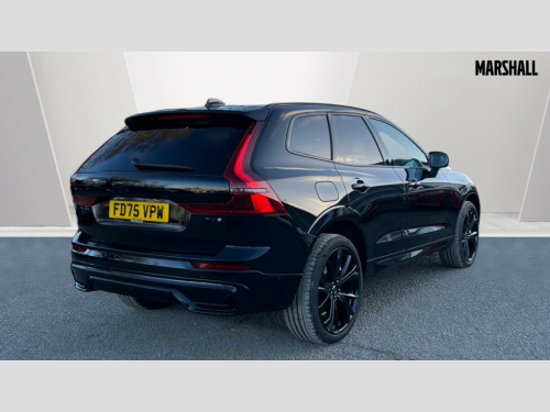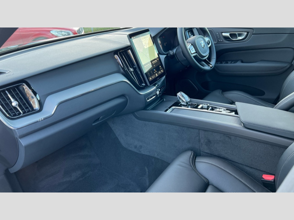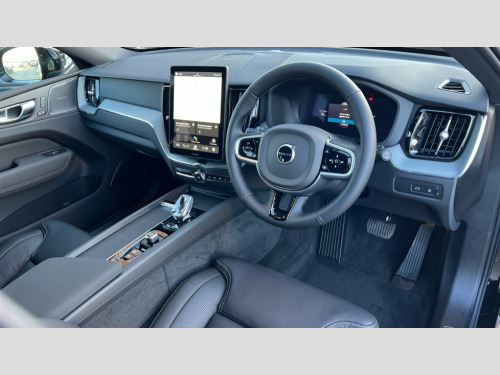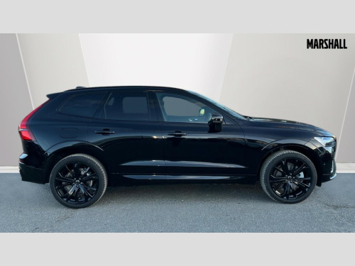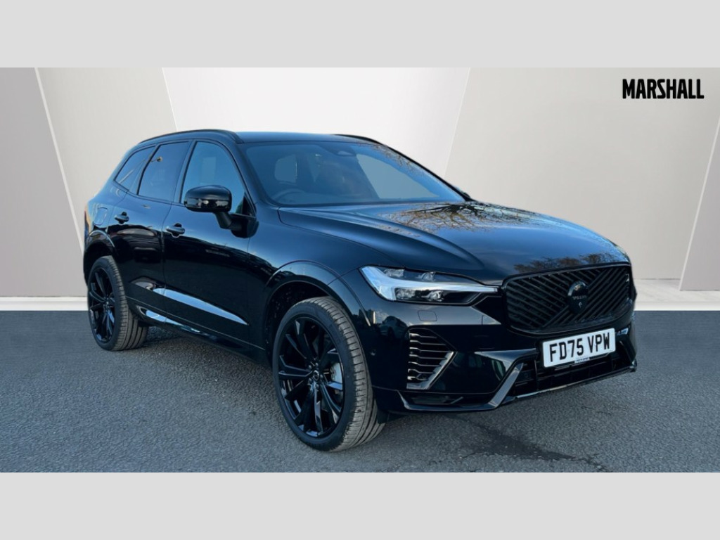 Volvo XC60 2.0 T6 [350] PHEV Plus Pro Black Ed 5dr AWD Gtron 11.2" centre console touch screen, 12.3" Progressive Driver Display, 360 degree surround view parking camera with side proximity sensors, Adaptive cruise control, Adjustable steering wheel force, Android auto (Wired), Apple carplay (wired), Bluetooth handsfree system, Drive mode settings, Driver alert control with lane keeping aid, Driver understanding system, Emergency services call system, Front and rear park assist, Google Automotive Services, Intelligent speed assistance, Oncoming Lane Mitigation, PAS, Power operated tailgate with handsfree opening and closing, Service interval indicator, Speed limiter, Speed sensitive steering, Trip computer, Volvo cars services with app, Volvo on call with App, Wireless/Inductive Mobile Phone Charging, 2 phase on board charger 6.4kW (home charging limited to 3.7kW), 6m 3 phase 16amp Type 2 / mode 3 charge cable, 8 speed automatic transmission with start/stop + manual change functions, Electric rear axle drive, Recharging port located in nearside front wing, DAB Digital radio, Low speed exterior sound speaker, Premium Sound by Harman Kardon, dirac unison, dolby pro logic II surround sound, 13 speakers/600W output and fresh air subwoofer, Steering wheel remote infotainment controls, Active bending headlights with adaptive shadow technology, Adaptive brake lights with high level LED brake lights, Auto dimming interior + exterior mirrors, Automatic headlight levelling system, Automatic LED Headlights + Active high beam incorporating daytime running lights, Dark tinted windows for rear side windows and cargo area, Electric adjustable/heated/auto power folding door mirrors, Electric front+rear windows, Front aluminium tread plates, Headlight cleaning system, Heated front windscreen, High gloss black door mirrors and window surround, High gloss black front and rear bumper decoratives, High gloss black front grille, Surround, Strikethrough and Ironmark, High gloss black rear model, engine and volvo logo badges, Home safe and approach lighting, Integrated roof rails in high gloss black, Puddle lights, Rain sensor with automatic windscreen wiper activation, Rear side wing doors, Rear wiper, Roof antenna, Roof spoiler, Tinted windscreen, Visible VIN plate, 12V socket in front tunnel console and luggage compartment, 2 zone electronic climate control with Clean zone air quality system and pollen filter, 3 seat bench in 2nd row, 3 Spoke tailored steering wheel with chrome trim, A-pillar parking ticket holder, Air purifier particulate matter (PM) 2.5 filter, B Pillar ventilation, Bright metal luggage scuff plate, Centre console cupholders and storage, Charcoal floor mats, Front and rear courtesy lights, Front and rear door pocket illumination, Front cupholder illumination, Front footwell illumination, Front reading lights, Front seat cushion extensions, Glovebox compartment with illumination, Head restraints for all seats, Heated front seats, Heated steering wheel, Height/reach adjustable steering column, Illuminated luggage compartment, Illuminated vanity mirrors + ticket holder, Inner door release handle illumination, ISOFIX attachment on outer rear seats, Load cover, Load protection net, Multi directional lumbar support, Nappa soft leather perforated and ventilated upholstery with front seat backrest massage and power side support, Power driver seat with memory + exterior mirrors memory, Power height adjustable passenger seat, Power passenger seat with memory, Rear armrest with cupholder, Rear footwell and front and rear side step illumination, Rear reading lights, Rear seat concealed storage, Single front passenger seat, Tailgate illumination and ambient door lighting, Underfloor stowage compartment, Versatile split folding rear seat - 60/40, Driver assist pack without Adaptive cruise control - XC60, 5 three point seatbelts, City safety with steering support with Pedestrian + cyclist + front collision warning with full auto brake and rear auto brake, Drivers knee airbag, Dual stage driver/passenger airbags, Electronic parking brake with auto hold, First aid kit, Front seats SIPS airbags, Hill descent control - Off-road drive mode, Hill start assist, IC (Inflatable Curtains) - Full Length, Passenger airbag cut-off device, Power child locks on rear doors, Road sign information display, Run off Road Mitigation, Run off Road Protection, Seatbelt reminder and pretensioners, SIPS (Side Impact Protection System), Slippery road and hazard light alert, Stability and Traction Control with Spin control, Engine Drag Control and Corner Traction Control, Tyre pressure monitoring system, Vehicle deceleration control with Anti-lock Brake System, Electronic Brake Distribution and Emergency Brake Assist, Warning triangle, WHIPS whiplash protection system - front, Anti-theft alarm including immobiliser/volume sensor + level sensor, Key integrated remote control central locking + fuel flap with deadlocking system and auto open/close power windows, Keyless Drive (includes Keyless Entry and Keyless Start), Locking wheel nuts, Private locking for tailgate, 21" 5 Double spoke high gloss black alloy wheels, Summer tyres, Tyre sealant kit + 12v compressor