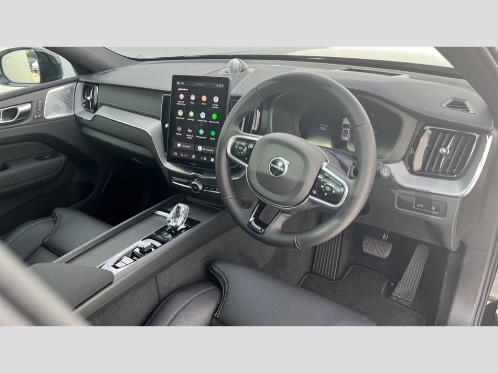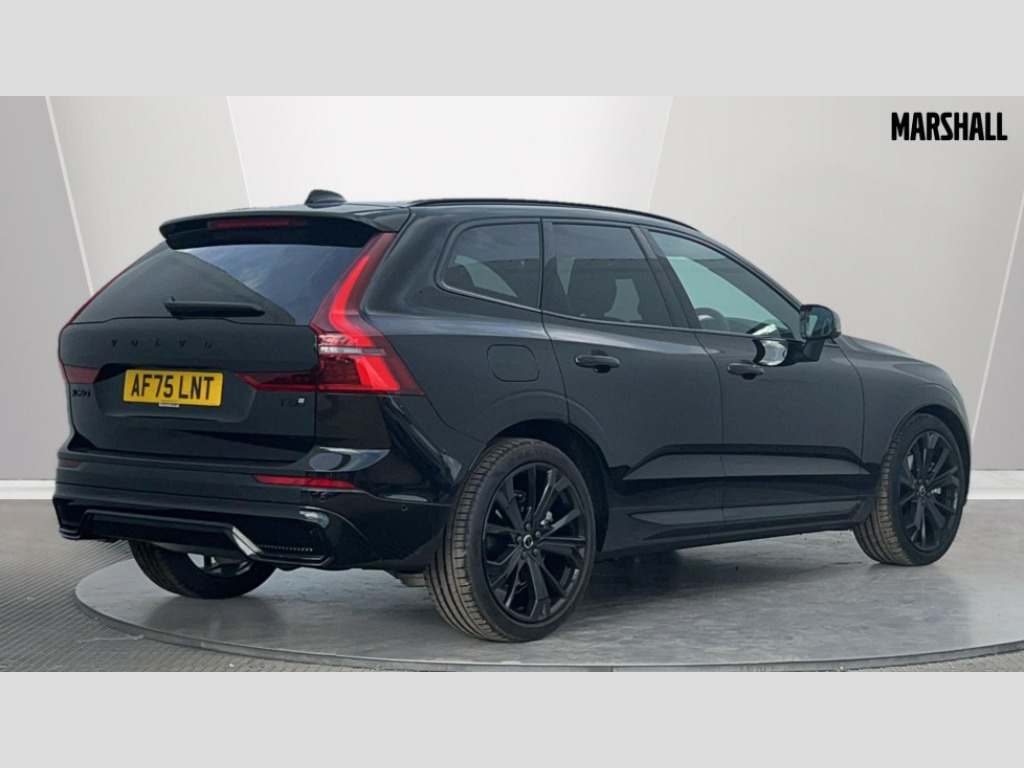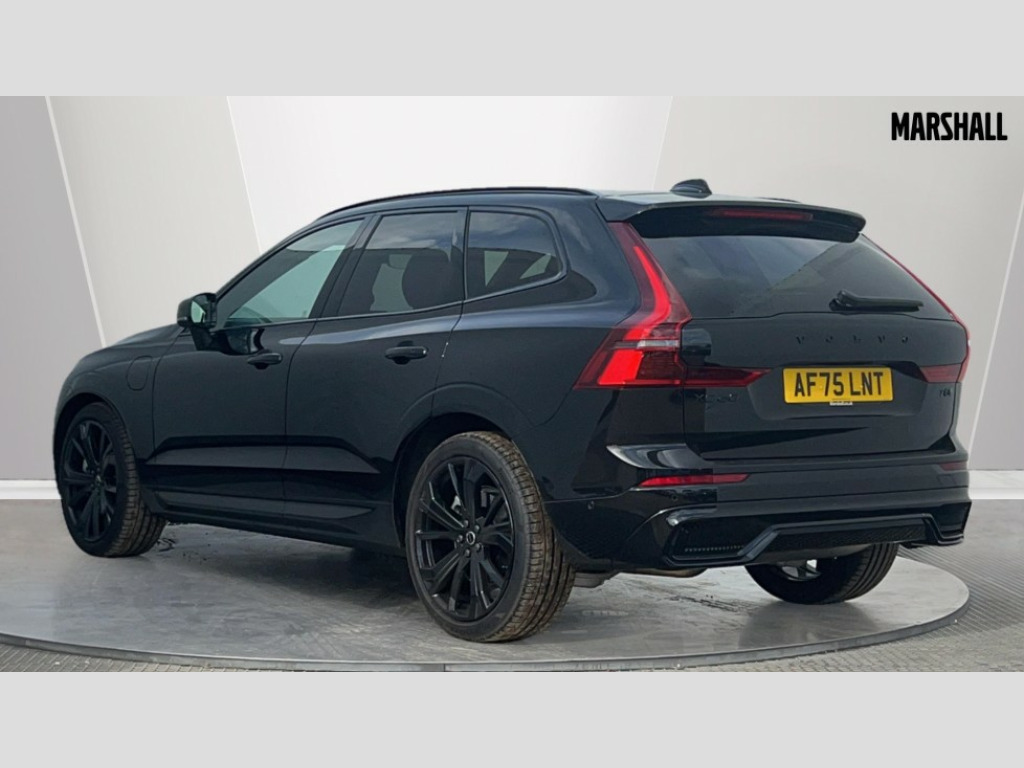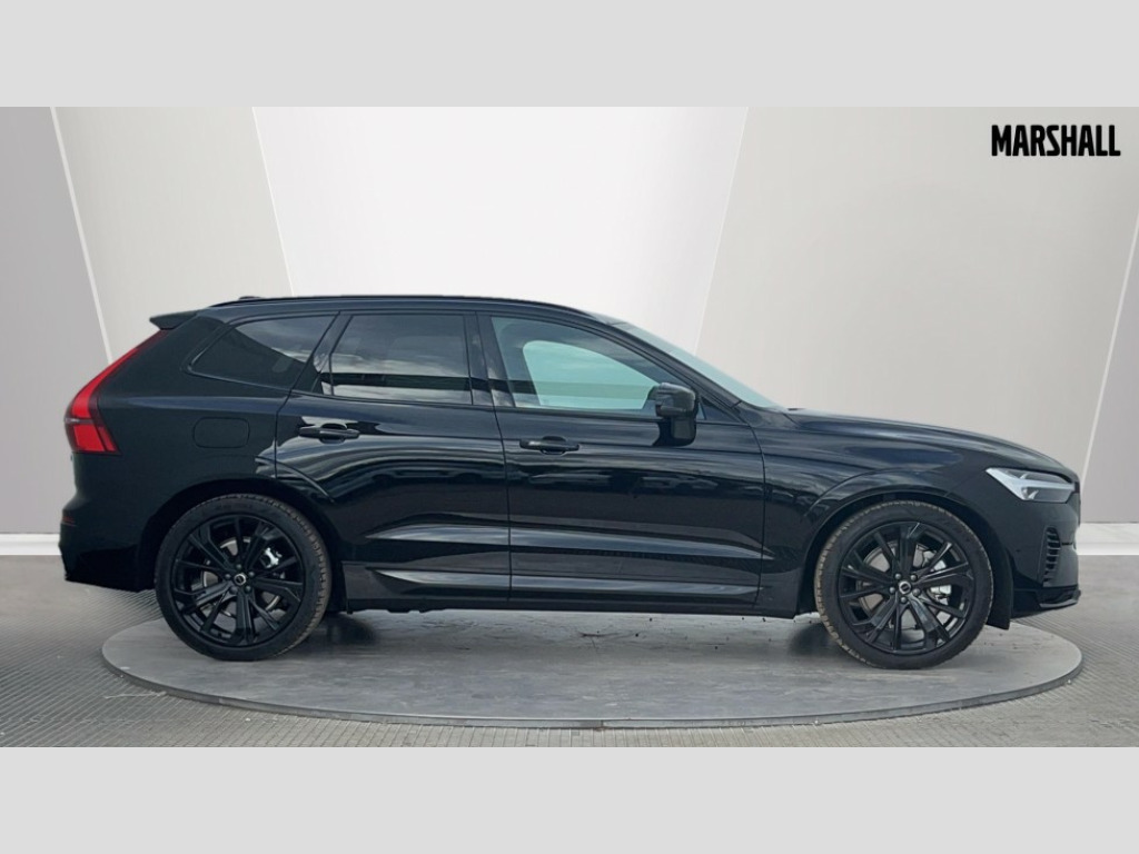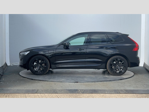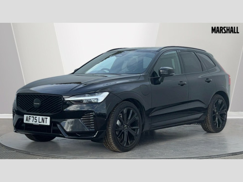 Volvo XC60 2.0 T8 455 PHEV Ultra Black Ed 5dr AWD Geartronic 11.2" centre console touch screen, 12.3" Progressive Driver Display, 360 degree surround view parking camera with side proximity sensors, Adaptive cruise control, Adjustable steering wheel force, Android auto (Wired), Apple carplay (wired), Bluetooth handsfree system, Drive mode settings, Driver alert control with lane keeping aid, Emergency services call system, Front and rear park assist, Google Automotive Services, Intelligent speed assistance, Oncoming Lane Mitigation, PAS, Power operated tailgate with handsfree opening and closing, Service interval indicator, Speed limiter, Speed sensitive steering, Trip computer, Volvo cars services with app, Volvo on call with App, Wireless/Inductive Mobile Phone Charging, 2 phase on board charger 6.4kW (home charging limited to 3.7kW), 6m 3 phase 16amp Type 2 / mode 3 charge cable, 8 speed automatic transmission with start/stop + manual change functions, Active four-C chassis + four corner adaptive damper with electronic rear air suspension, Electric rear axle drive, Recharging port located in nearside front wing, DAB Digital radio, Low speed exterior sound speaker, Premium Sound by Bowers and Wilkins, dirac live, dolby pro logic II surround sound, 14 speakers/1100W output and subwoofer, Steering wheel remote infotainment controls, Active bending headlights with adaptive shadow technology, Adaptive brake lights with high level LED brake lights, Auto dimming interior + exterior mirrors, Automatic headlight levelling system, Automatic LED Headlights + Active high beam incorporating daytime running lights, Dark tinted windows for rear side windows and cargo area, Electric adjustable/heated/auto power folding door mirrors, Electric front+rear windows, Front aluminium tread plates, Headlight cleaning system, High gloss black door mirrors and window surround, High gloss black front and rear bumper decoratives, High gloss black front grille, Surround, Strikethrough and Ironmark, High gloss black rear model, engine and volvo logo badges, Home safe and approach lighting, Integrated roof rails in high gloss black, Power glass tilt and slide panoramic sunroof with sun curtain, Puddle lights, Rain sensor with automatic windscreen wiper activation, Rear side wing doors, Rear wiper, Roof antenna, Roof spoiler, Tinted windscreen, Visible VIN plate, 12V socket in front tunnel console and luggage compartment, 2 zone electronic climate control with Clean zone air quality system and pollen filter, 3 seat bench in 2nd row, 3 Spoke tailored steering wheel with chrome trim, A-pillar parking ticket holder, Air purifier particulate matter (PM) 2.5 filter, B Pillar ventilation, Bright metal luggage scuff plate, Centre console cupholders and storage, Charcoal floor mats, Front and rear courtesy lights, Front and rear door pocket illumination, Front cupholder illumination, Front footwell illumination, Front headrests, Front reading lights, Front seat cushion extensions, Glovebox compartment with illumination, Heated front seats, Heated steering wheel, Height/reach adjustable steering column, Illuminated luggage compartment, Illuminated vanity mirrors + ticket holder, Inner door release handle illumination, ISOFIX attachment on outer rear seats, Load cover, Load protection net, Multi directional lumbar support, Nappa soft leather perforated and ventilated upholstery with front seat backrest massage and power side support, Power driver seat with memory + exterior mirrors memory, Power folding rear headrests, Power height adjustable passenger seat, Power passenger seat with memory, Rear armrest with cupholder, Rear footwell and front and rear side step illumination, Rear reading lights, Rear seat concealed storage, Single front passenger seat, Tailgate illumination and ambient door lighting, Underfloor stowage compartment, Versatile split folding rear seat - 60/40, Driver assist pack without Adaptive cruise control - XC60, 5 three point seatbelts, City safety with steering support with Pedestrian + cyclist + front collision warning with full auto brake and rear auto brake, Drivers knee airbag, Dual stage driver/passenger airbags, Electronic parking brake with auto hold, First aid kit, Front seats SIPS airbags, Hill descent control - Off-road drive mode, Hill start assist, IC (Inflatable Curtains) - Full Length, Passenger airbag cut-off device, Power child locks on rear doors, Run off Road Mitigation, Run off Road Protection, Seatbelt reminder and pretensioners, SIPS (Side Impact Protection System), Slippery road and hazard light alert, Stability and Traction Control with Spin control, Engine Drag Control and Corner Traction Control, Tyre pressure monitoring system, Vehicle deceleration control with Anti-lock Brake System, Electronic Brake Distribution and Emergency Brake Assist, Warning triangle, WHIPS whiplash protection system - front, Anti-theft alarm including immobiliser/volume sensor + level sensor, Key integrated remote control central locking + fuel flap with deadlocking system and auto open/close power windows, Keyless Drive (includes Keyless Entry and Keyless Start), Locking wheel nuts, Private locking for tailgate, Tailored instrument panel with contrast stitching, Summer tyres, Tyre sealant kit + 12v compressor