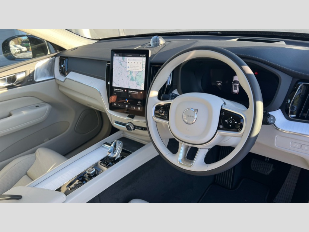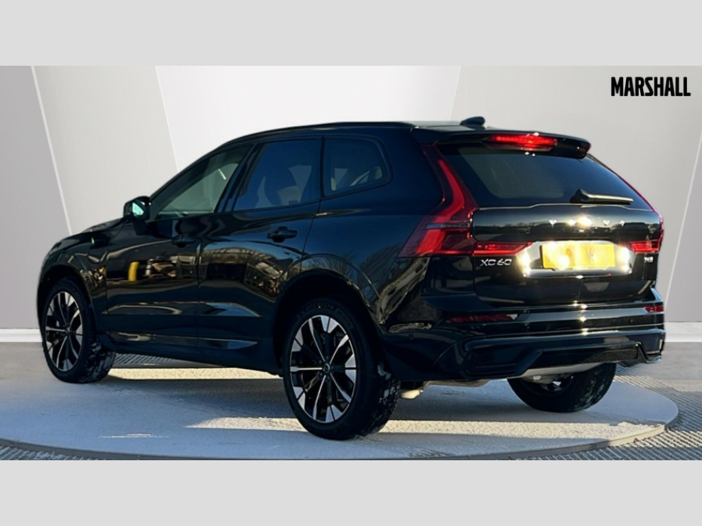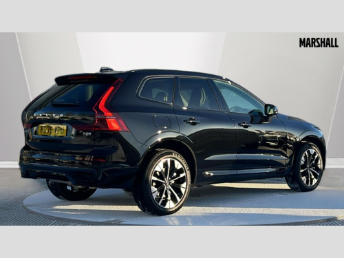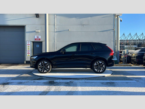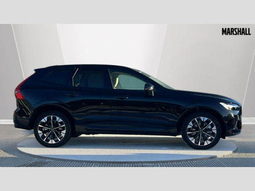 Volvo XC60 2.0 T8 [455] PHEV Ultra Dark 5dr AWD Geartronic 11.2" centre console touch screen, 12.3" Progressive Driver Display, 360 degree surround view parking camera with side proximity sensors, Adaptive cruise control, Adjustable steering wheel force, Android auto (Wired), Apple carplay (wired), Bluetooth handsfree system, Drive mode settings, Driver alert control with lane keeping aid, Driver understanding system, Emergency services call system, Front and rear park assist, Google Automotive Services, Intelligent speed assistance, Oncoming Lane Mitigation, PAS, Power operated tailgate with handsfree opening and closing, Service interval indicator, Speed limiter, Speed sensitive steering, Trip computer, Volvo cars services with app, Volvo on call with App, Wireless/Inductive Mobile Phone Charging, 2 phase on board charger 6.4kW (home charging limited to 3.7kW), 6m 3 phase 16amp Type 2 / mode 3 charge cable, 8 speed automatic transmission with start/stop + manual change functions, Active four-C chassis + four corner adaptive damper with electronic rear air suspension, Electric rear axle drive, Recharging port located in nearside front wing, DAB Digital radio, Low speed exterior sound speaker, Premium sound by Bowers and Wilkins, dirac live, dolby pro logic II surround sound, 14 speakers/1100W output and fresh air subwoofer, Steering wheel remote infotainment controls, Active bending headlights with adaptive shadow technology, Adaptive brake lights with high level LED brake lights, Auto dimming interior + exterior mirrors, Automatic headlight levelling system, Automatic LED Headlights + Active high beam incorporating daytime running lights, Dark tinted windows for rear side windows and cargo area, Electric adjustable/heated/auto power folding door mirrors, Electric front+rear windows, Front aluminium tread plates, Headlight cleaning system, High gloss black door mirrors and window surround, High gloss black front and rear bumper decoratives, High gloss black mesh front grille with high gloss black surround, Home safe and approach lighting, Integrated roof rails in high gloss black, Power glass tilt and slide panoramic sunroof with sun curtain, Puddle lights, Rain sensor with automatic windscreen wiper activation, Rear side wing doors, Rear wiper, Roof antenna, Roof spoiler, Tinted windscreen, Visible VIN plate, 12V socket in front tunnel console and luggage compartment, 2 zone electronic climate control with Clean zone air quality system and pollen filter, 3 seat bench in 2nd row, A-pillar parking ticket holder, Air purifier particulate matter (PM) 2.5 filter, B Pillar ventilation, Bright metal luggage scuff plate, Centre console cupholders and storage, Charcoal floor mats, Front and rear courtesy lights, Front and rear door pocket illumination, Front cupholder illumination, Front footwell illumination, Front reading lights, Front seat cushion extensions, Glovebox compartment with illumination, Head restraints for all seats, Heated front seats, Heated steering wheel, Height/reach adjustable steering column, Illuminated luggage compartment, Illuminated vanity mirrors + ticket holder, Inner door release handle illumination, ISOFIX attachment on outer rear seats, Load cover, Load protection net, Multi directional lumbar support, Power driver seat with memory + exterior mirrors memory, Power folding rear headrests, Power passenger seat with memory, Rear armrest with cupholder, Rear footwell and front and rear side step illumination, Rear reading lights, Rear seat concealed storage, Single front passenger seat, Tailgate illumination and ambient door lighting, Underfloor stowage compartment, Versatile split folding rear seat - 60/40, Driver assist pack without Adaptive cruise control - XC60, 5 three point seatbelts, City safety with steering support with Pedestrian + cyclist + front collision warning with full auto brake and rear auto brake, Drivers knee airbag, Dual stage driver/passenger airbags, Electronic parking brake with auto hold, First aid kit, Front seats SIPS airbags, Hill descent control - Off-road drive mode, Hill start assist, IC (Inflatable Curtains) - Full Length, Passenger airbag cut-off device, Power child locks on rear doors, Run off Road Mitigation, Run off Road Protection, Seatbelt reminder and pretensioners, SIPS (Side Impact Protection System), Slippery road and hazard light alert, Stability and Traction Control with Spin control, Engine Drag Control and Corner Traction Control, Tyre pressure monitoring system, Vehicle deceleration control with Anti-lock Brake System, Electronic Brake Distribution and Emergency Brake Assist, Warning triangle, WHIPS whiplash protection system - front, Anti-theft alarm including immobiliser/volume sensor + level sensor, Key integrated remote control central locking + fuel flap with deadlocking system and auto open/close power windows, Keyless Drive (includes Keyless Entry and Keyless Start), Locking wheel nuts, Private locking for tailgate, Tailored instrument panel with contrast stitching, Summer tyres, Tyre sealant kit + 12v compressor