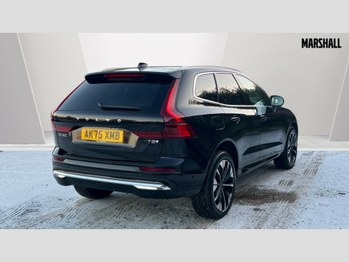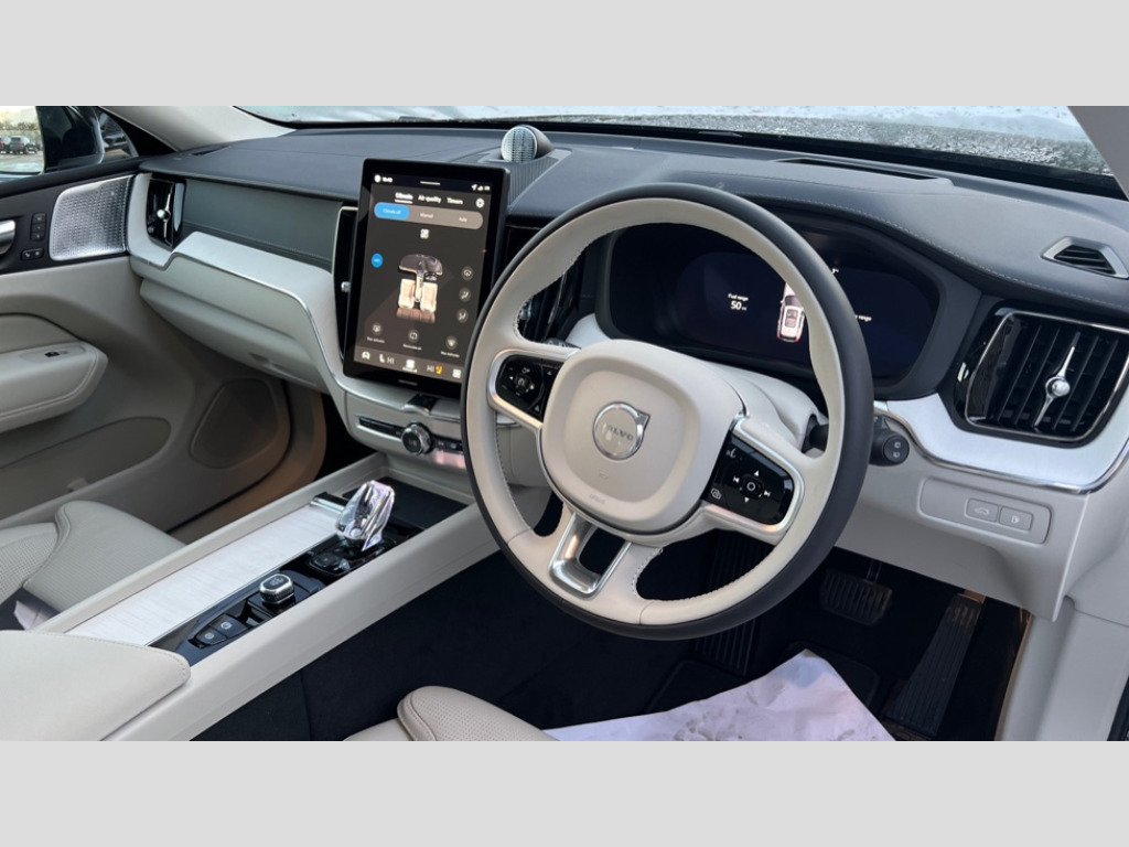 Volvo XC60 2.0 T8 [455] PHEV Ultra Dark 5dr AWD Geartronic 11.2" centre console touch screen, 12.3" Progressive Driver Display, 360 degree surround view parking camera with side proximity sensors, Adaptive cruise control, Adjustable steering wheel force, Android auto (Wired), Apple carplay (wired), Bluetooth handsfree system, Drive mode settings, Driver alert control with lane keeping aid, Driver understanding system, Emergency services call system, Front and rear park assist, Google Automotive Services, Intelligent speed assistance, Oncoming Lane Mitigation, PAS, Power operated tailgate with handsfree opening and closing, Service interval indicator, Speed limiter, Speed sensitive steering, Trip computer, Volvo cars services with app, Volvo on call with App, Wireless/Inductive Mobile Phone Charging, 2 phase on board charger 6.4kW (home charging limited to 3.7kW), 6m 3 phase 16amp Type 2 / mode 3 charge cable, 8 speed automatic transmission with start/stop + manual change functions, Active four-C chassis + four corner adaptive damper with electronic rear air suspension, Electric rear axle drive, Recharging port located in nearside front wing, DAB Digital radio, Low speed exterior sound speaker, Premium sound by Bowers and Wilkins, dirac live, dolby pro logic II surround sound, 14 speakers/1100W output and fresh air subwoofer, Steering wheel remote infotainment controls, Active bending headlights with adaptive shadow technology, Adaptive brake lights with high level LED brake lights, Auto dimming interior + exterior mirrors, Automatic headlight levelling system, Automatic LED Headlights + Active high beam incorporating daytime running lights, Dark tinted windows for rear side windows and cargo area, Electric adjustable/heated/auto power folding door mirrors, Electric front+rear windows, Front aluminium tread plates, Headlight cleaning system, High gloss black door mirrors and window surround, High gloss black front and rear bumper decoratives, High gloss black mesh front grille with high gloss black surround, Home safe and approach lighting, Integrated roof rails in high gloss black, Power glass tilt and slide panoramic sunroof with sun curtain, Puddle lights, Rain sensor with automatic windscreen wiper activation, Rear side wing doors, Rear wiper, Roof antenna, Roof spoiler, Tinted windscreen, Visible VIN plate, 12V socket in front tunnel console and luggage compartment, 2 zone electronic climate control with Clean zone air quality system and pollen filter, 3 seat bench in 2nd row, A-pillar parking ticket holder, Air purifier particulate matter (PM) 2.5 filter, B Pillar ventilation, Bright metal luggage scuff plate, Centre console cupholders and storage, Charcoal floor mats, Front and rear courtesy lights, Front and rear door pocket illumination, Front cupholder illumination, Front footwell illumination, Front reading lights, Front seat cushion extensions, Glovebox compartment with illumination, Head restraints for all seats, Heated front seats, Heated steering wheel, Height/reach adjustable steering column, Illuminated luggage compartment, Illuminated vanity mirrors + ticket holder, Inner door release handle illumination, ISOFIX attachment on outer rear seats, Load cover, Load protection net, Multi directional lumbar support, Power driver seat with memory + exterior mirrors memory, Power folding rear headrests, Power passenger seat with memory, Rear armrest with cupholder, Rear footwell and front and rear side step illumination, Rear reading lights, Rear seat concealed storage, Single front passenger seat, Tailgate illumination and ambient door lighting, Underfloor stowage compartment, Versatile split folding rear seat - 60/40, Driver assist pack without Adaptive cruise control - XC60, 5 three point seatbelts, City safety with steering support with Pedestrian + cyclist + front collision warning with full auto brake and rear auto brake, Drivers knee airbag, Dual stage driver/passenger airbags, Electronic parking brake with auto hold, First aid kit, Front seats SIPS airbags, Hill descent control - Off-road drive mode, Hill start assist, IC (Inflatable Curtains) - Full Length, Passenger airbag cut-off device, Power child locks on rear doors, Run off Road Mitigation, Run off Road Protection, Seatbelt reminder and pretensioners, SIPS (Side Impact Protection System), Slippery road and hazard light alert, Stability and Traction Control with Spin control, Engine Drag Control and Corner Traction Control, Tyre pressure monitoring system, Vehicle deceleration control with Anti-lock Brake System, Electronic Brake Distribution and Emergency Brake Assist, Warning triangle, WHIPS whiplash protection system - front, Anti-theft alarm including immobiliser/volume sensor + level sensor, Key integrated remote control central locking + fuel flap with deadlocking system and auto open/close power windows, Keyless Drive (includes Keyless Entry and Keyless Start), Locking wheel nuts, Private locking for tailgate, Tailored instrument panel with contrast stitching, Summer tyres, Tyre sealant kit + 12v compressor